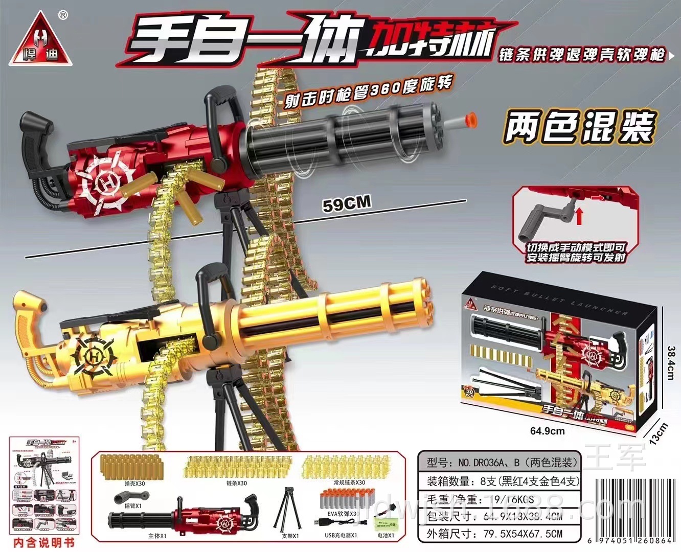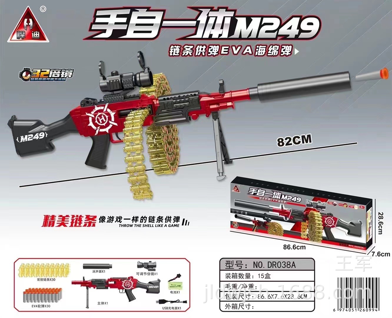 悍迪头盔软弹枪M249加特林抛壳手自一体弹链儿童软弹儿童互动玩具