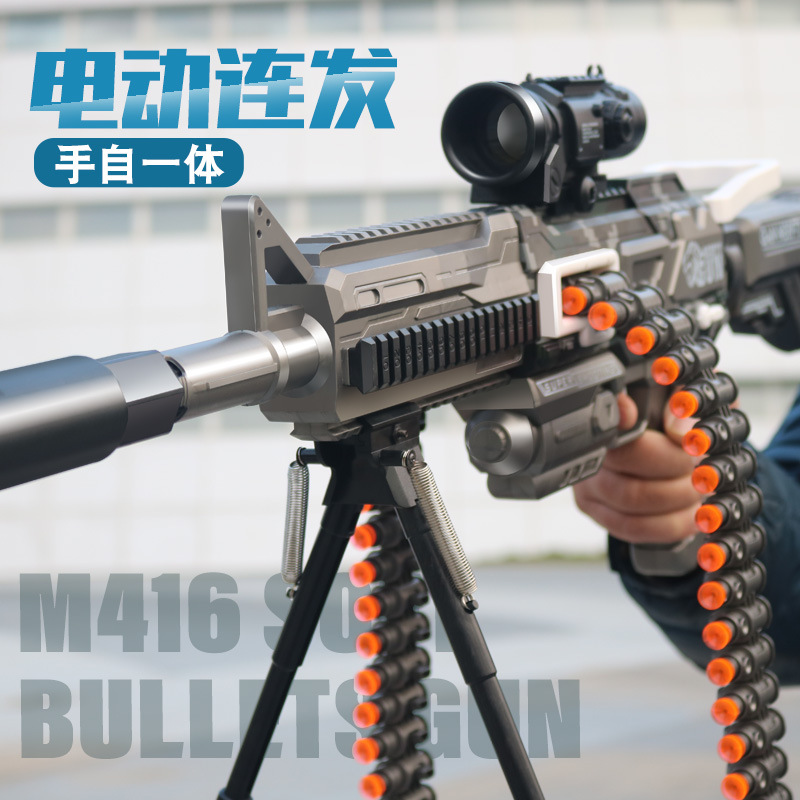 M416手动电动一体连发软弹枪儿童玩具枪小男孩机关枪仿真加特林