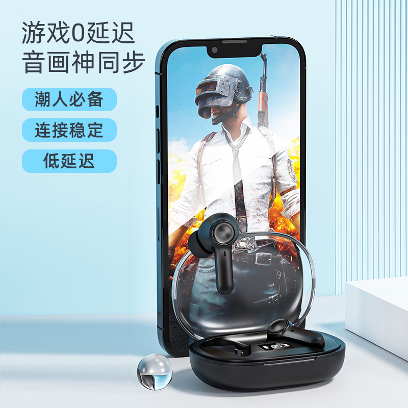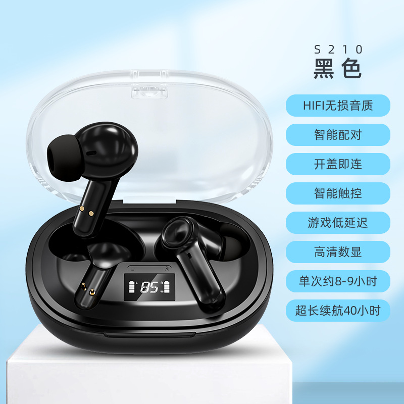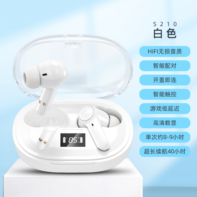 S210跨境私模透明数显无线蓝牙耳机超长续航入耳式降噪电竞耳机