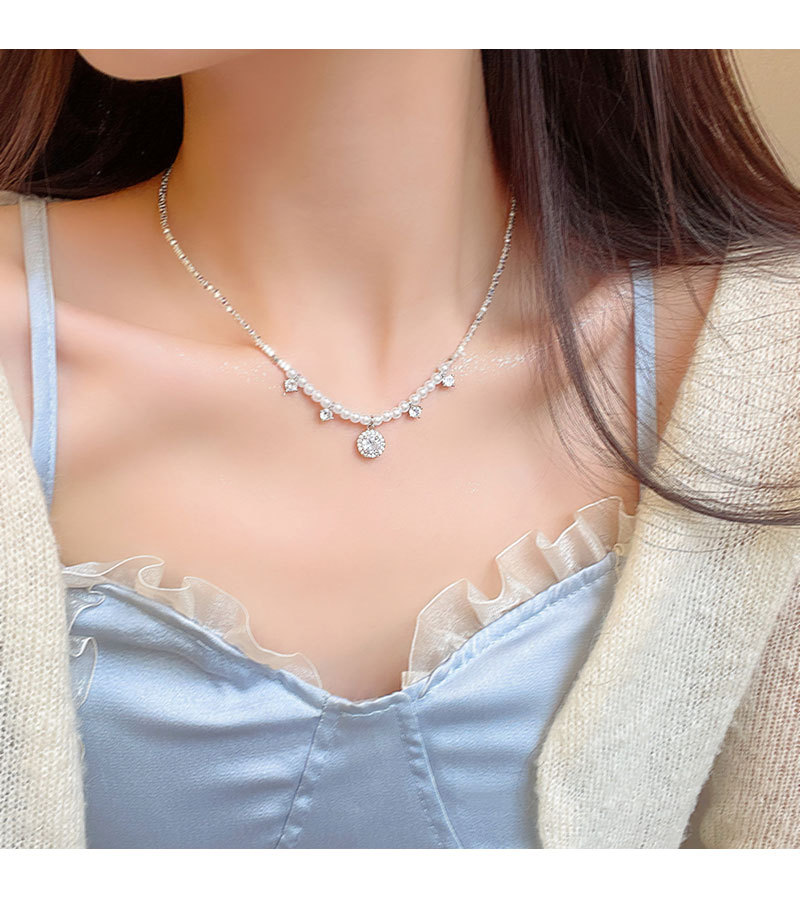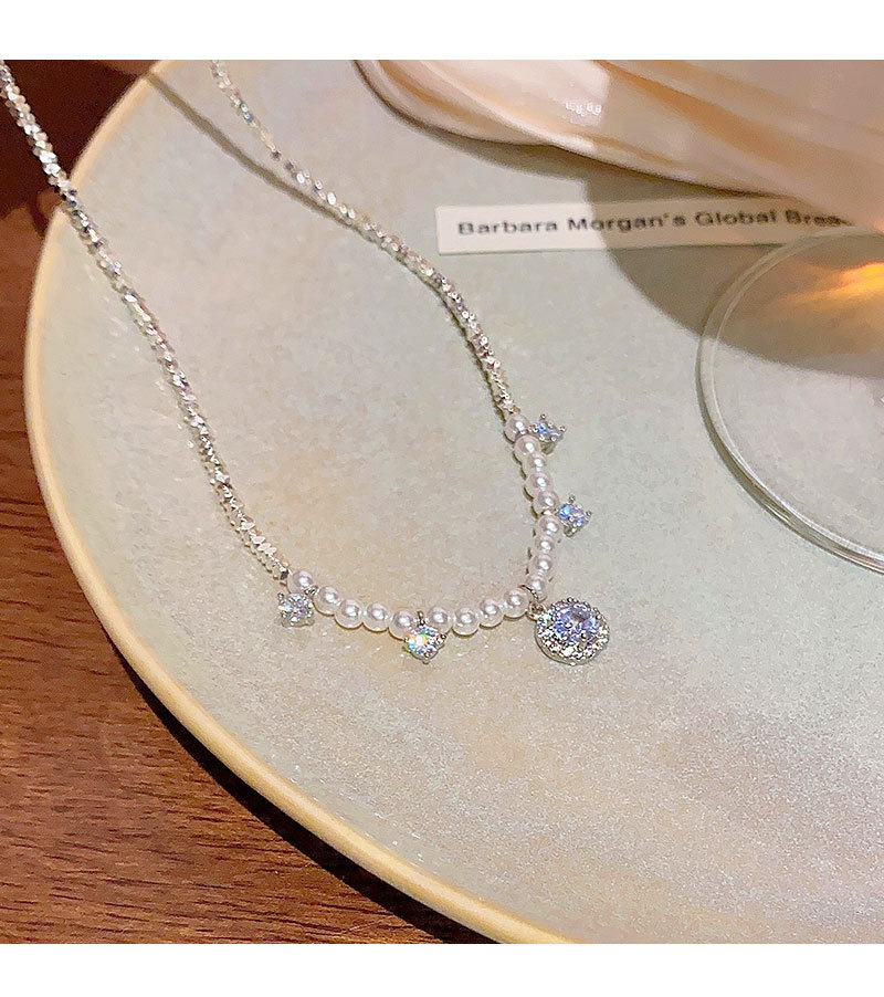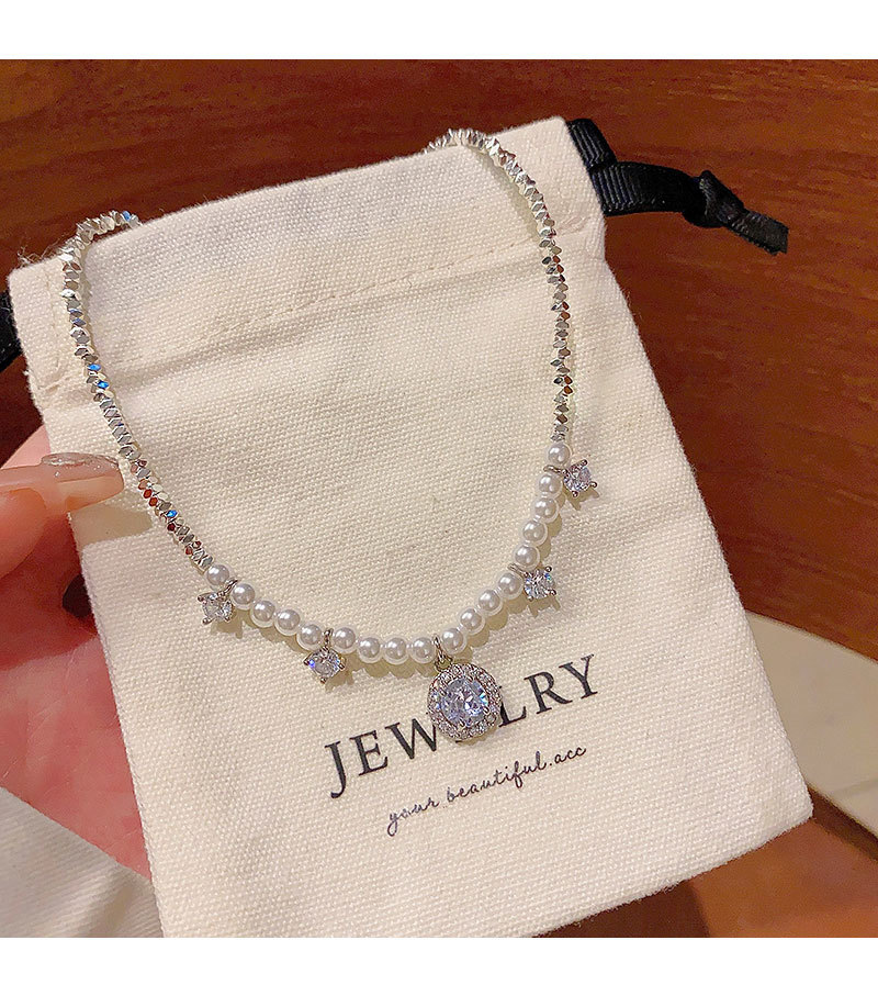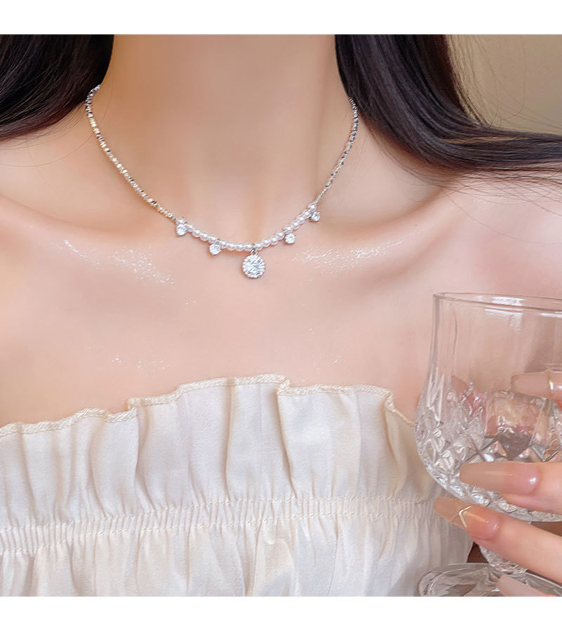 轻奢超闪碎银子珍珠锆石项链女百搭小众精致高级感锁骨链配饰批发
