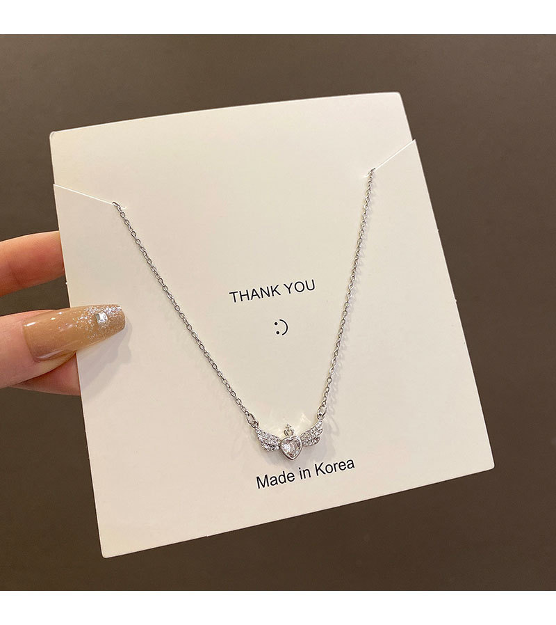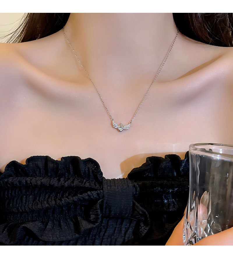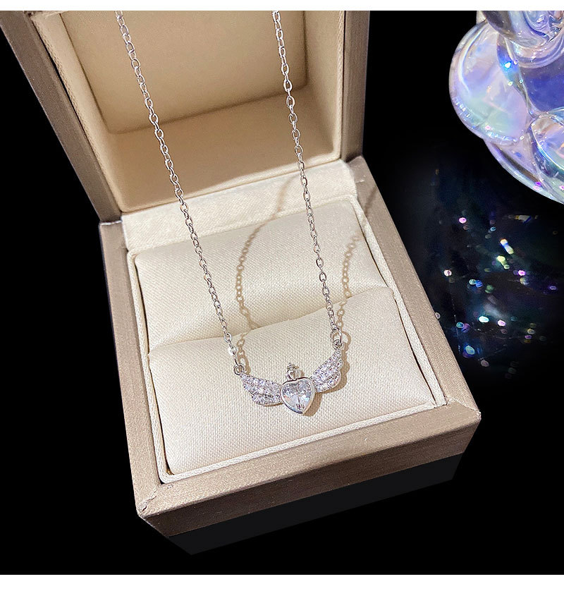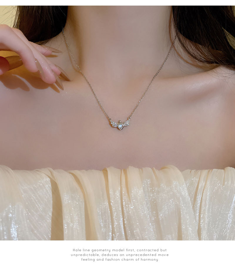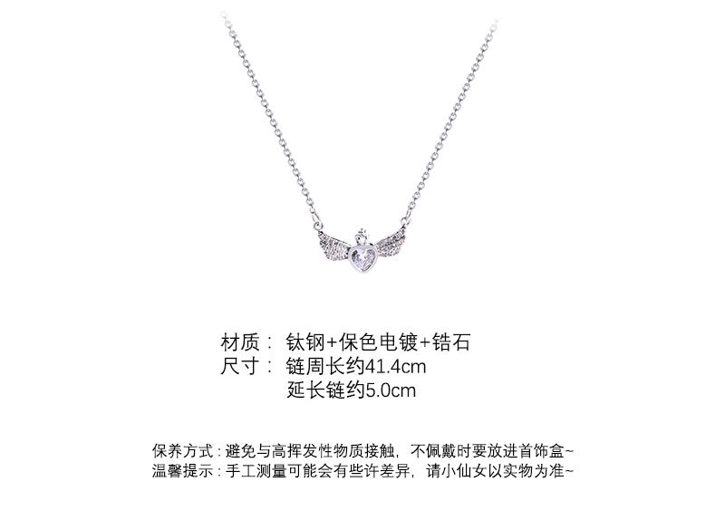 ins风小众设计感天使翅膀钛钢项链女轻奢个性锆石爱心吊坠锁骨链