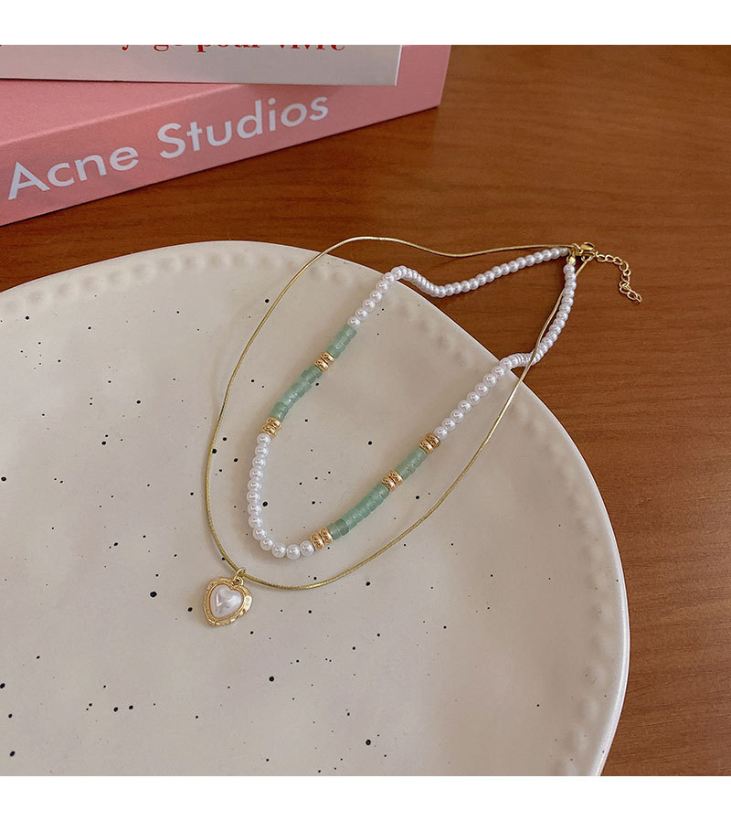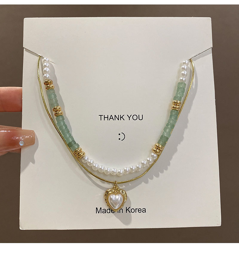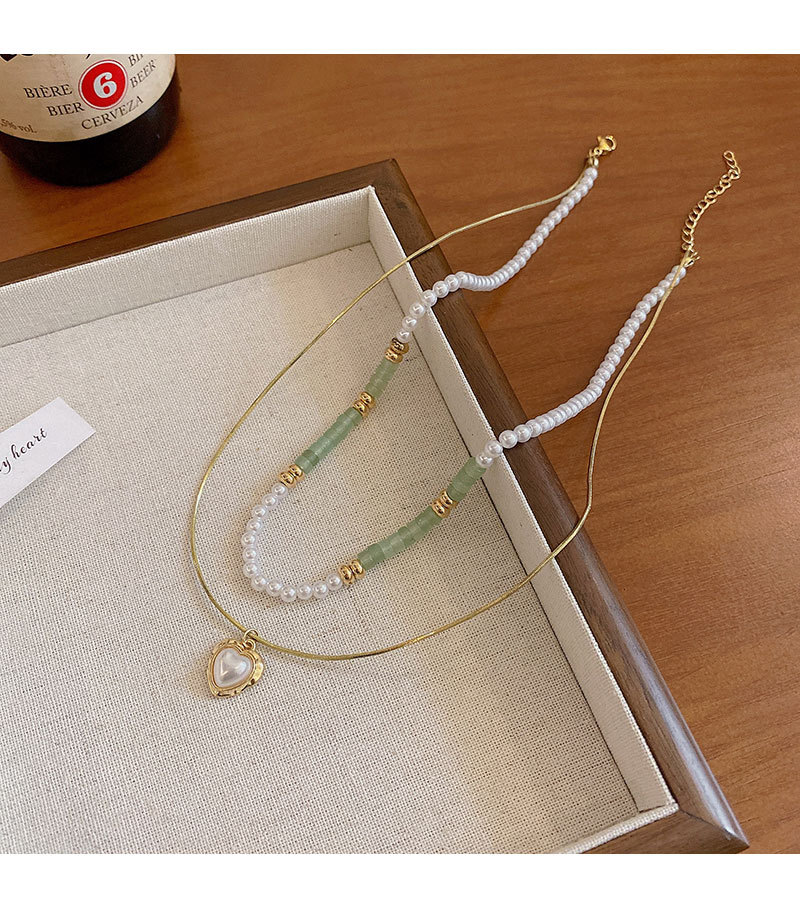 新中式珍珠爱心吊坠双层项链女复古小众高级感钛钢锁骨链爆款配饰