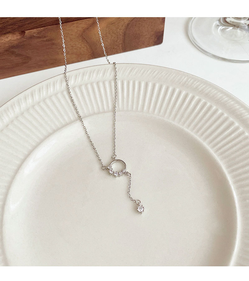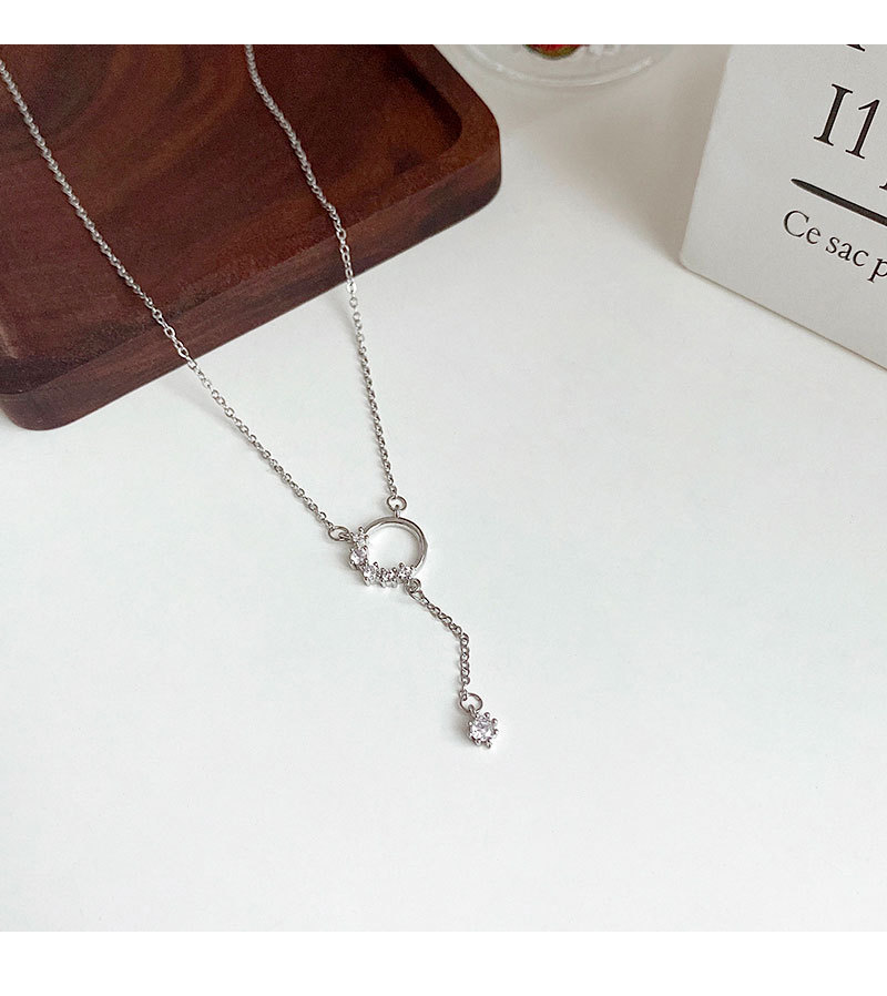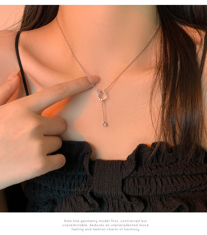 一往情深圆圈锆石钛钢项链女百搭小众设计感情侣锁骨链配饰品批发