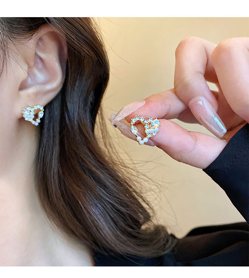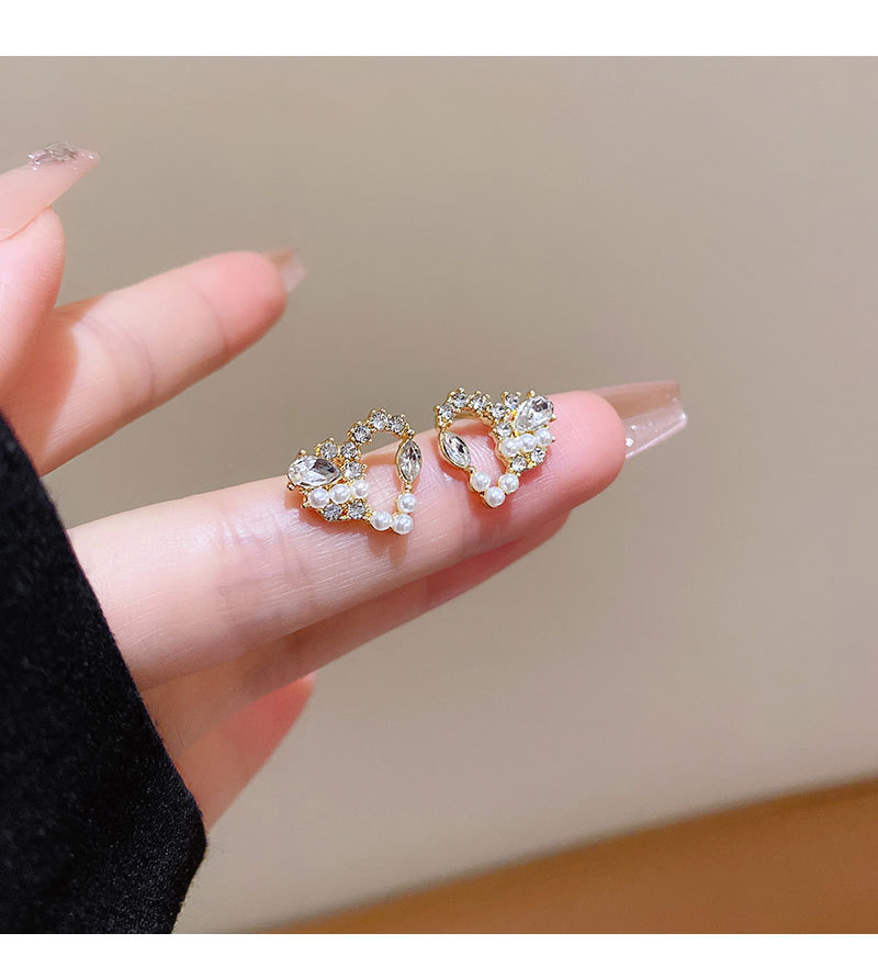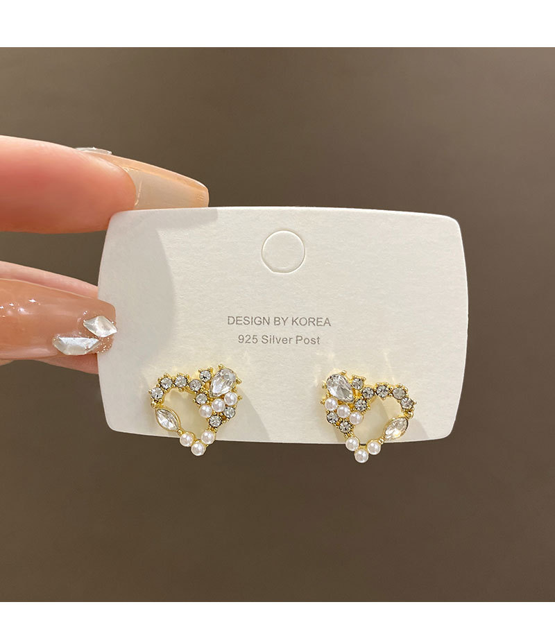S925银针爱心珍珠耳环女高级感轻奢气质耳钉法式小众爆款耳饰批发