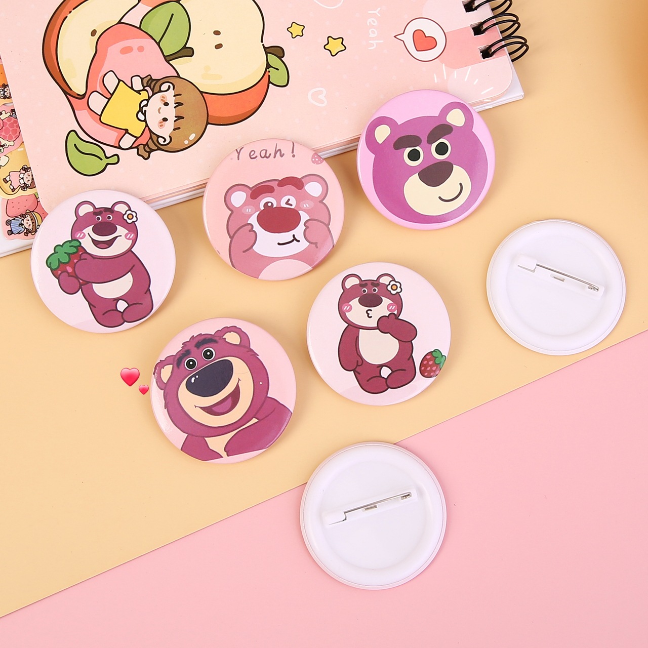 动漫周边草莓熊马口铁徽章可爱小熊胸针吧唧卡通塑料别针书包挂件