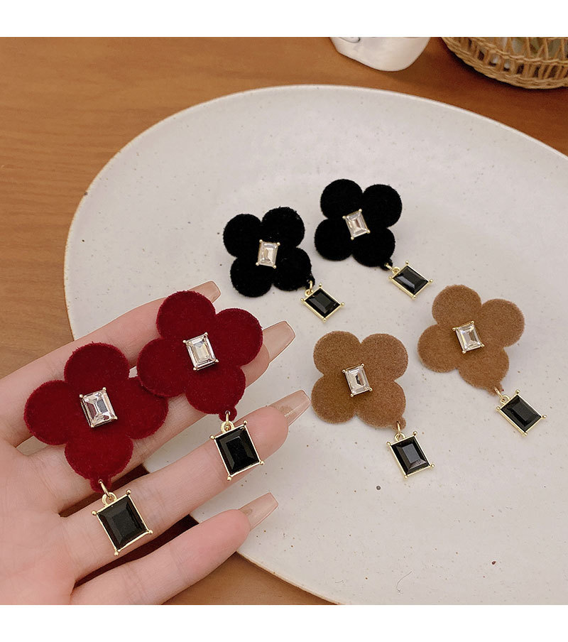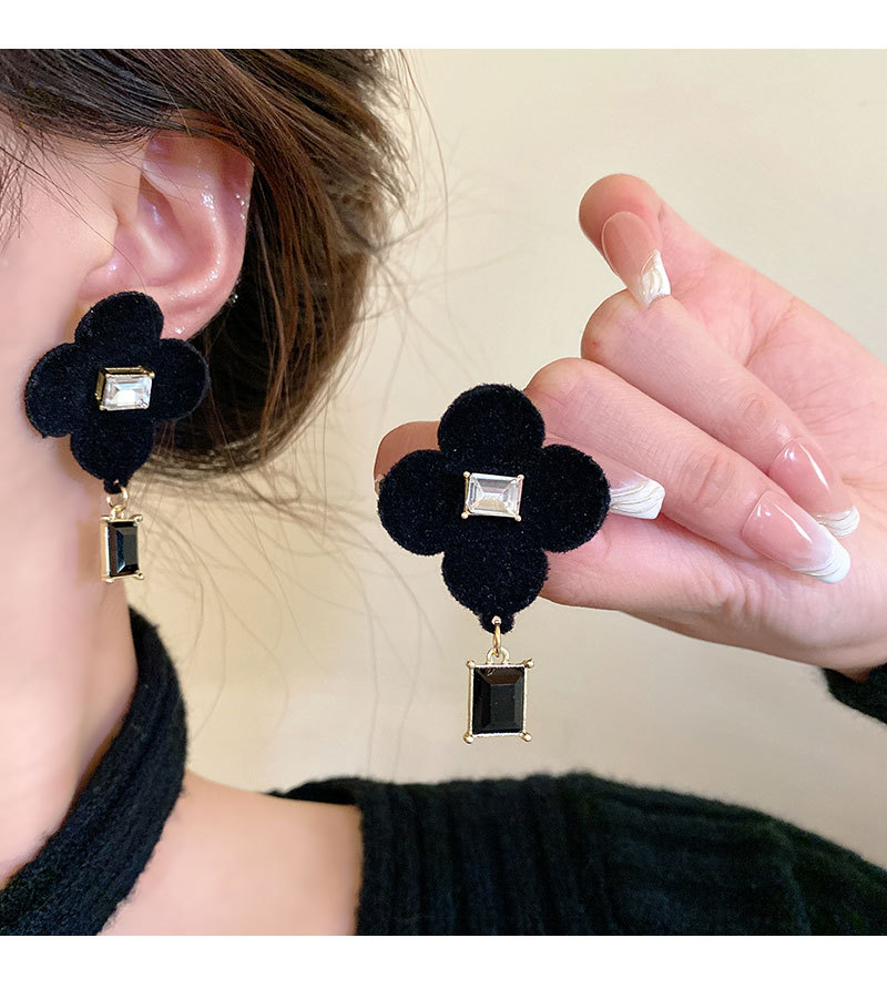 秋冬新款植绒花朵耳环女高级感夸张个性耳钉925银针复古耳饰批发