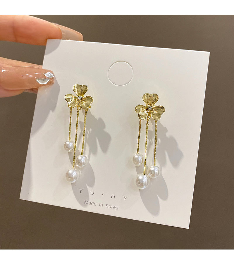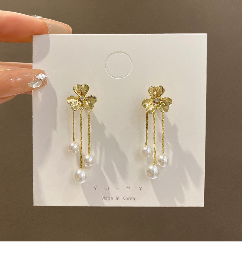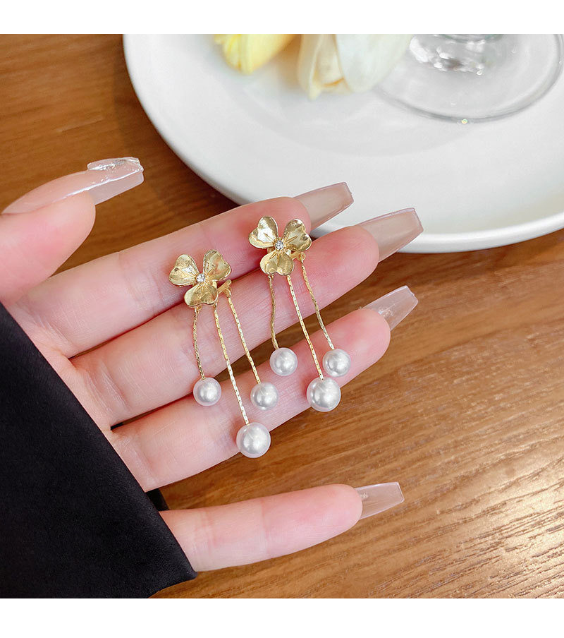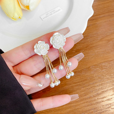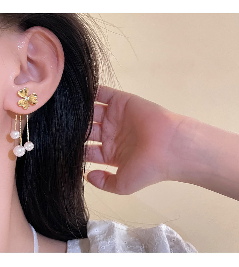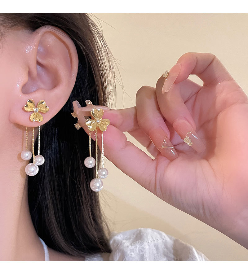 S925银针一款两戴花朵耳钉女设计感气质珍珠流苏耳环复古简约耳饰