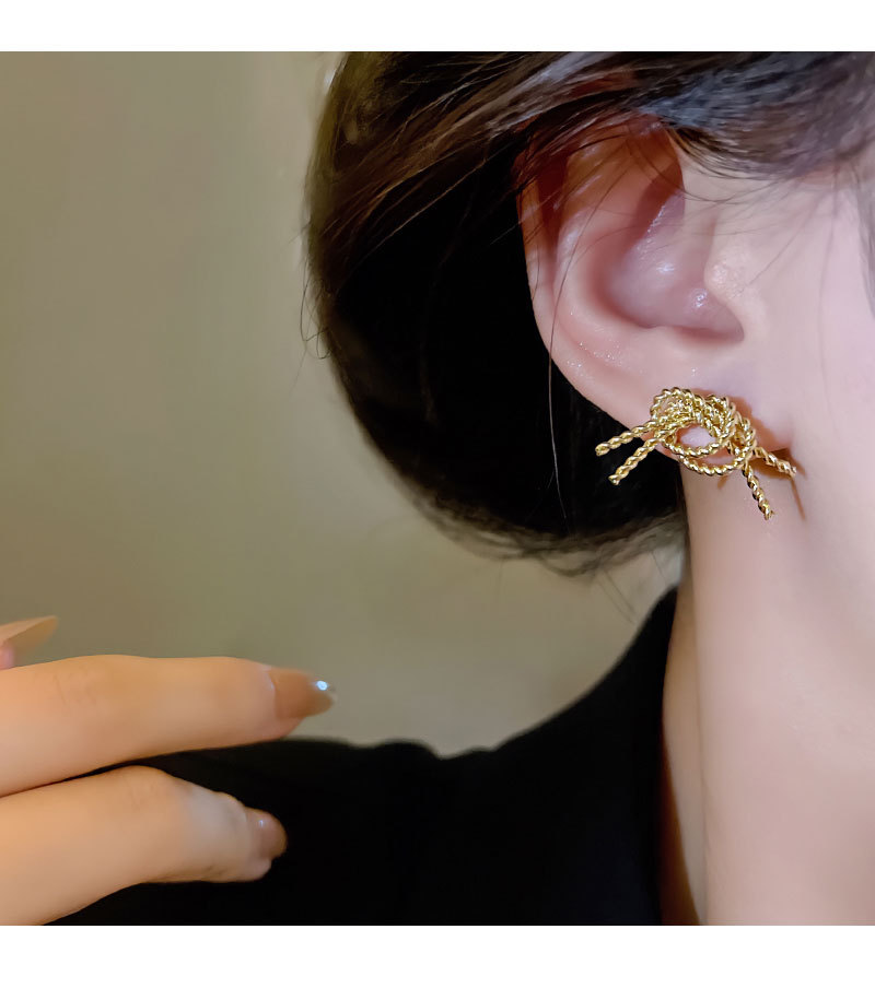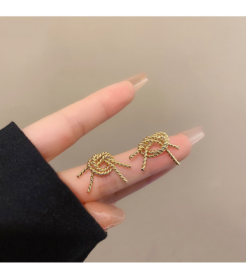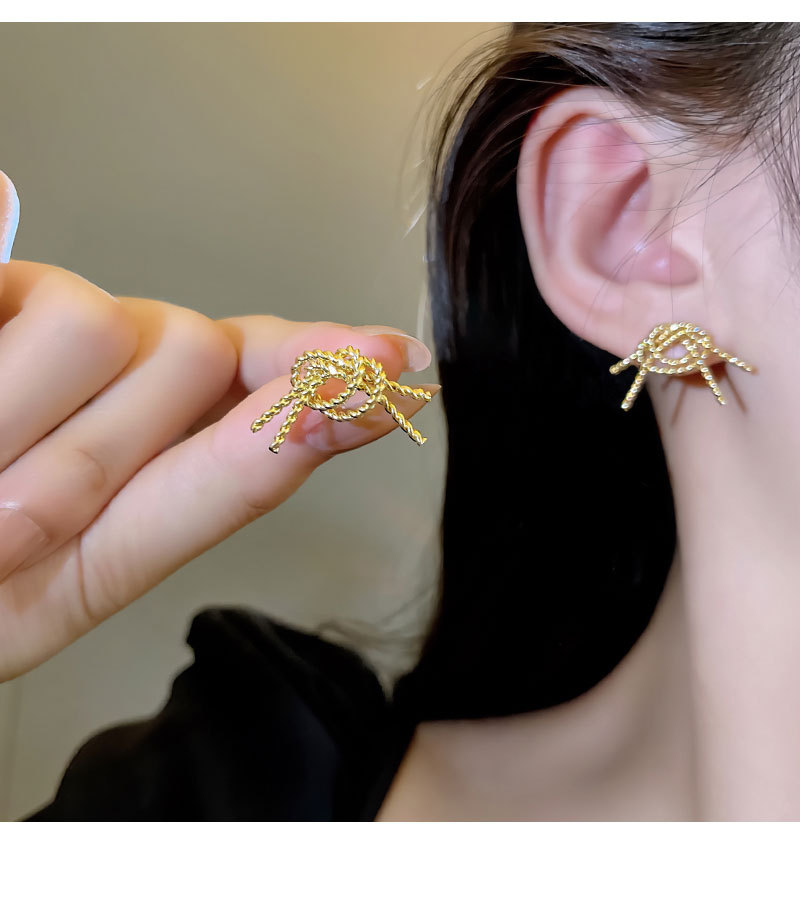925银针金属打结耳钉女冷淡风小众设计感个性耳环法式气质耳饰品