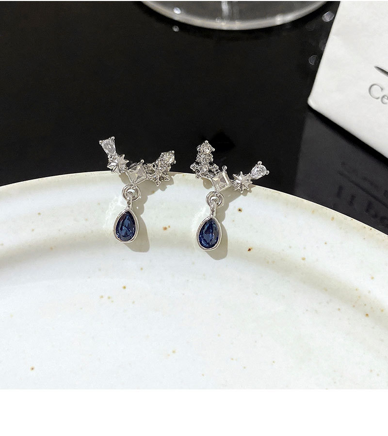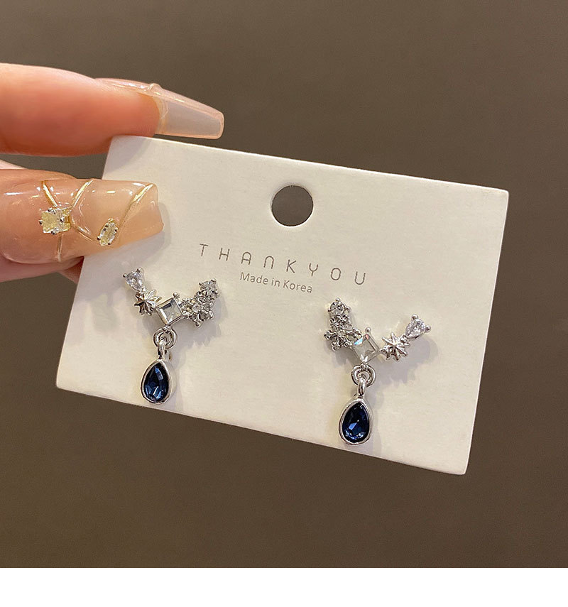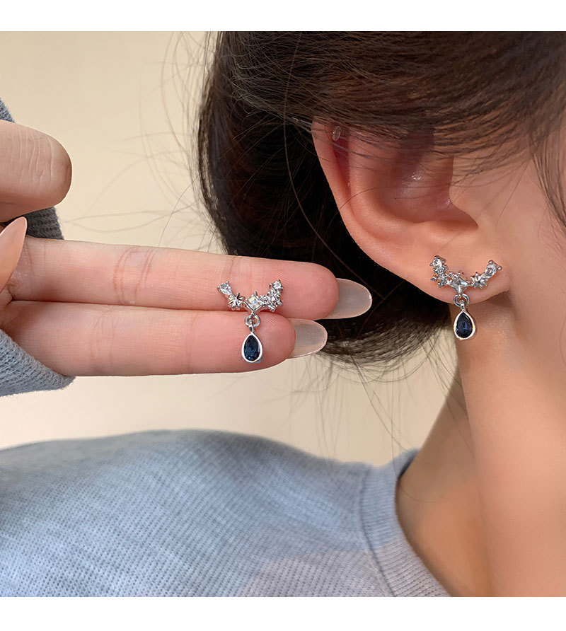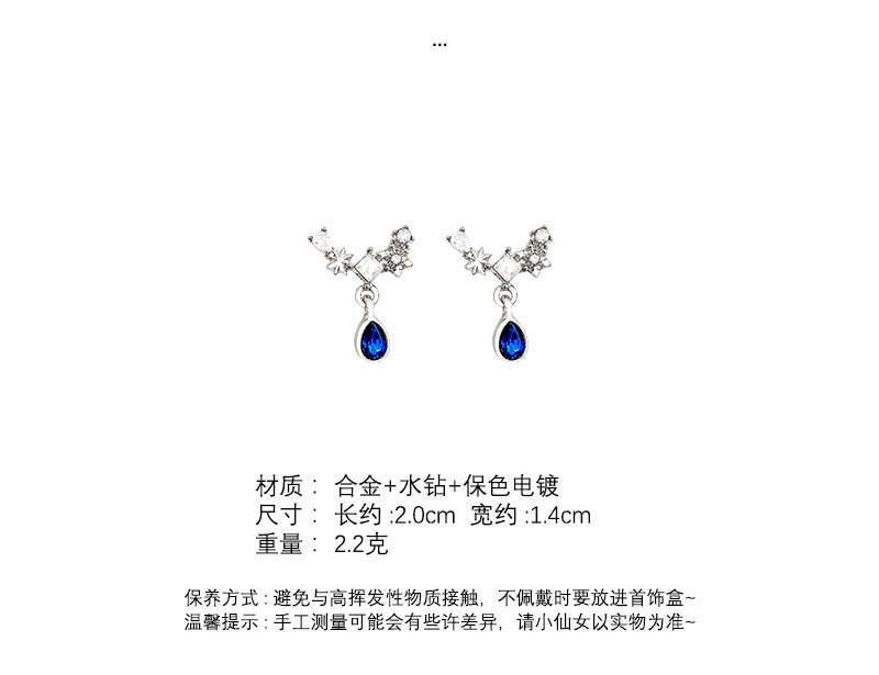 韩版轻奢蓝色水滴锆石耳环女精致百搭网红同款耳钉新款设计感耳饰