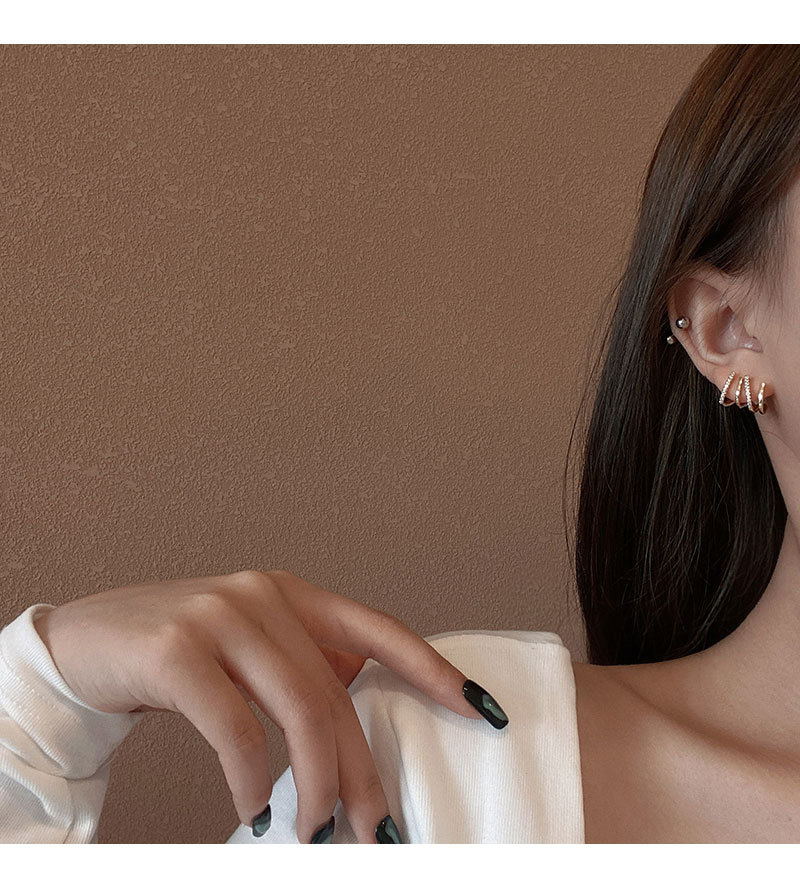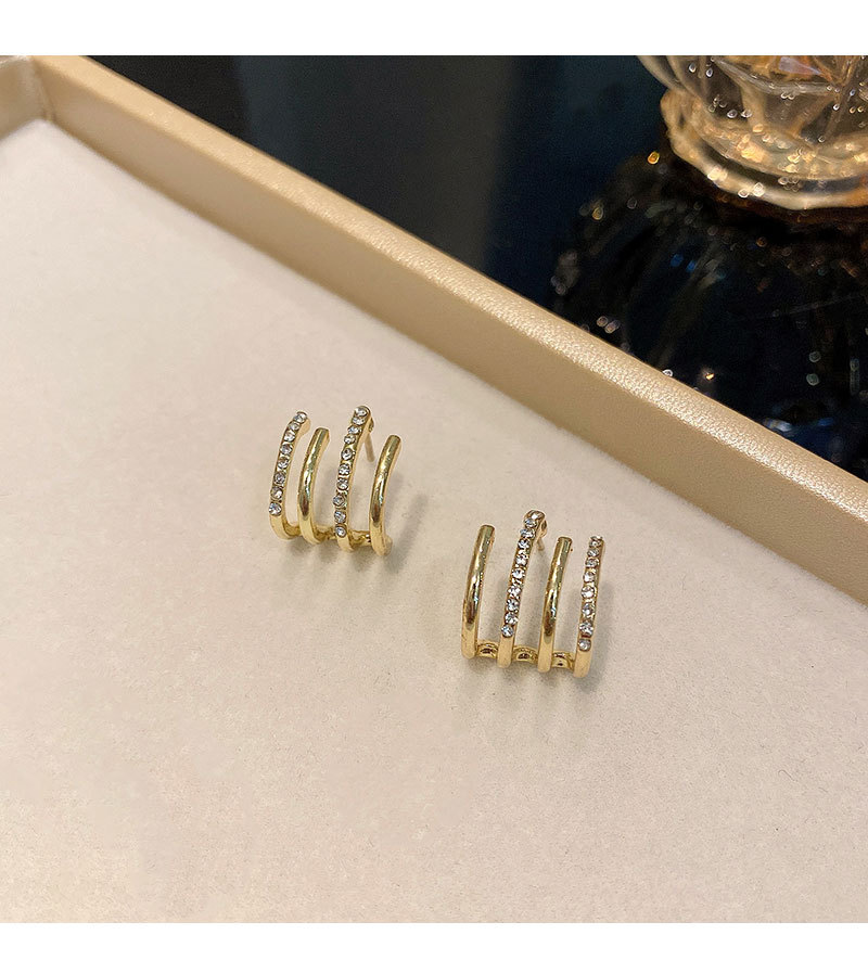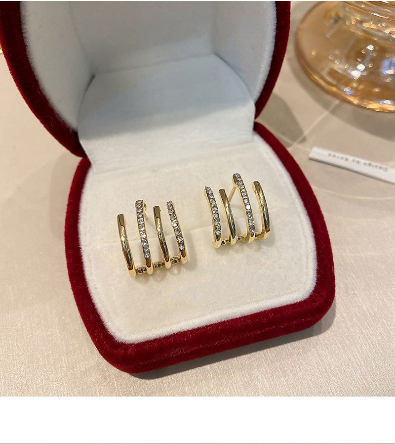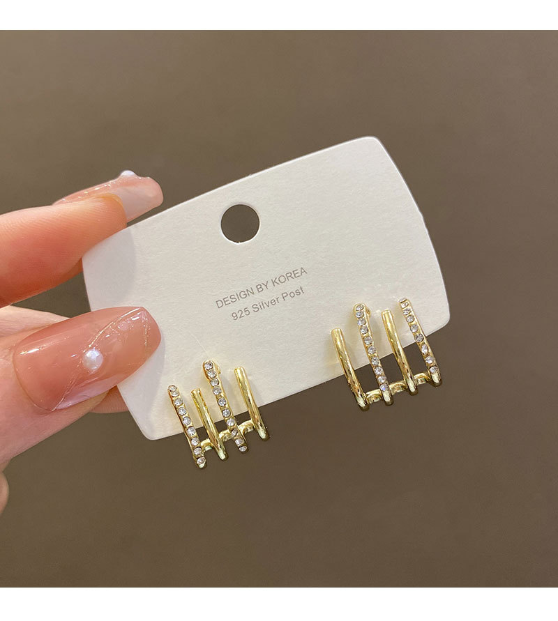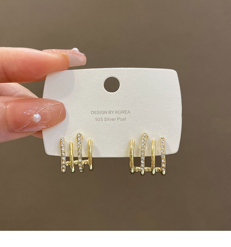S925银针设计感满钻四爪耳环女小众个性百搭网红耳钉高级感耳饰品