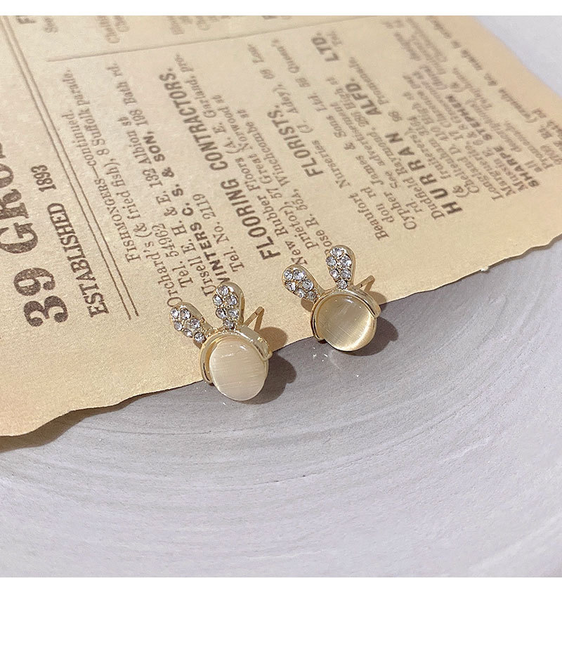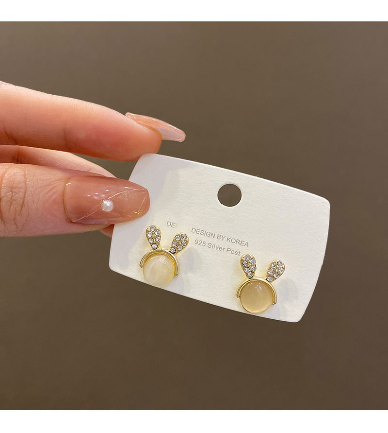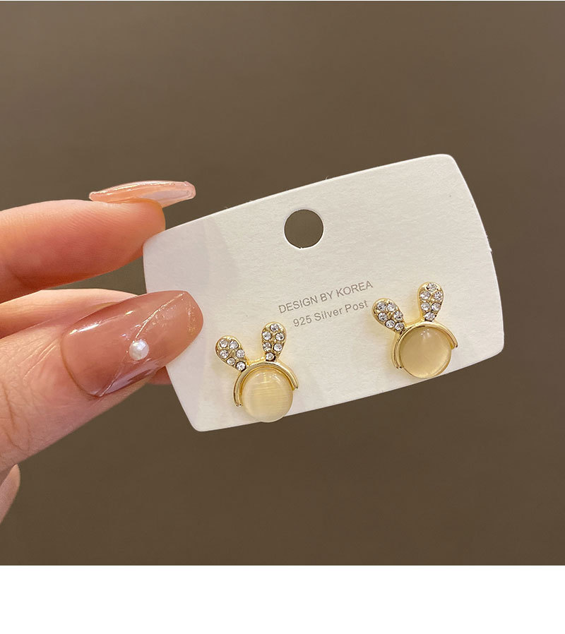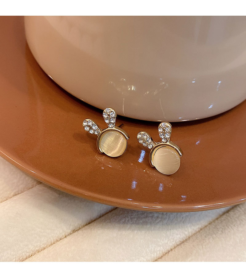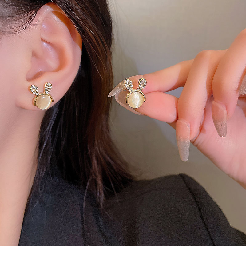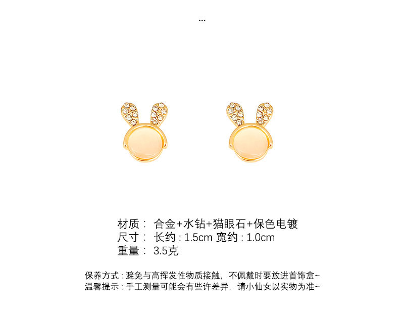 S925银针猫眼石小兔子耳钉女可爱迷你镶钻耳环设计感百搭小巧耳饰