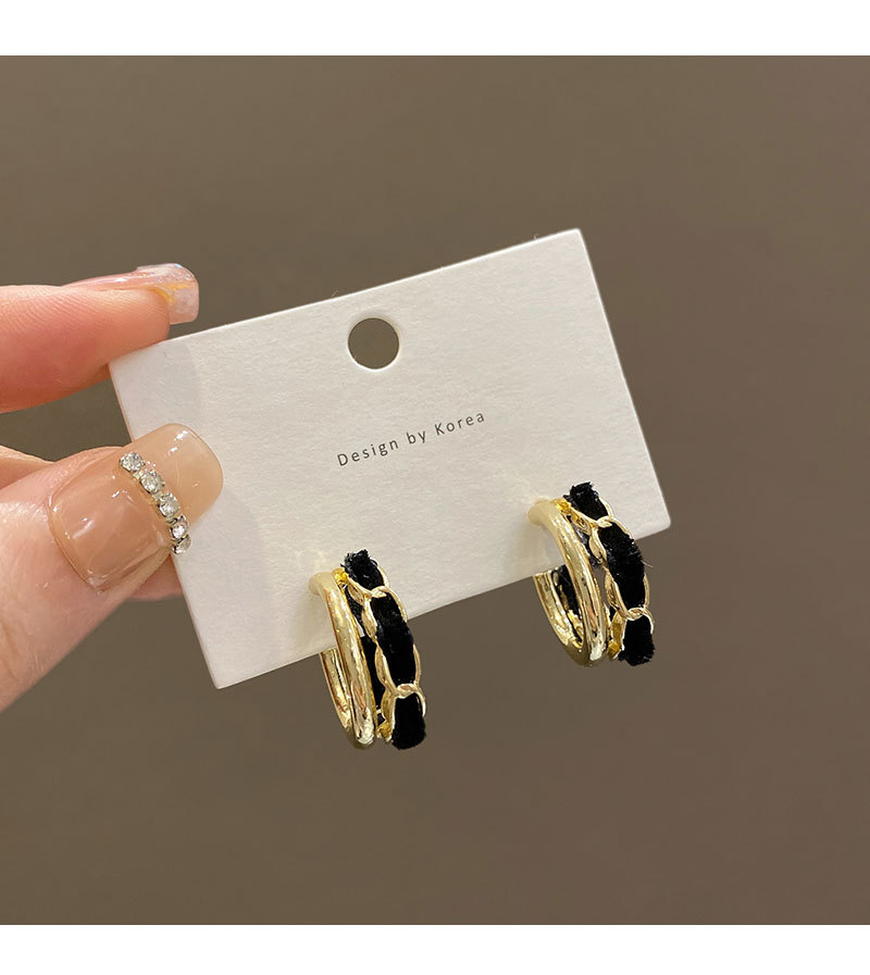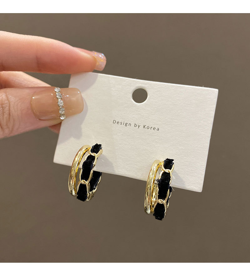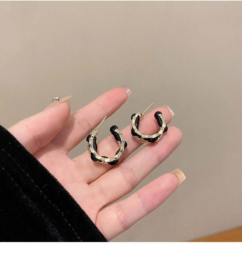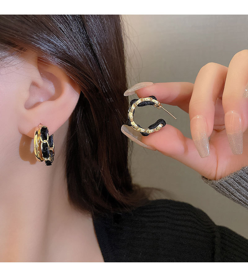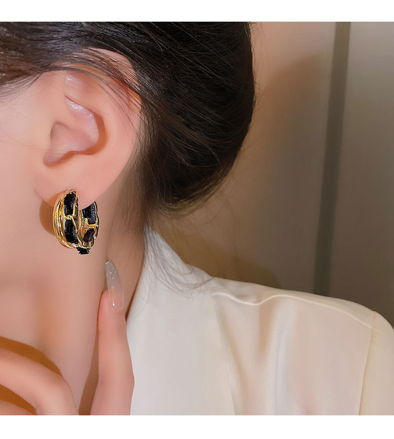 s925银针秋冬皮革耳环女复古港风时髦C形耳钉设计感时尚百搭耳饰