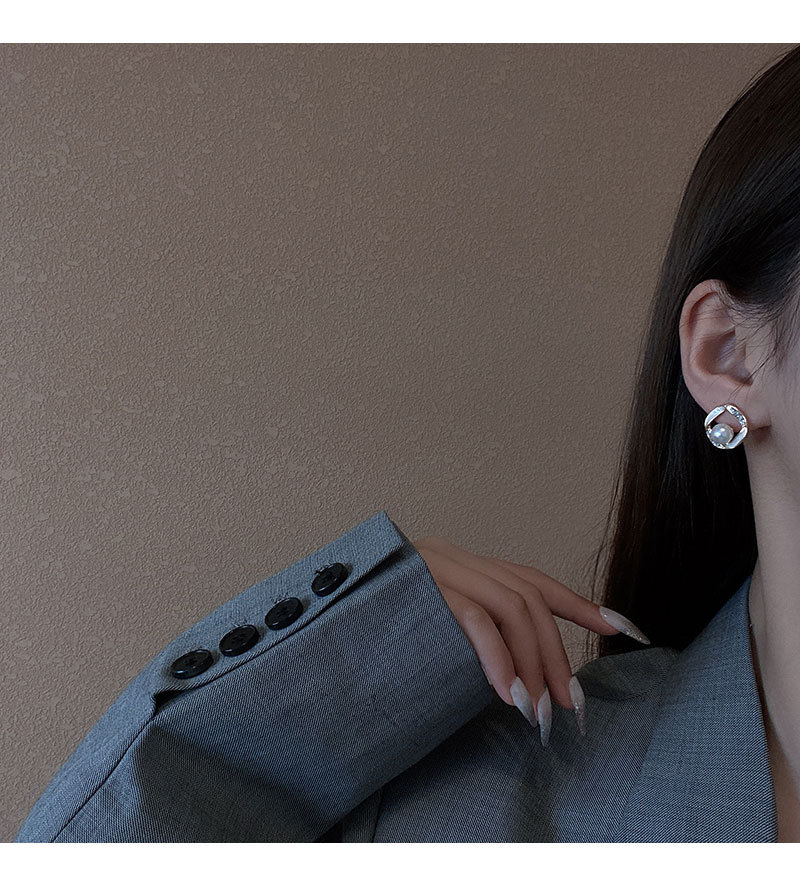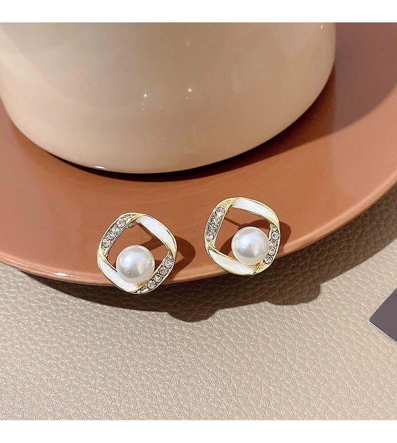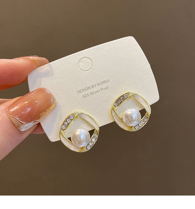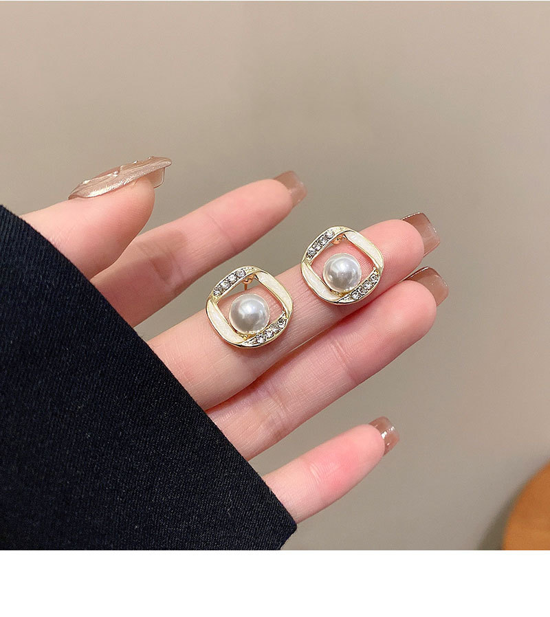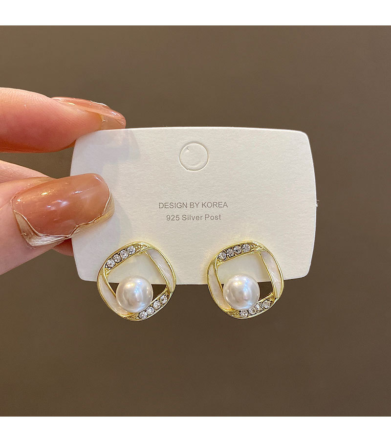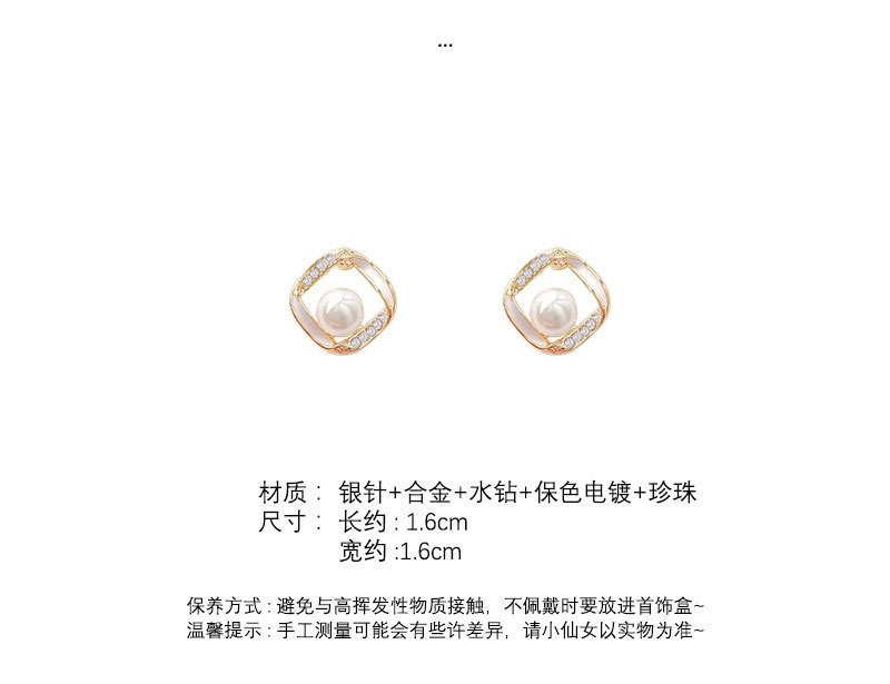 925银针方形珍珠耳环女简约小众设计感满钻耳钉韩版时尚耳饰批发