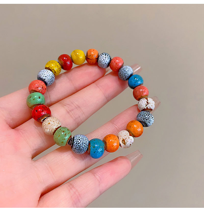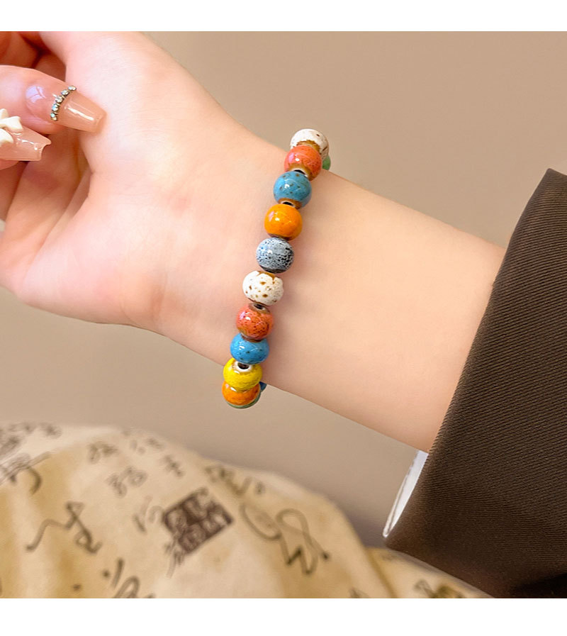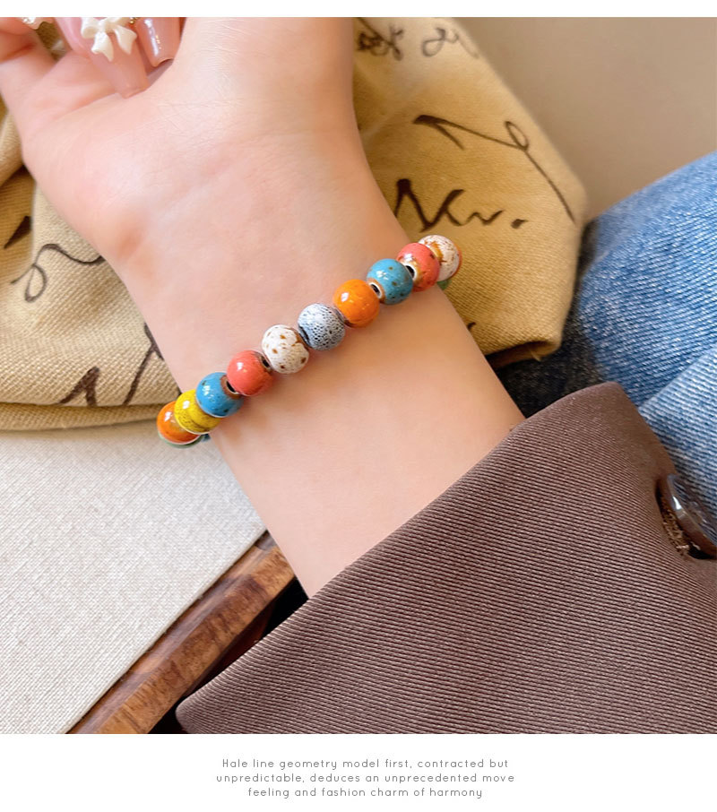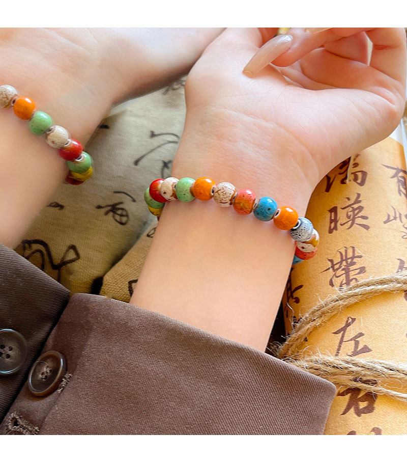 多巴胺彩色陶瓷串珠手链女复古小众设计百搭手串新中式高级感手饰