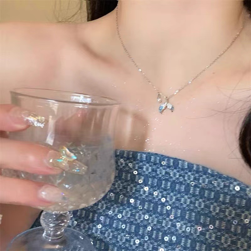 碎冰蓝蝴蝶珍珠串珠手链女款轻奢百搭小众手串精致高级感项链饰品