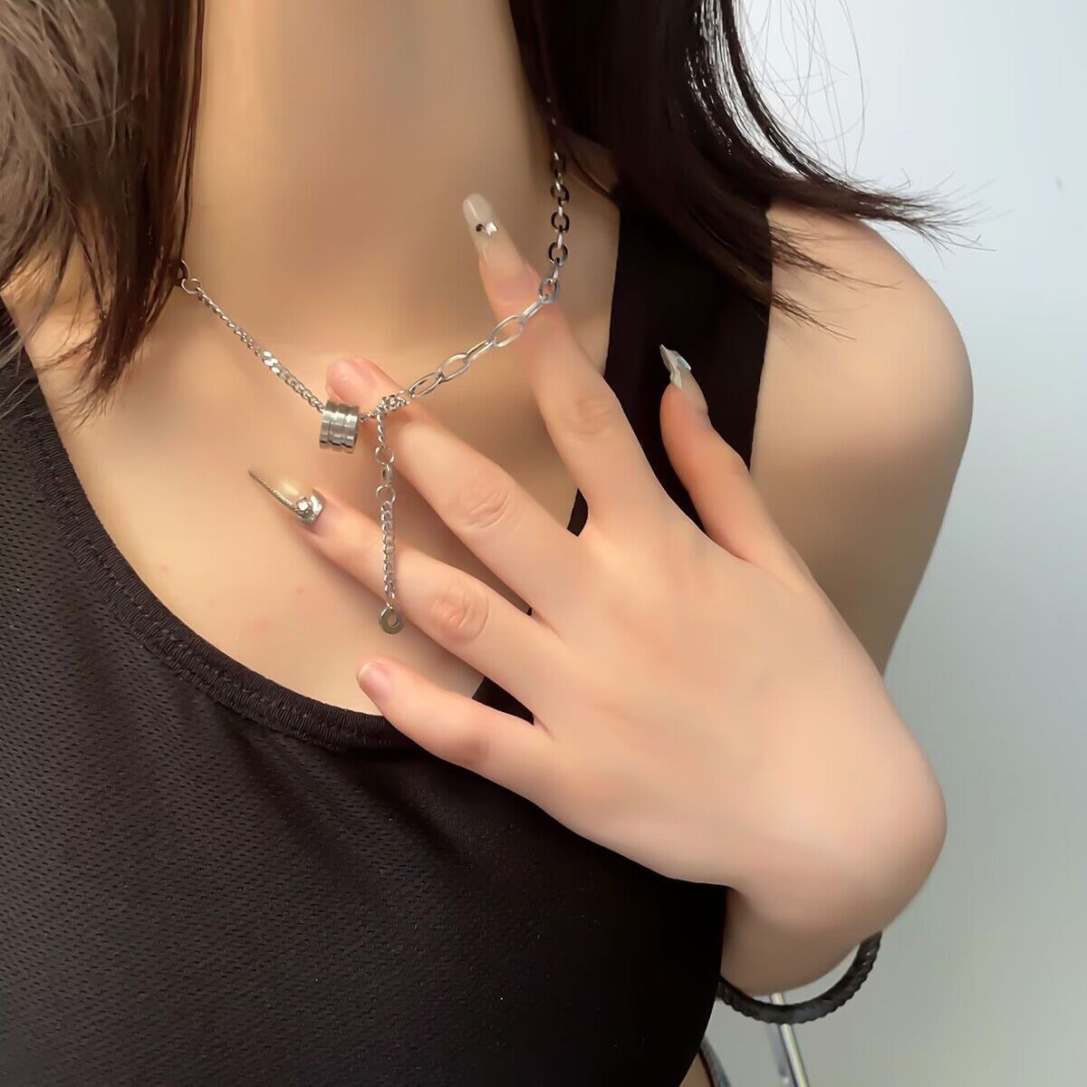 钛钢圆环小蛮腰流苏项链女轻奢小众时尚卫衣链个性设计感锁骨链