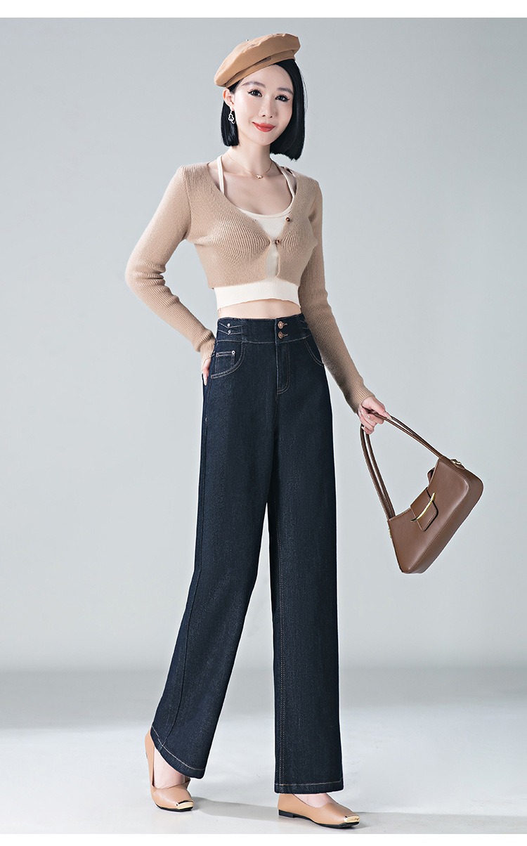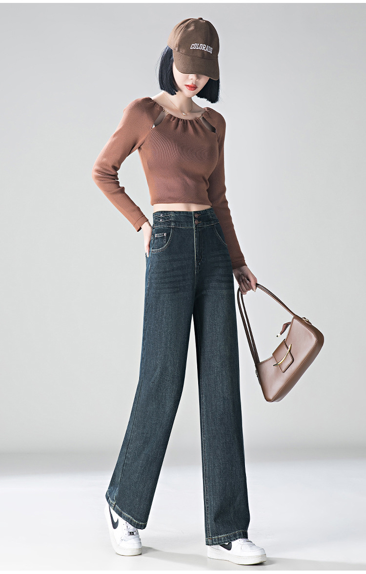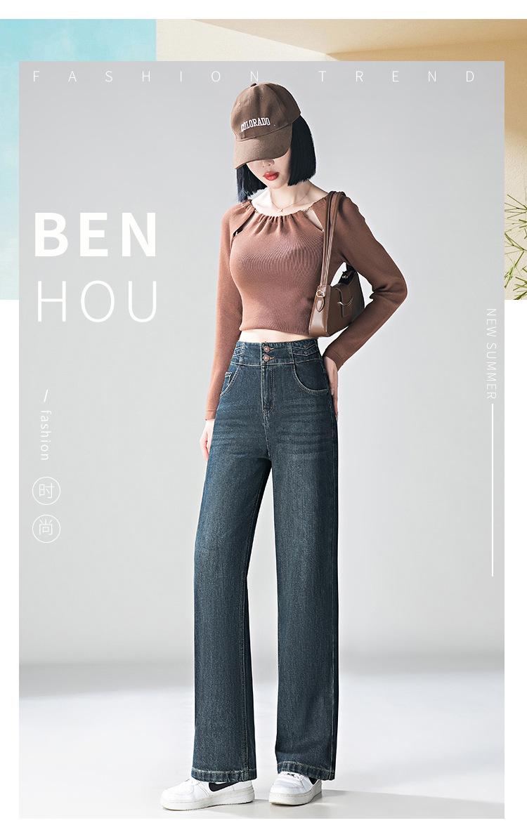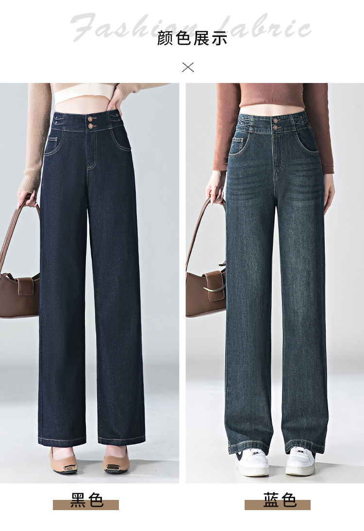 时尚百搭气质水洗窄版牛仔长裤女2024夏季新款韩版洋气显瘦阔腿裤