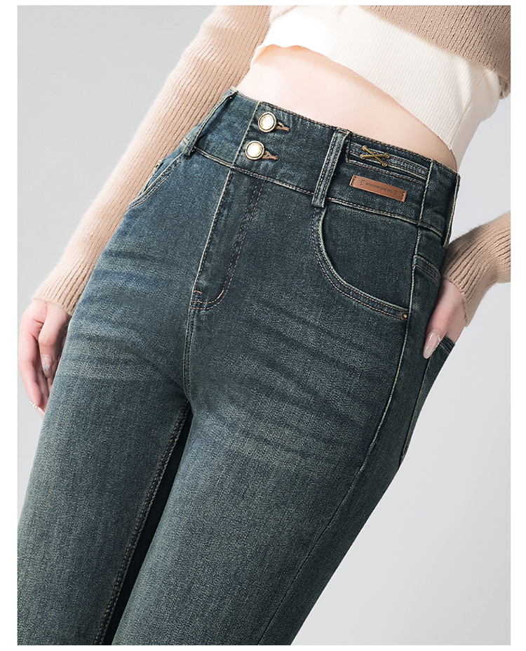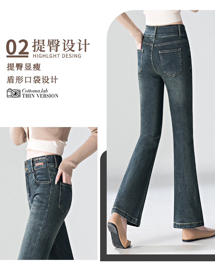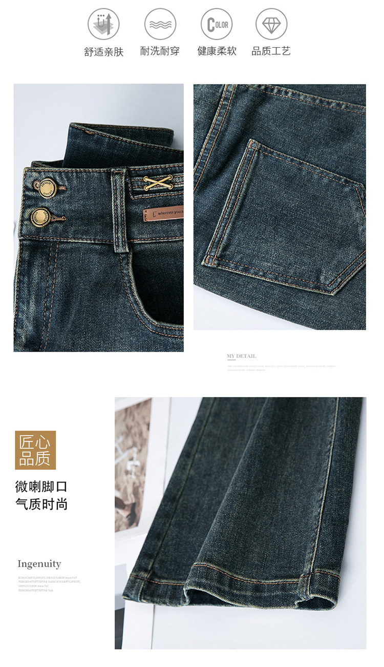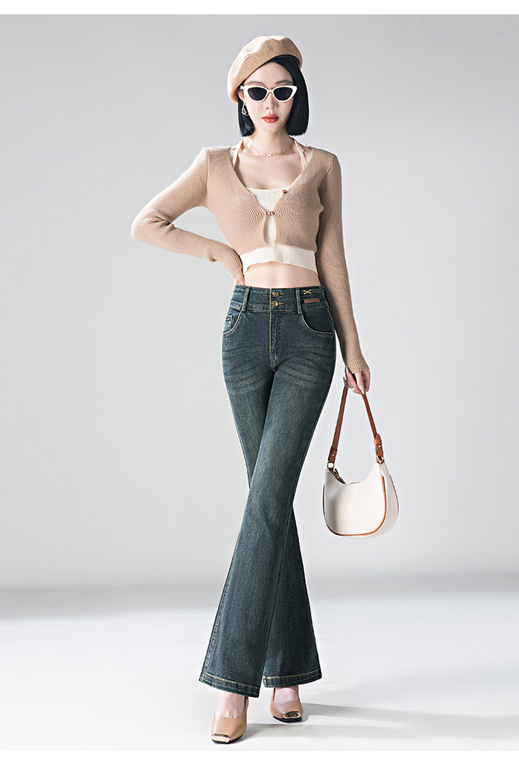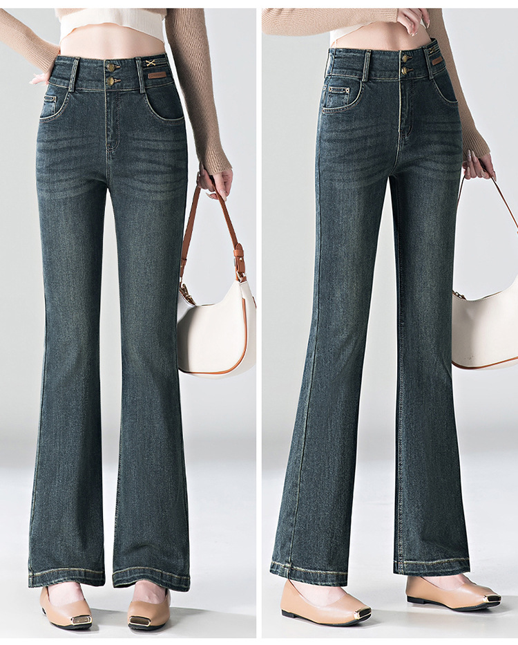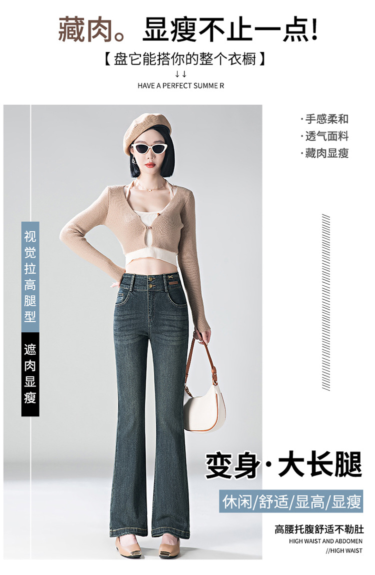 时尚水洗洋气百搭休闲牛仔长裤女2024新款韩版高腰气质显瘦微喇裤