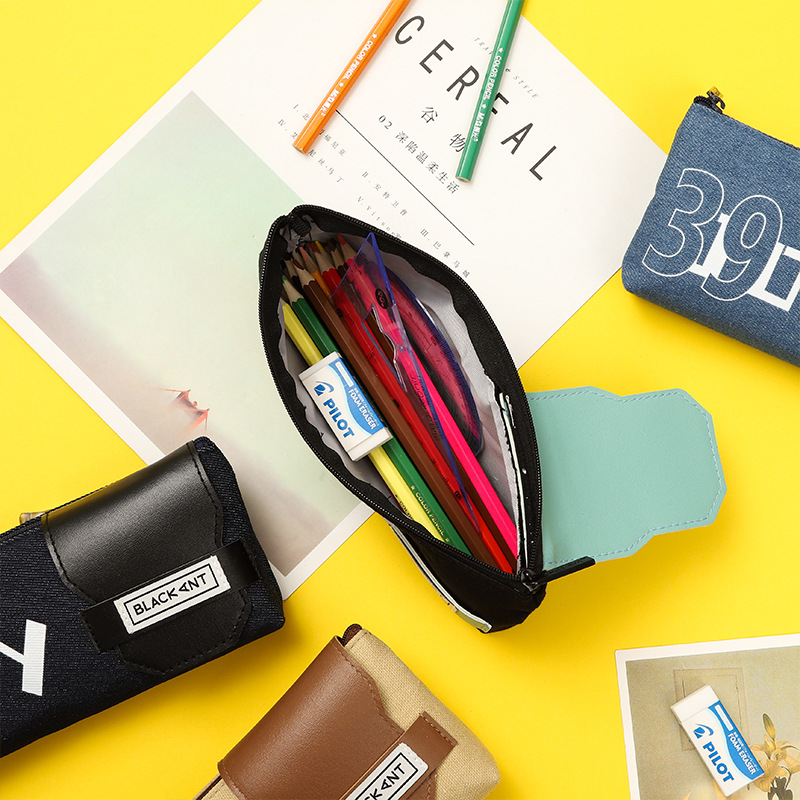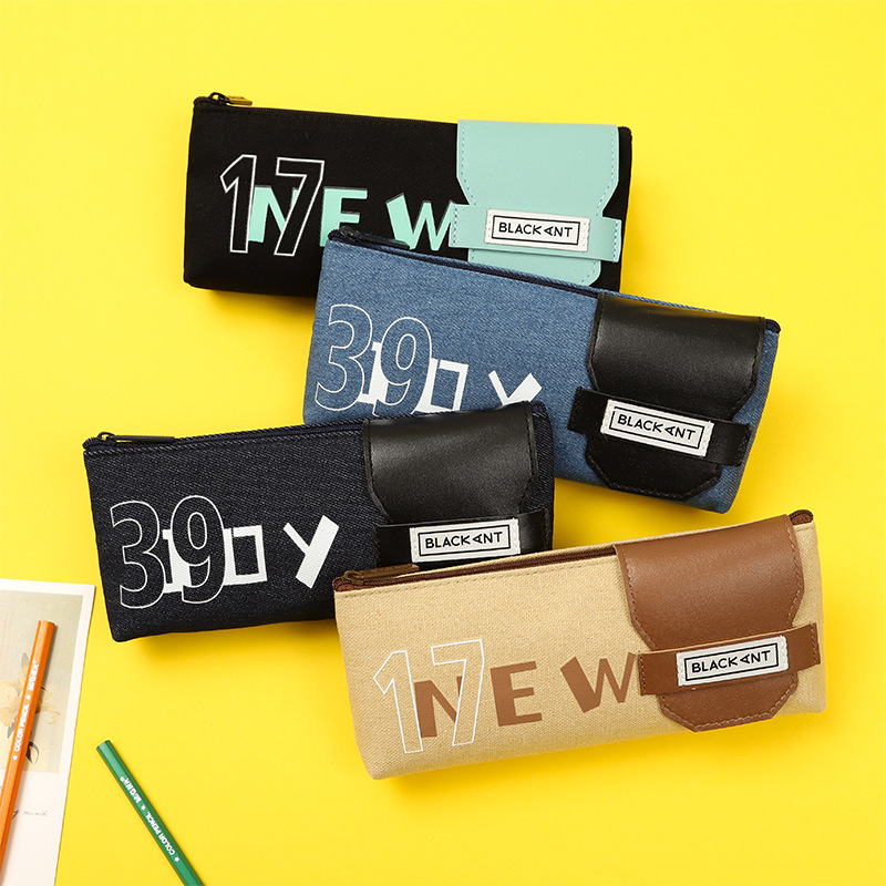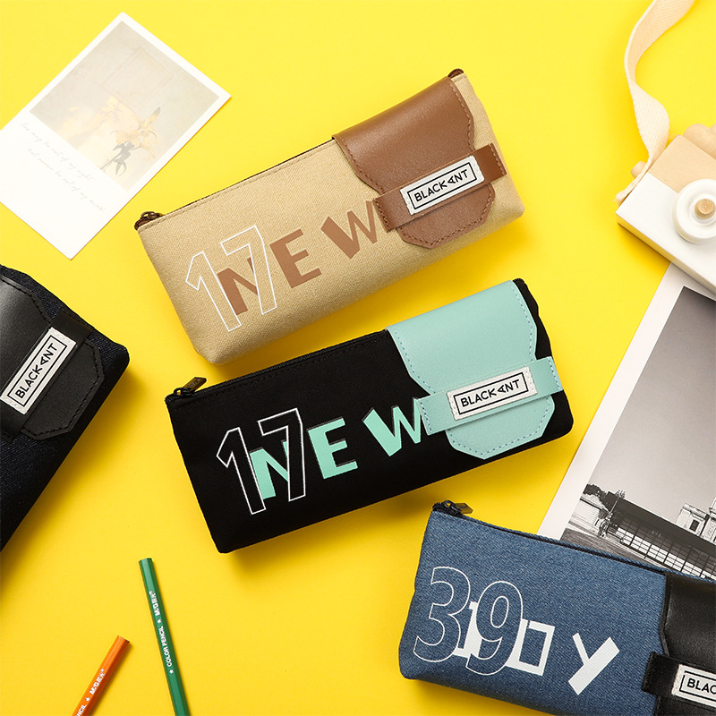 创意帆布笔袋男孩子小学生大容量文具盒简约黑色初中铅笔袋高级感