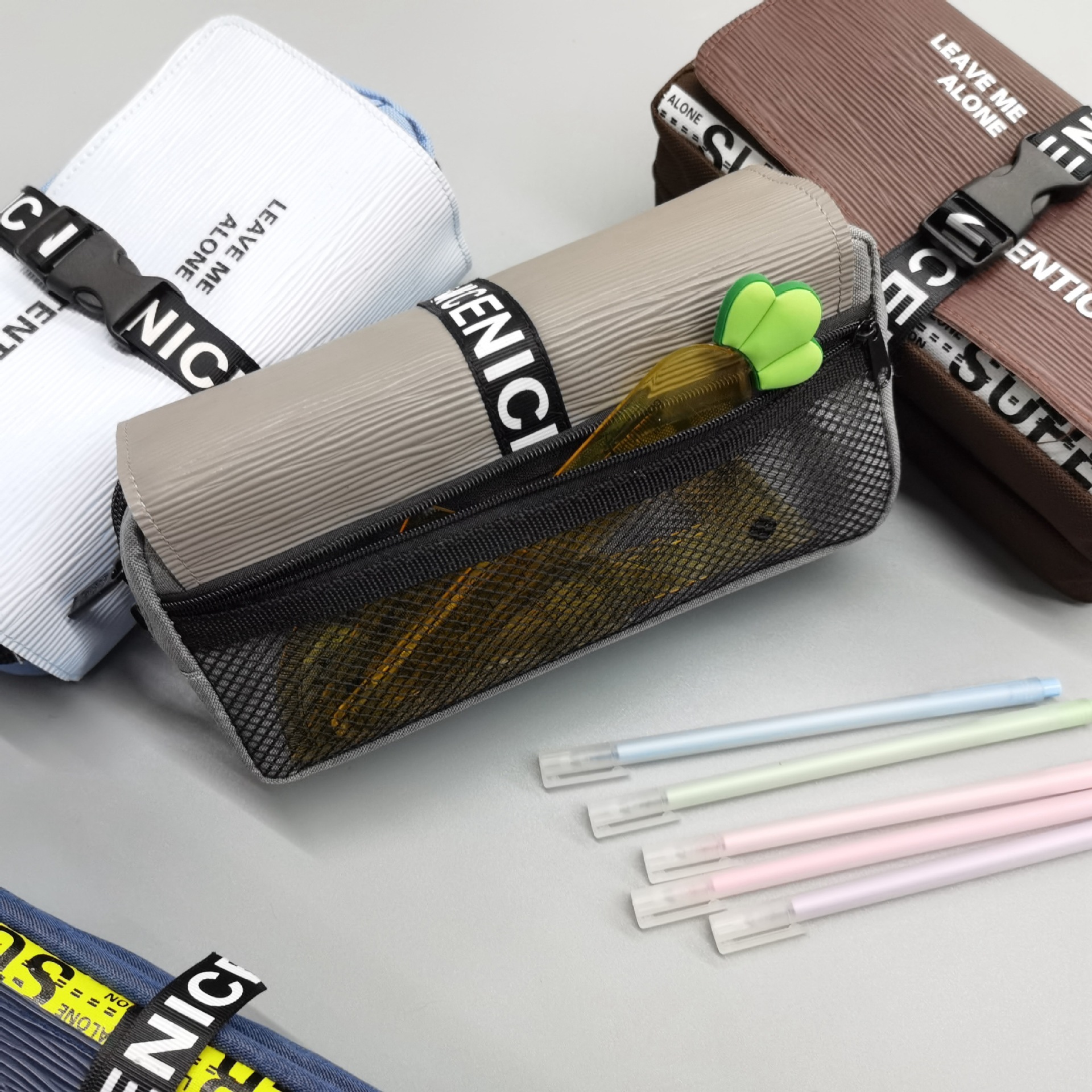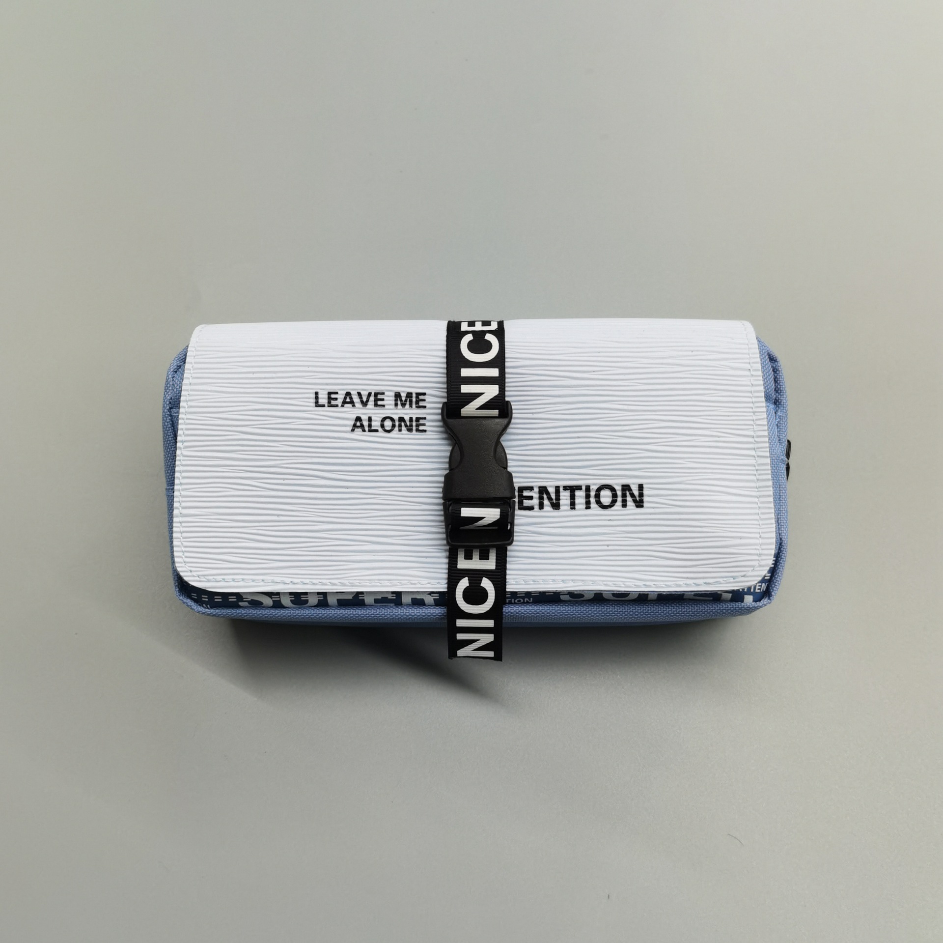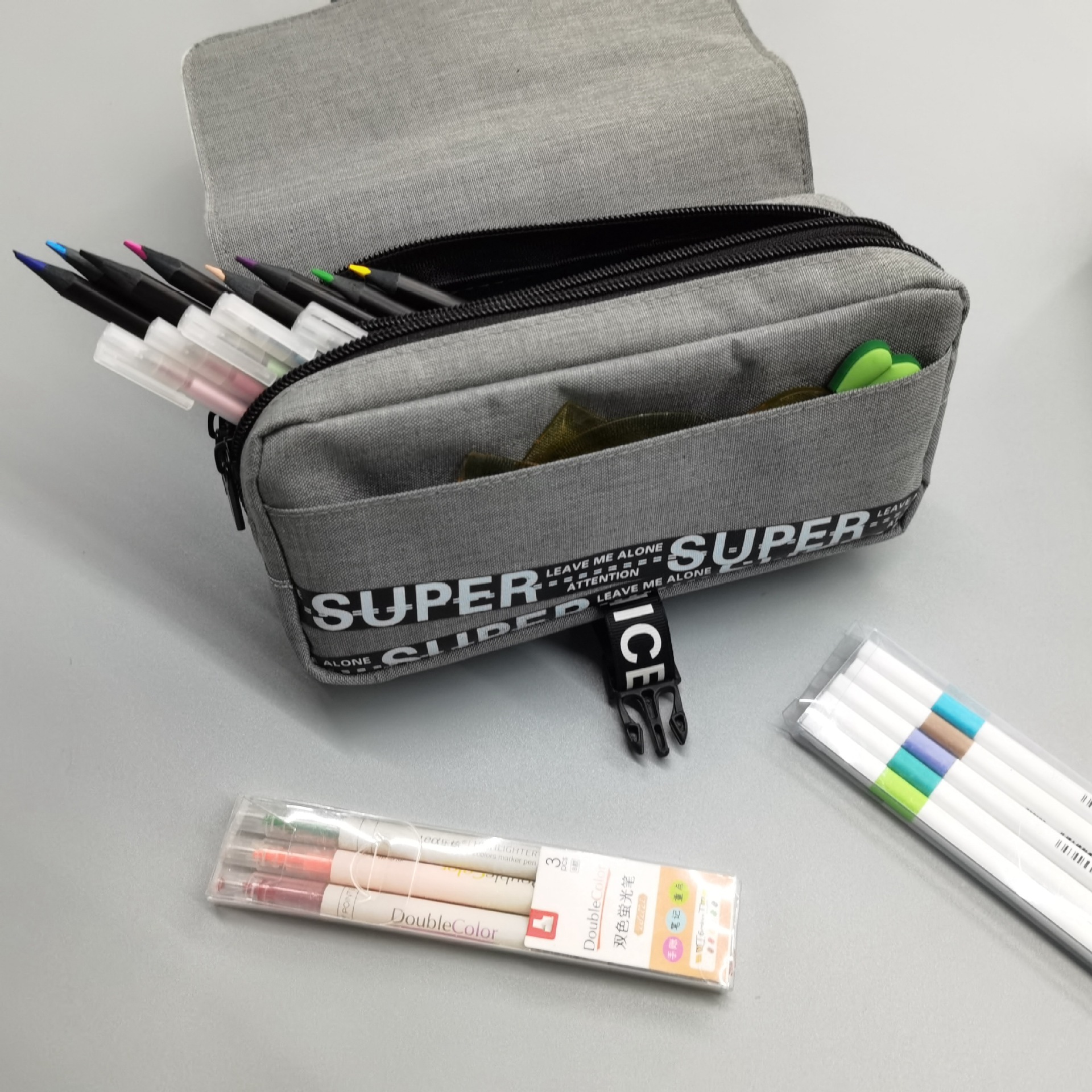 日系纯色双层笔袋中小学生文具袋韩国简约ins初中生大容量铅笔袋