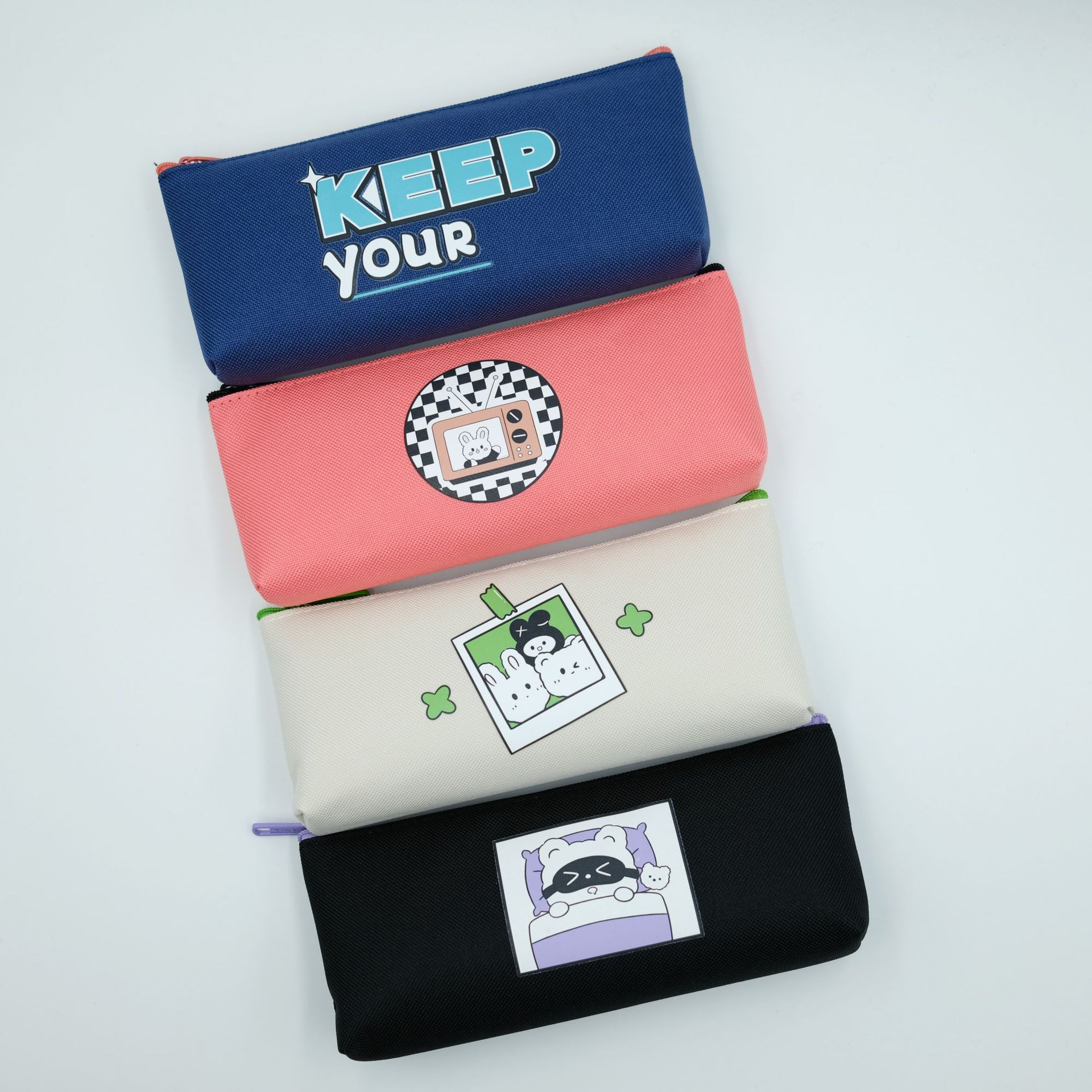 简易撞色卡通欧美风潮流字母大LOGO彩绘男孩女孩笔袋铅笔袋