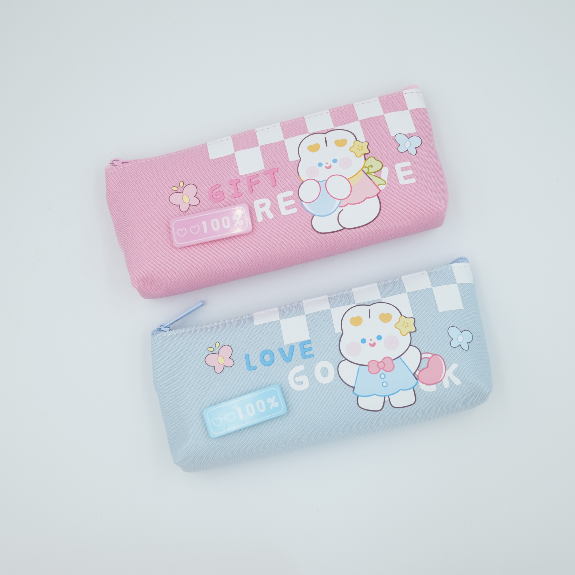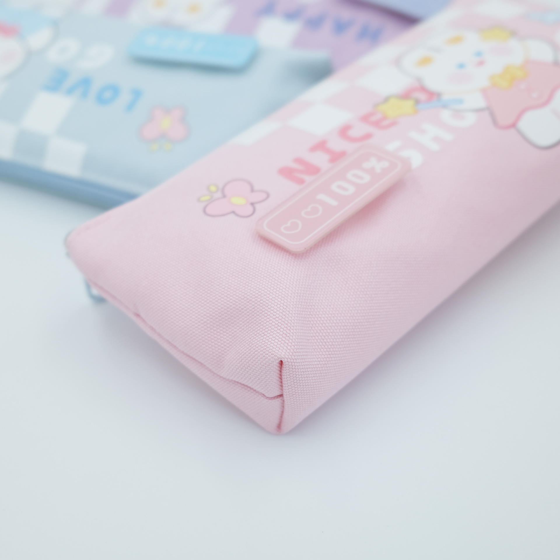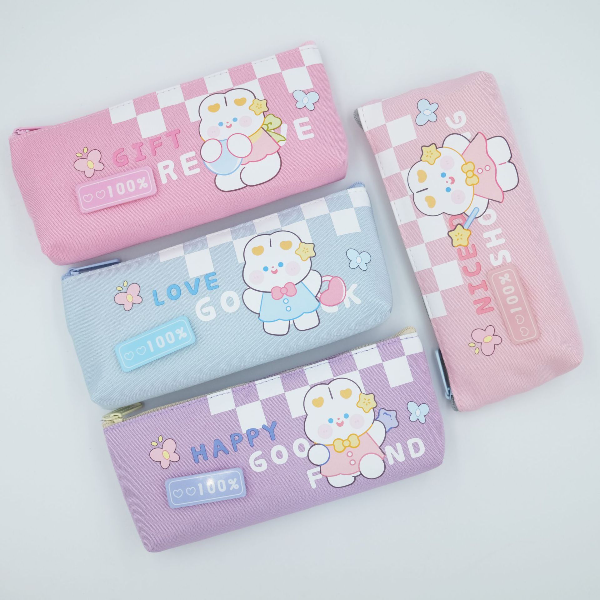 卡哇伊卡通小兔子四色硅胶高品质韩版格子风格小女孩笔袋铅笔袋