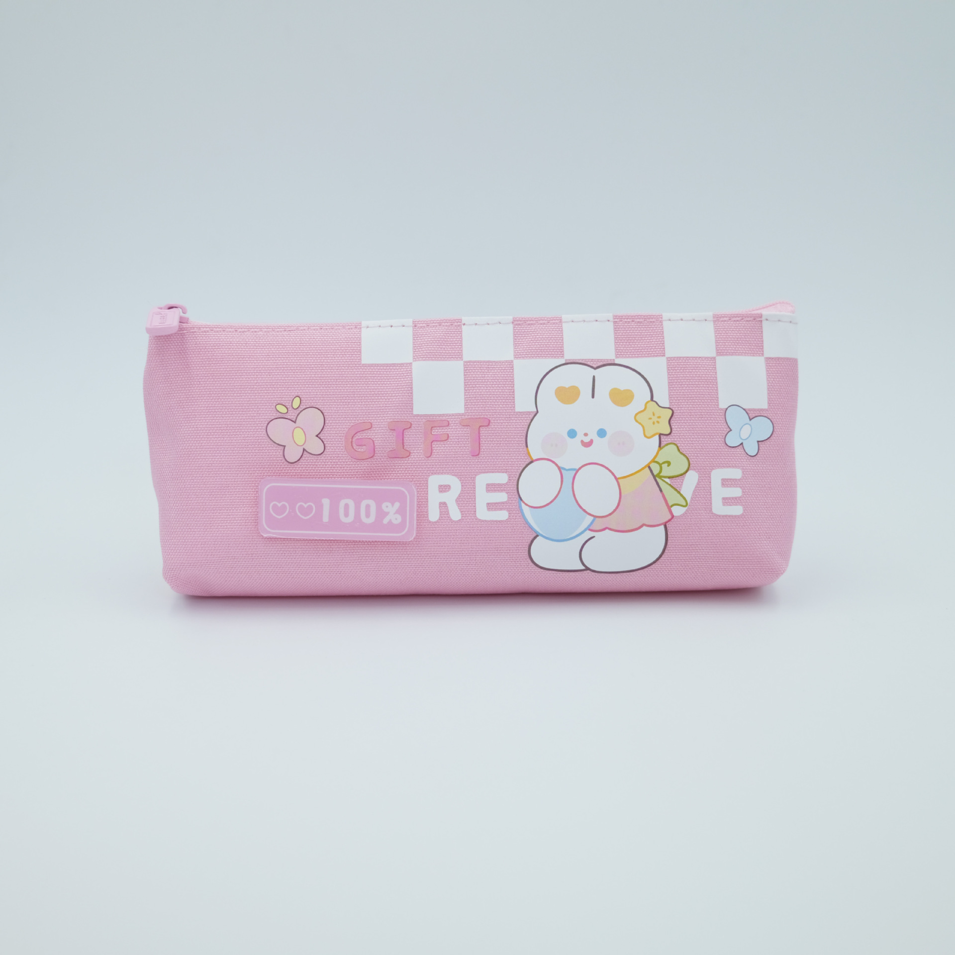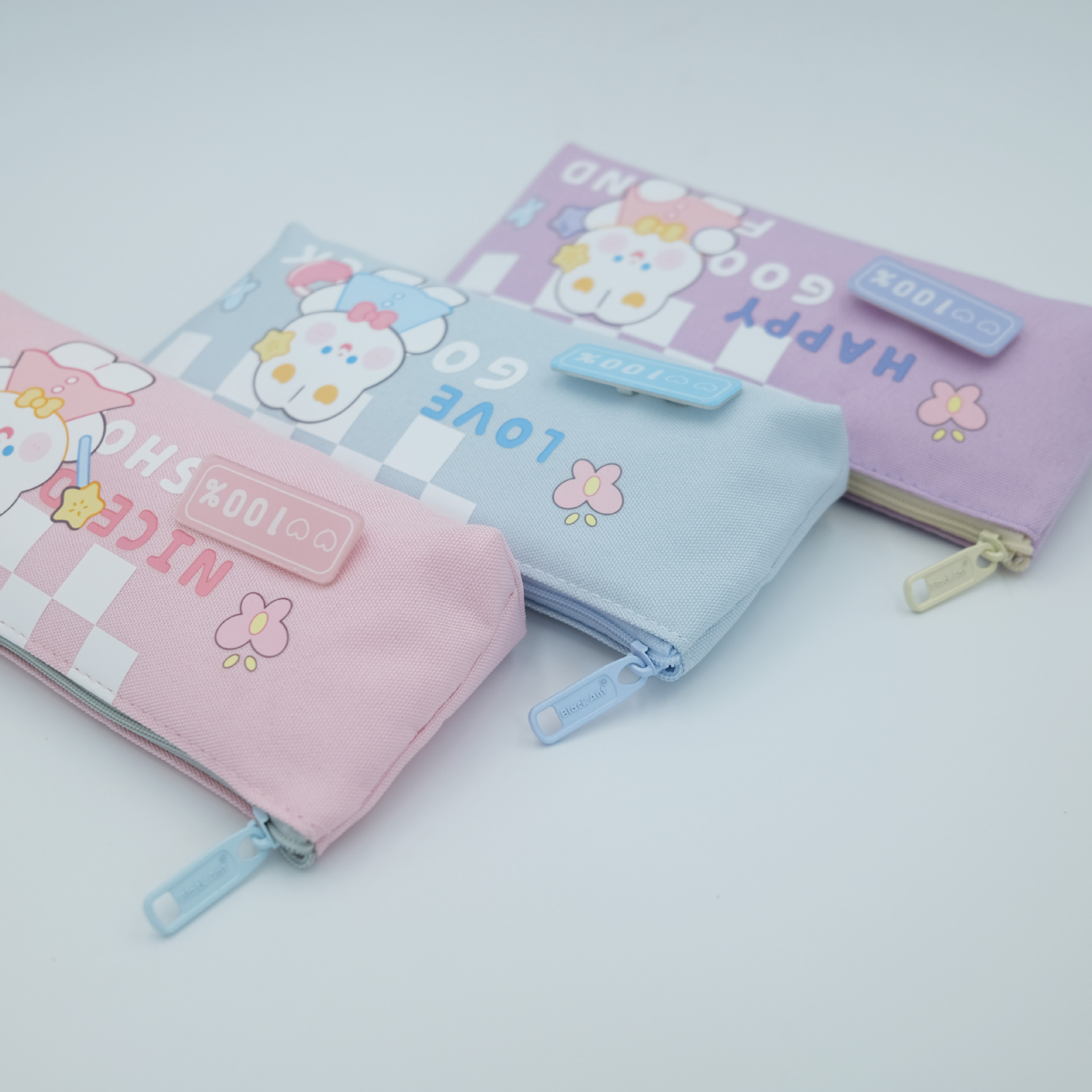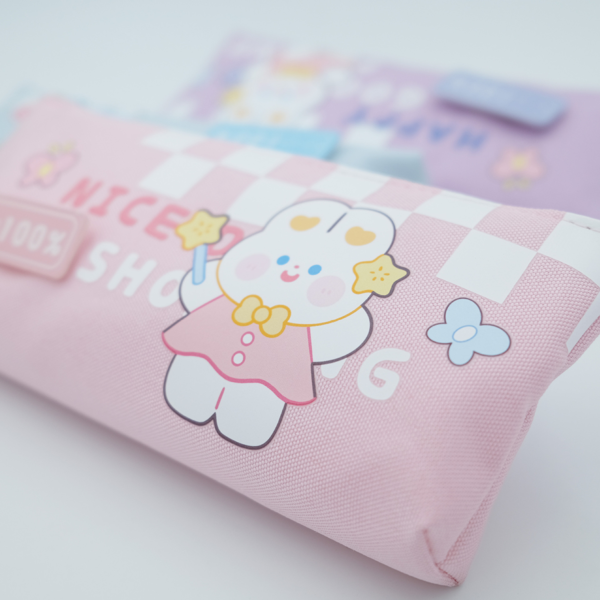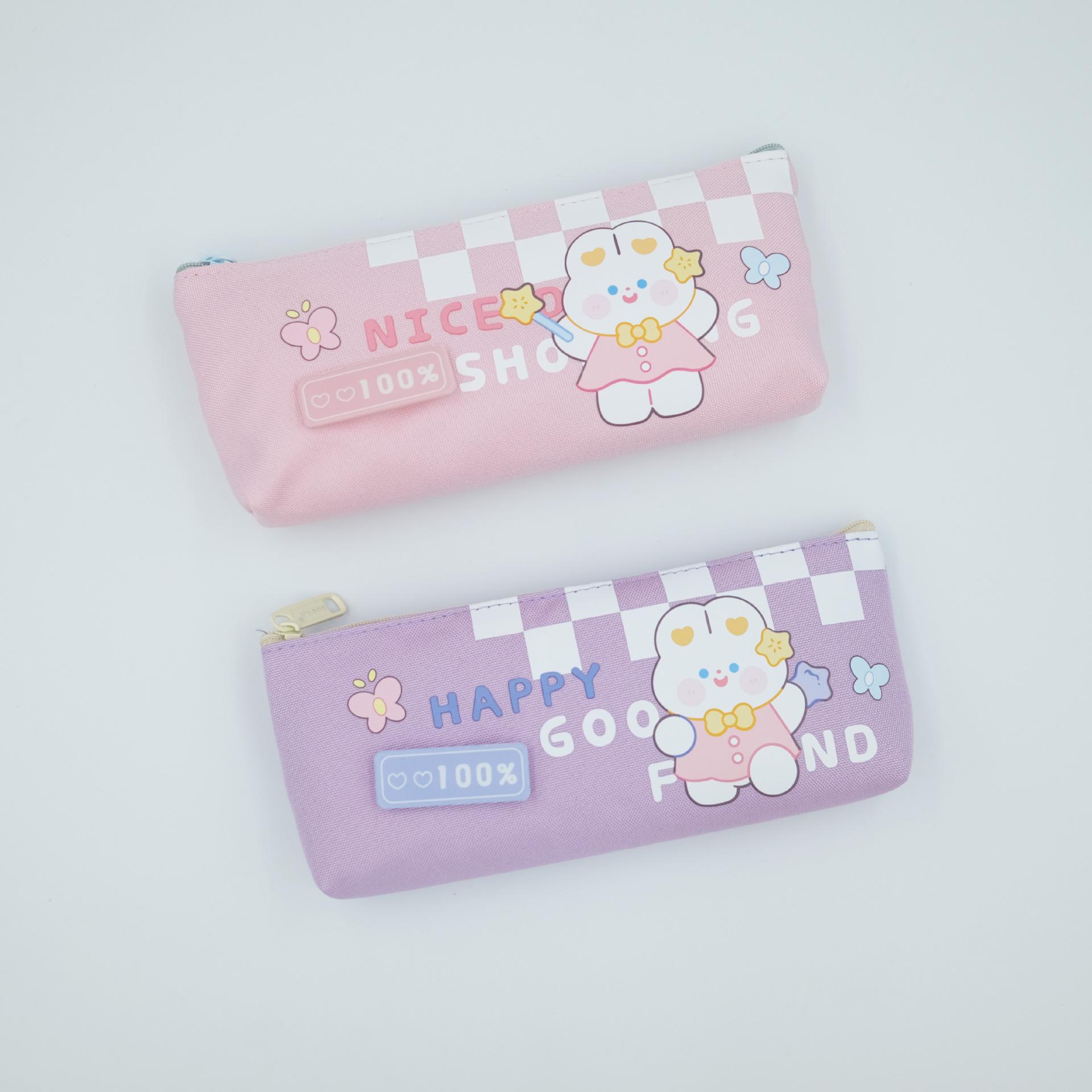 卡哇伊卡通小兔子四色硅胶高品质韩版格子风格小女孩笔袋铅笔袋