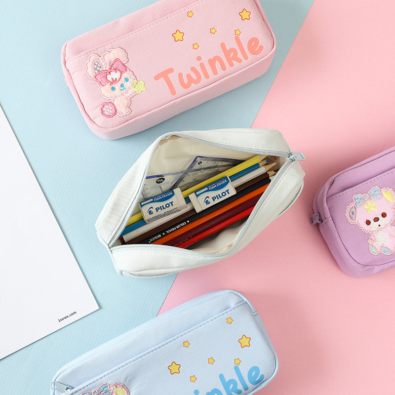 卡通大容量笔袋高颜值初中女孩子小学生铅笔袋粉色动漫双层文具袋