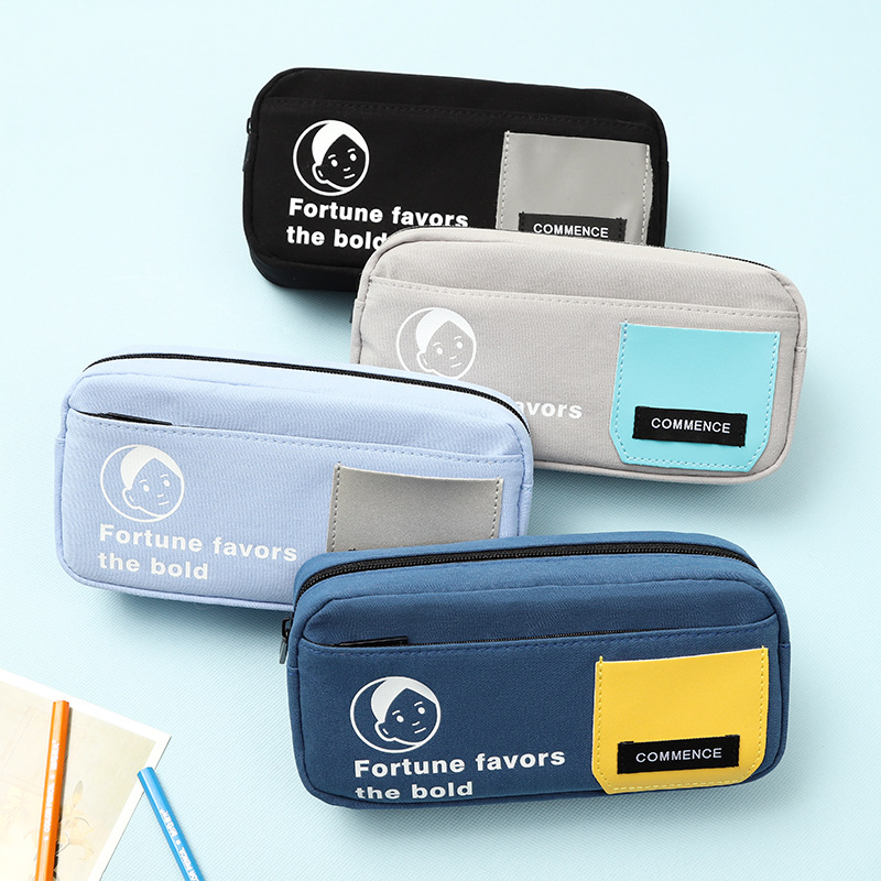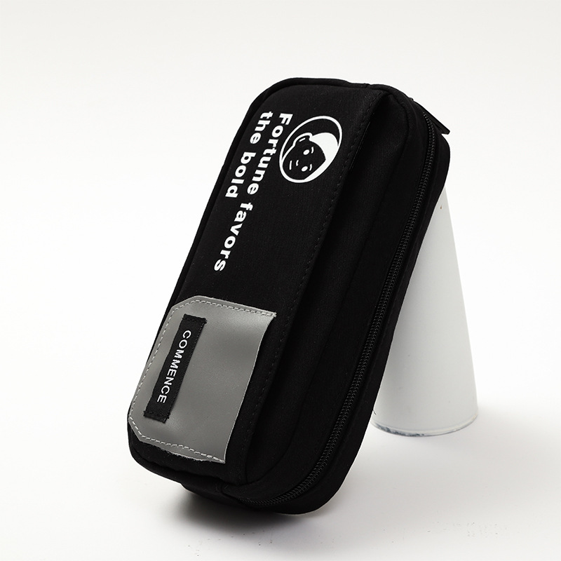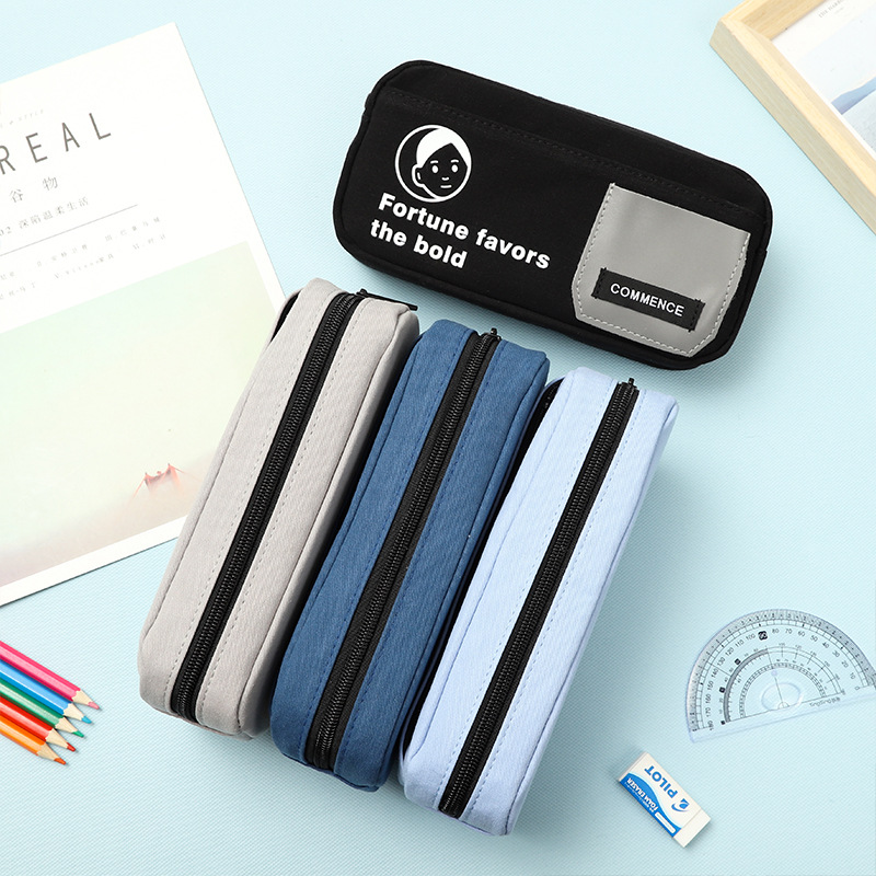 韩版创意双层笔袋简约大容量小学生铅笔袋日式高颜值黑色文具袋