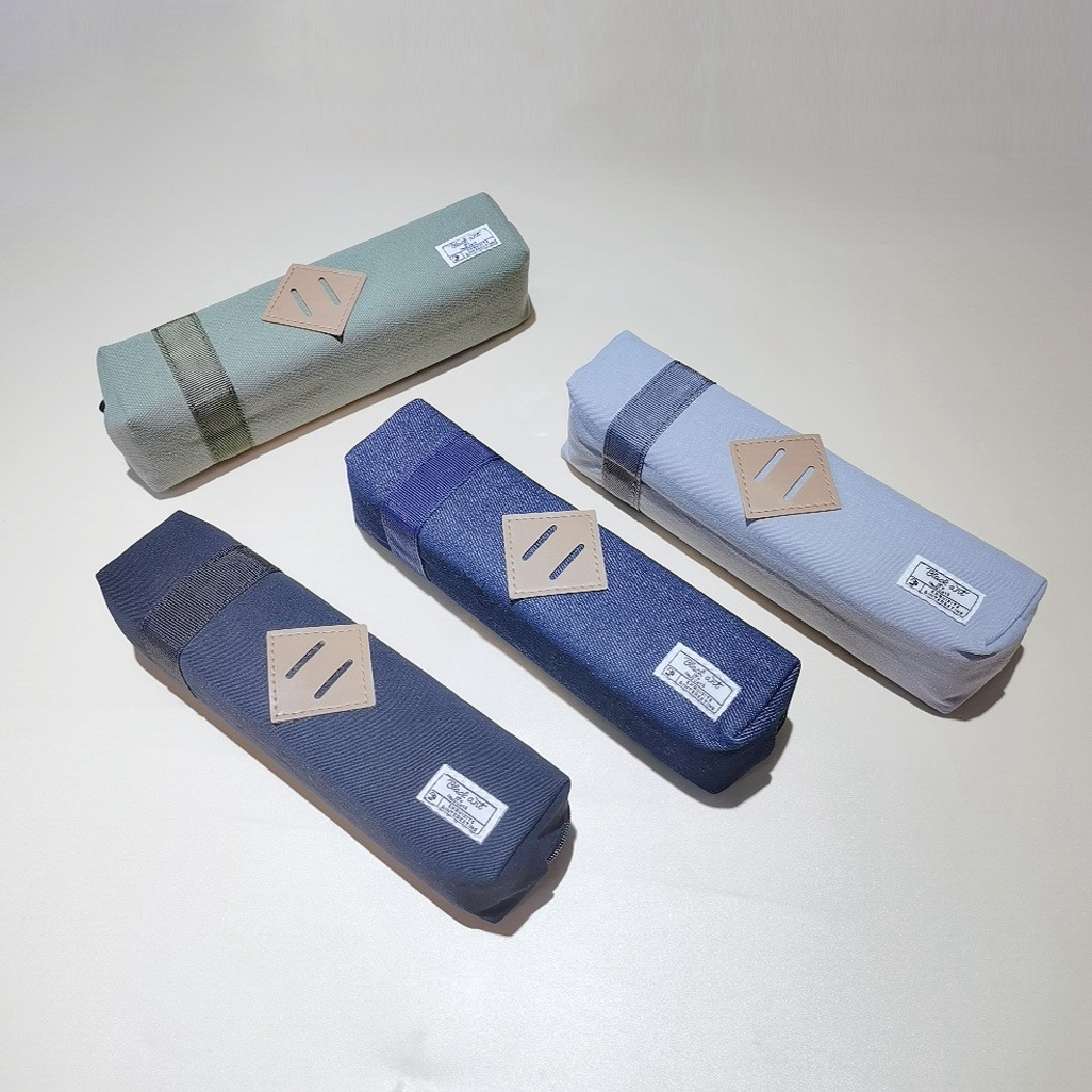 日式纯色帆布笔袋简约小巧黑色铅笔袋韩版初中小学生大容量文具袋