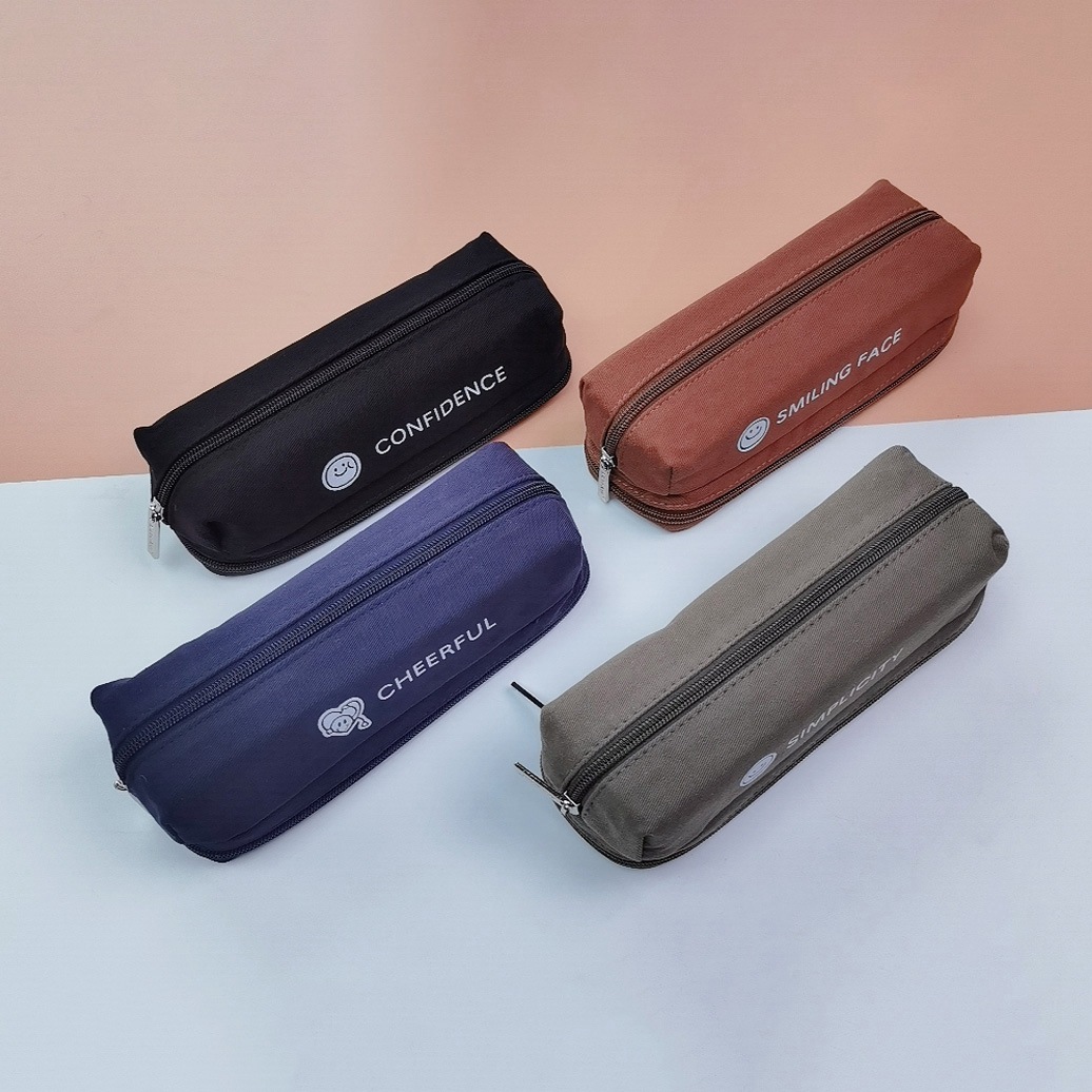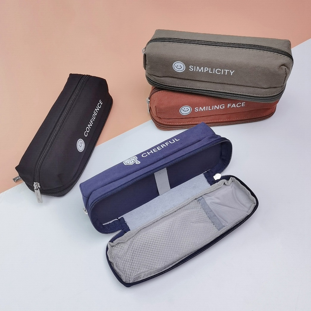 日式双层学生笔袋简约大容量铅笔袋韩版纯色高颜值初中生文具袋