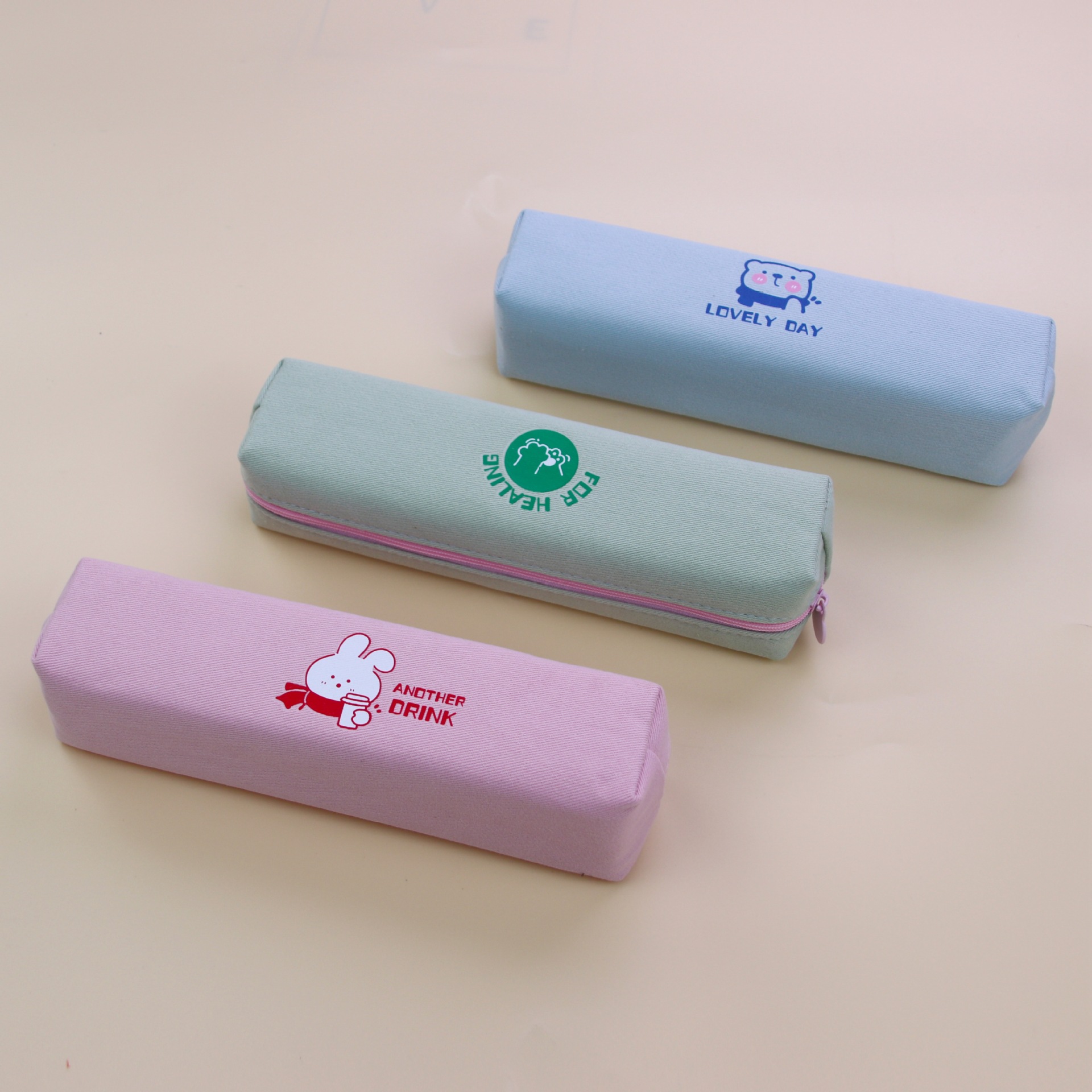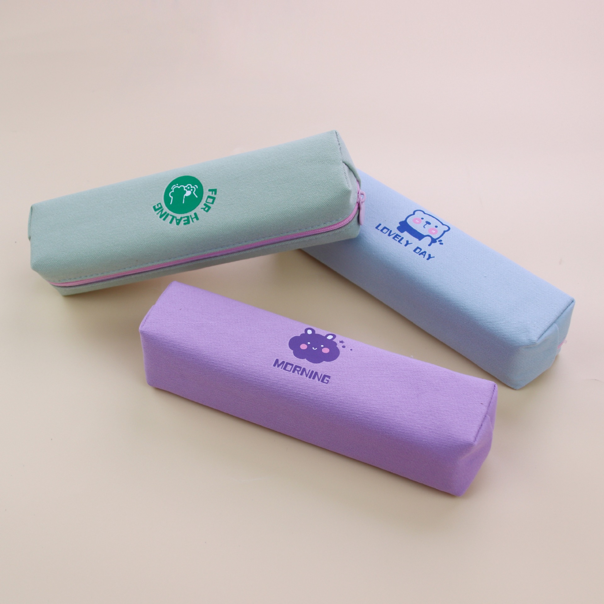 日系纯色帆布小学生迷你笔袋女孩动漫韩国粉色卡通文具袋加印LOGO