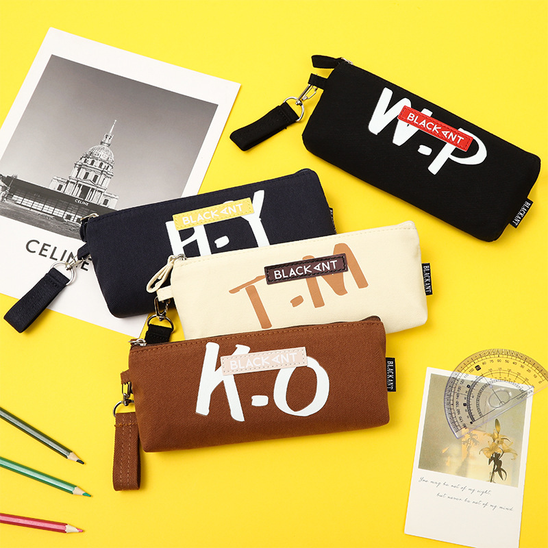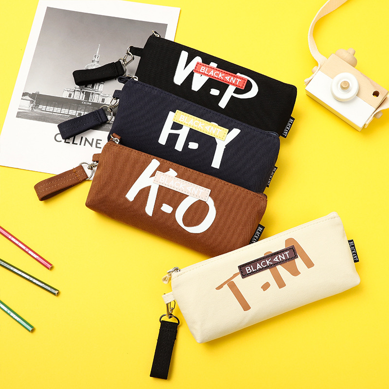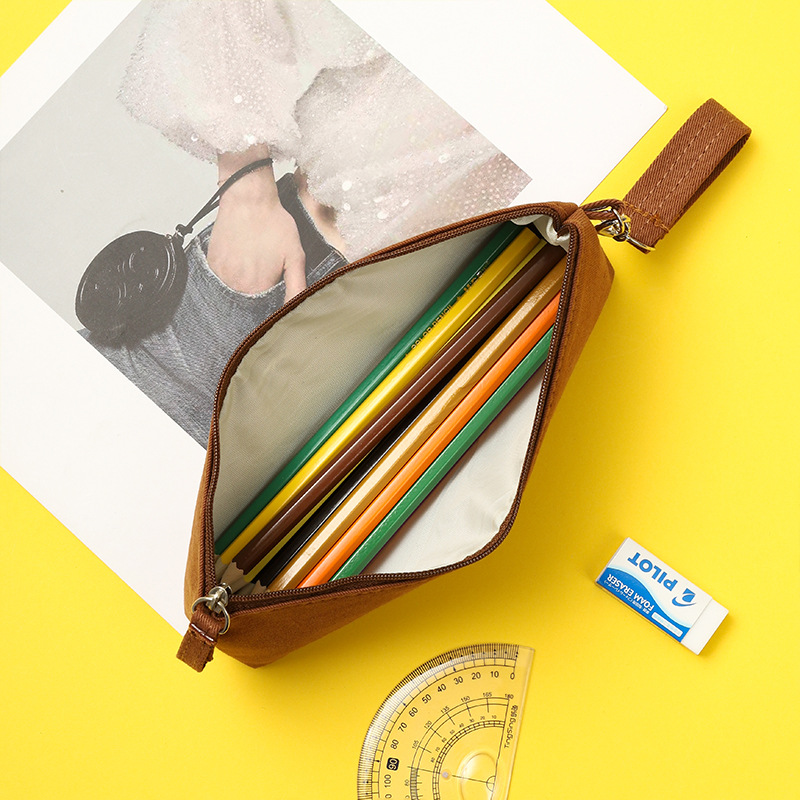 韩版帆布提手笔袋简约纯色小学生铅笔袋高颜值大容量初中文具袋
