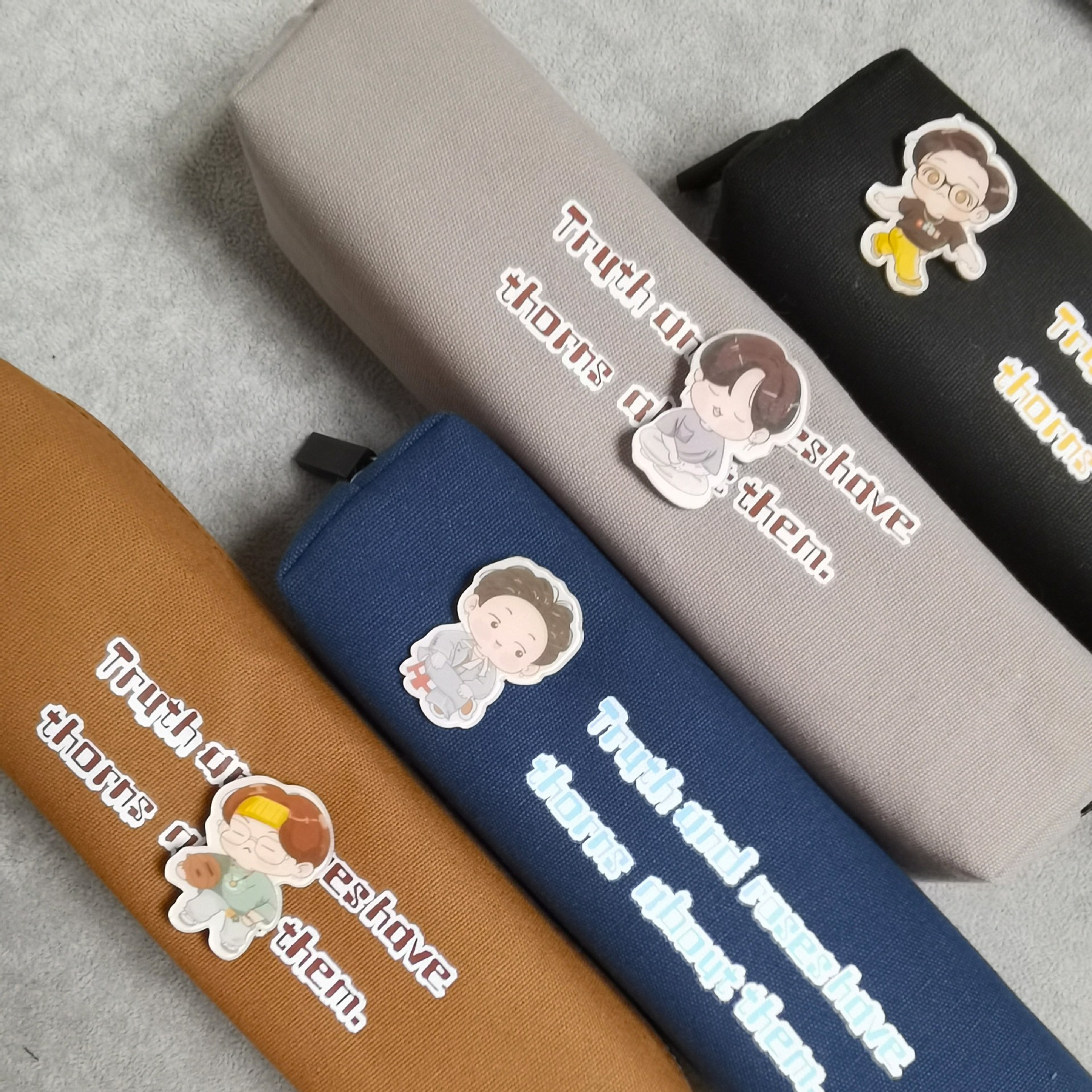 韩国帆布中小学生笔袋纯色简约男孩铅笔袋日系卡通可爱女孩文具袋