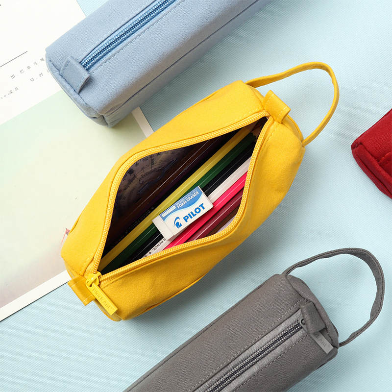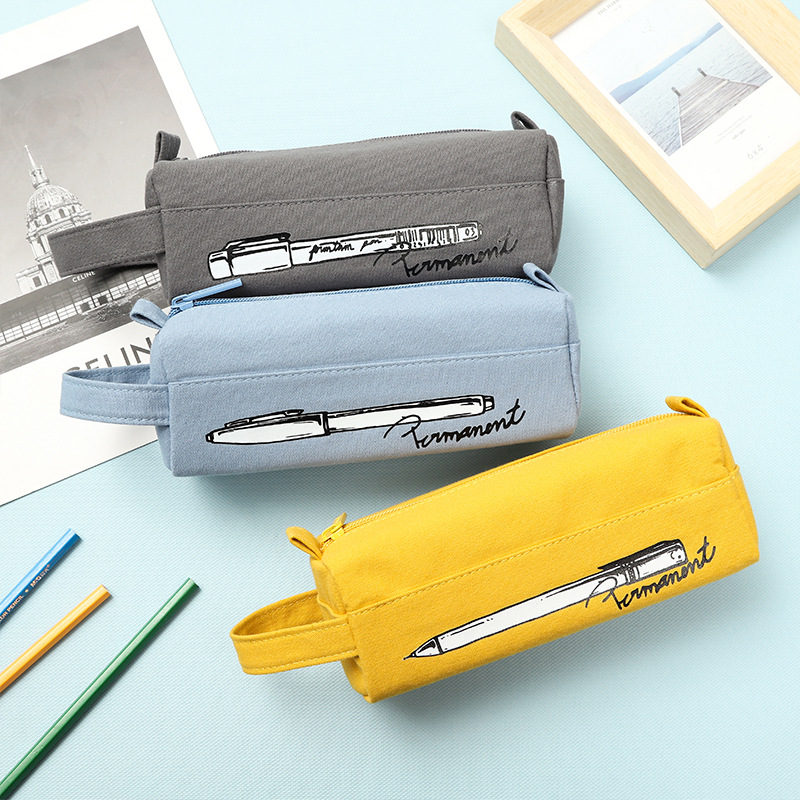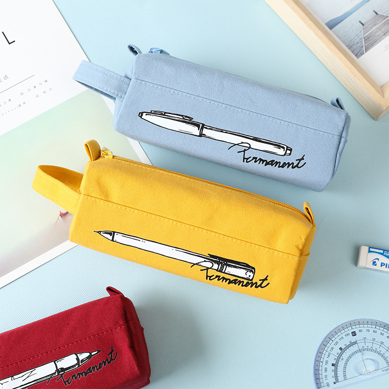 韩版纯色帆布笔袋简约布艺中学生大容量文具袋简约小学生铅笔袋