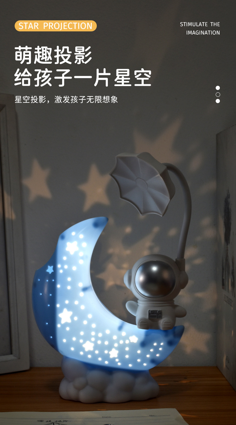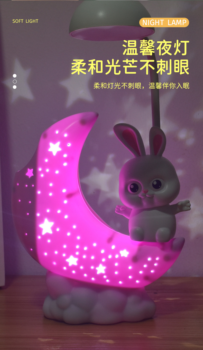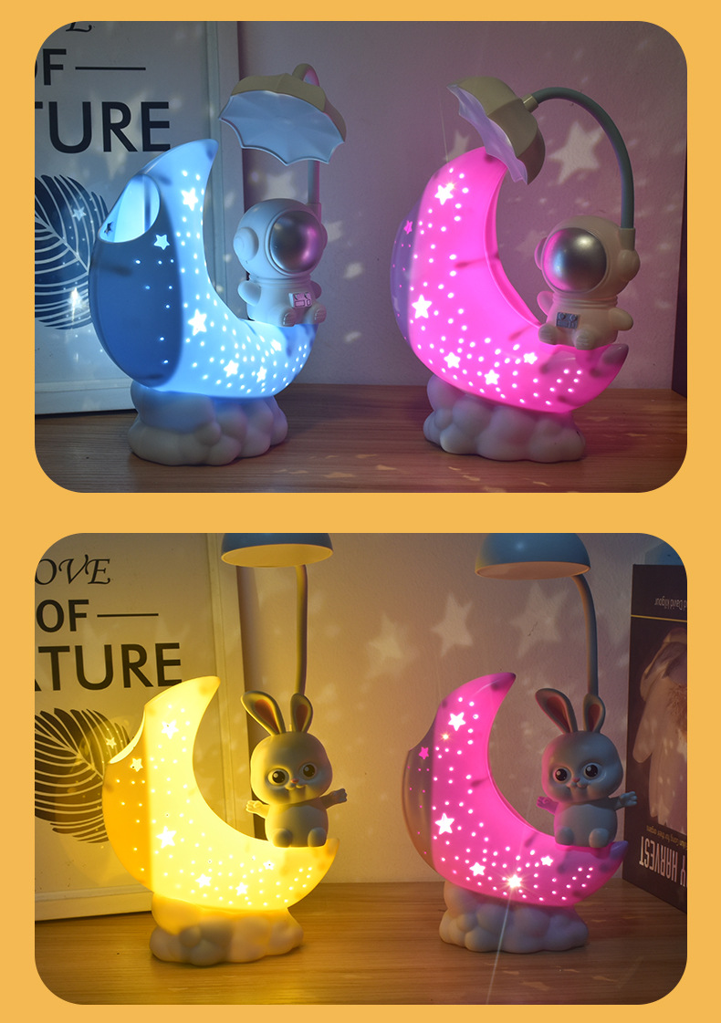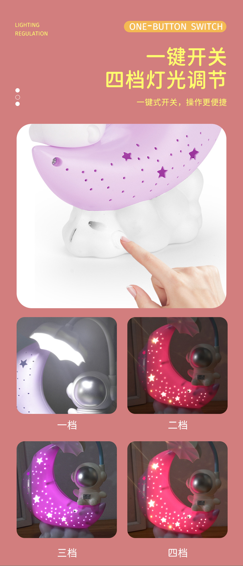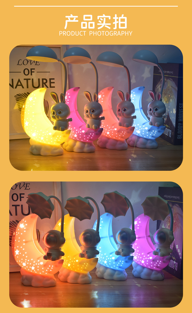 卡通兔子月亮氛围灯 太空人宇航员星星投影床头灯 LED充电小夜灯