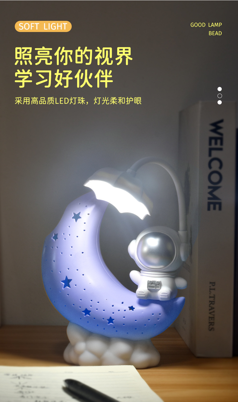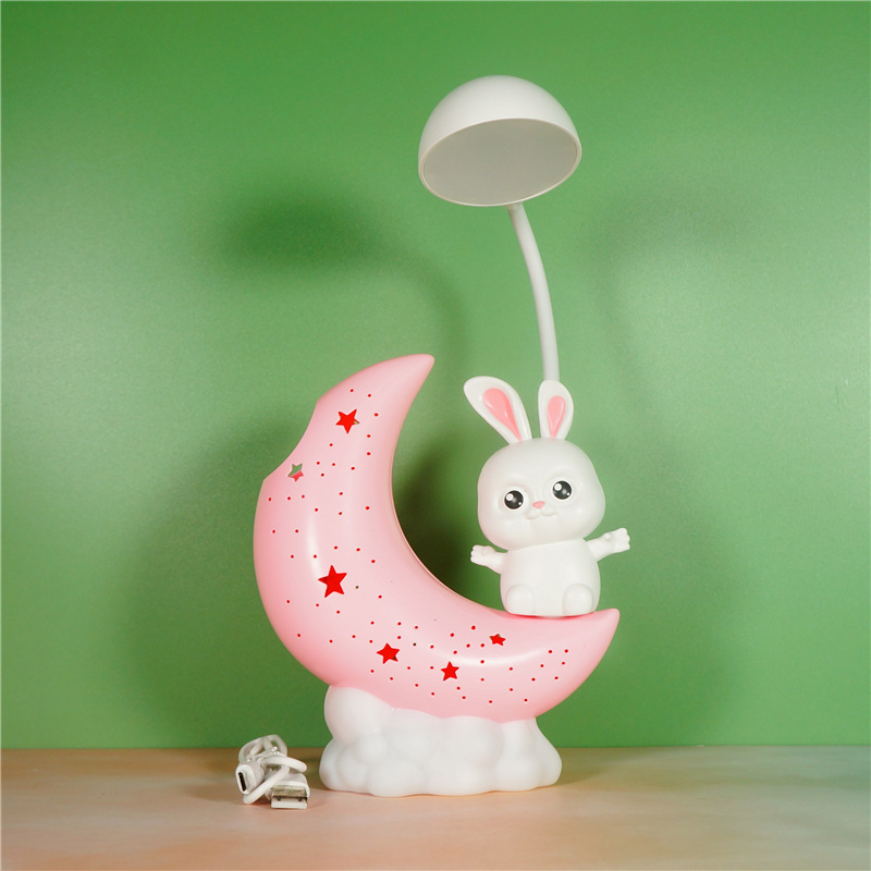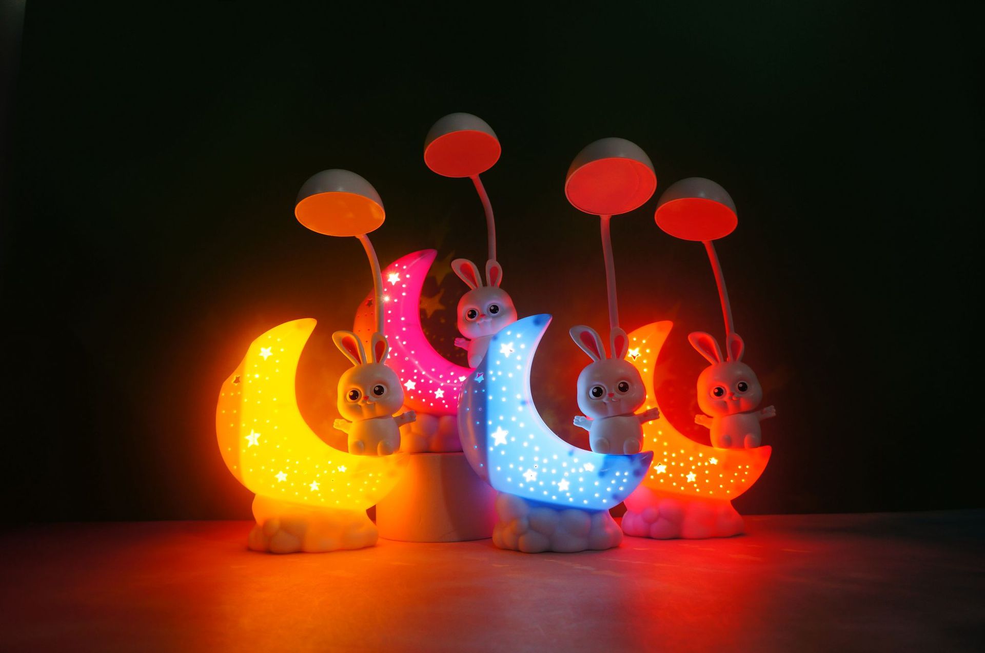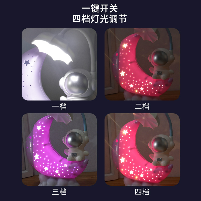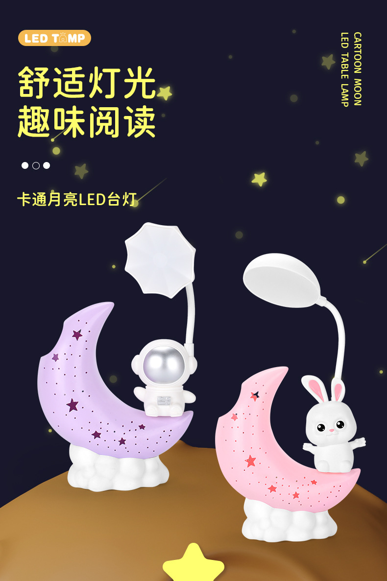 卡通兔子月亮氛围灯 太空人宇航员星星投影床头灯 LED充电小夜灯