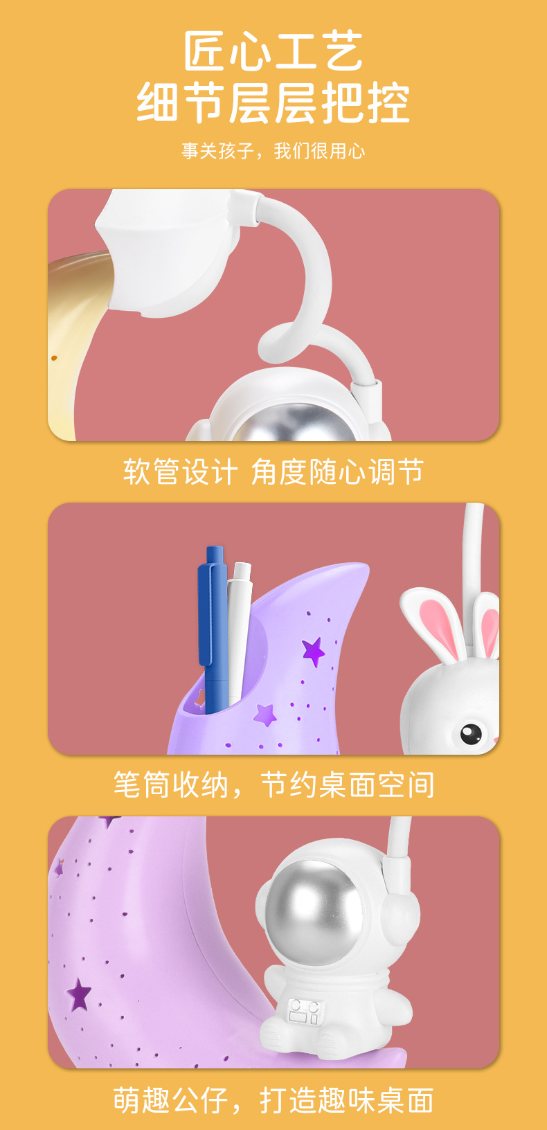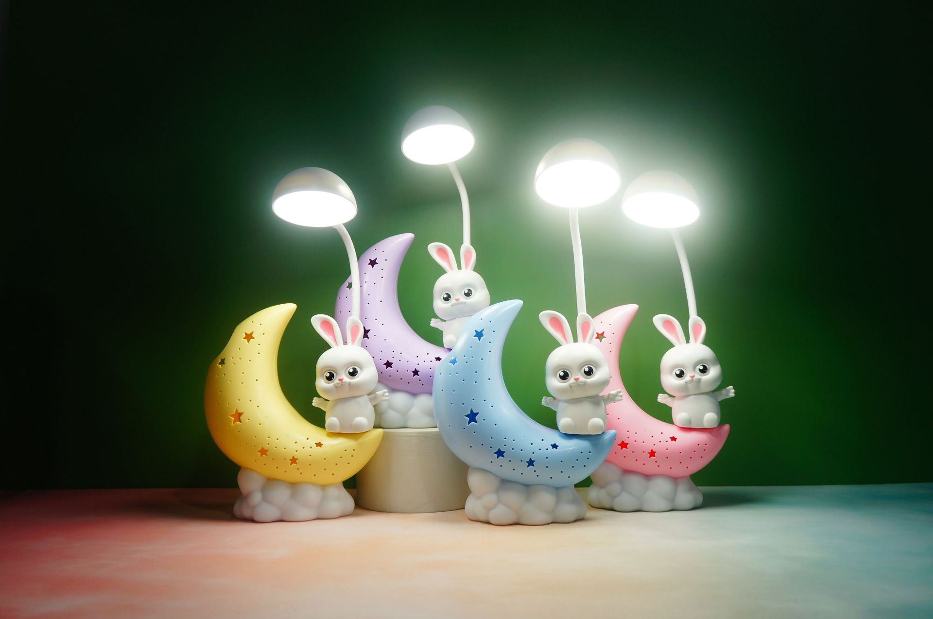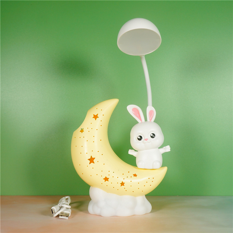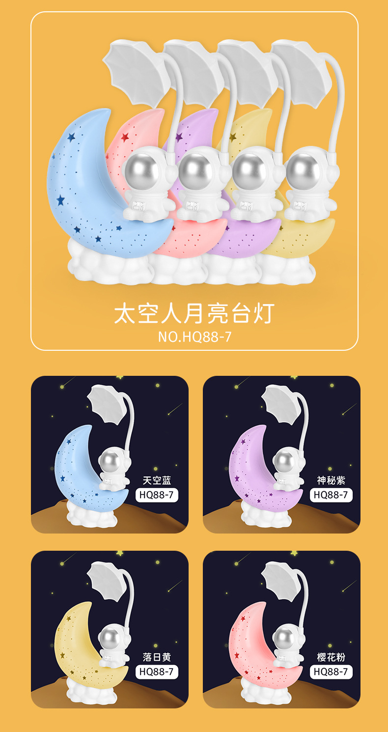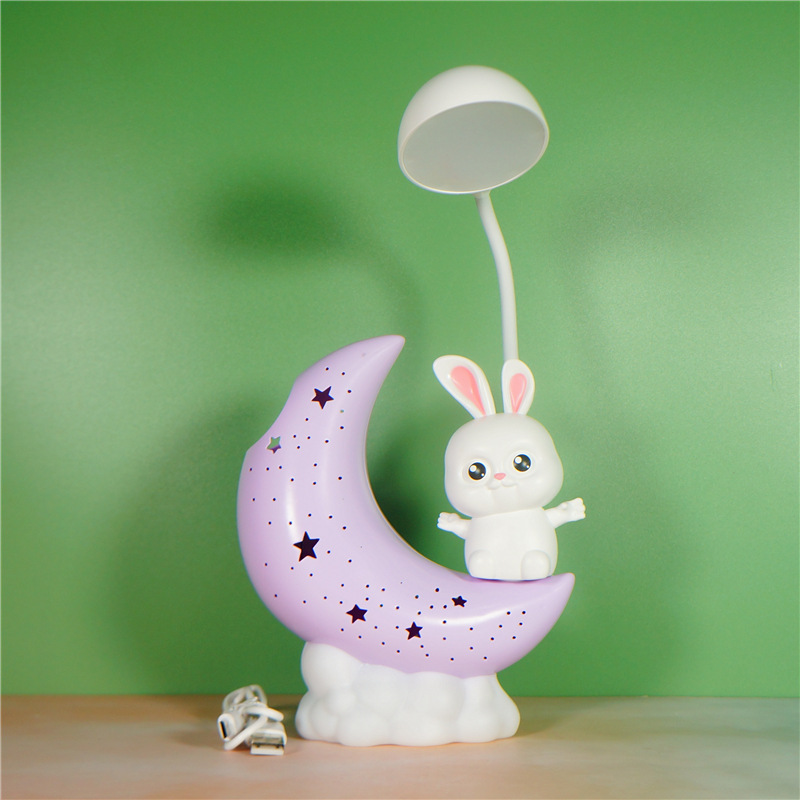 卡通兔子月亮氛围灯 太空人宇航员星星投影床头灯 LED充电小夜灯