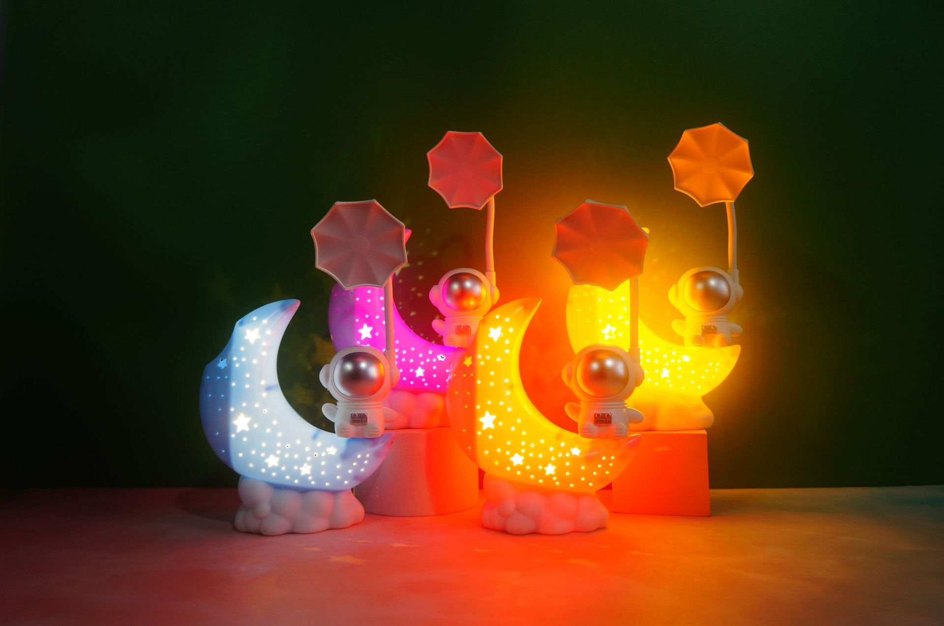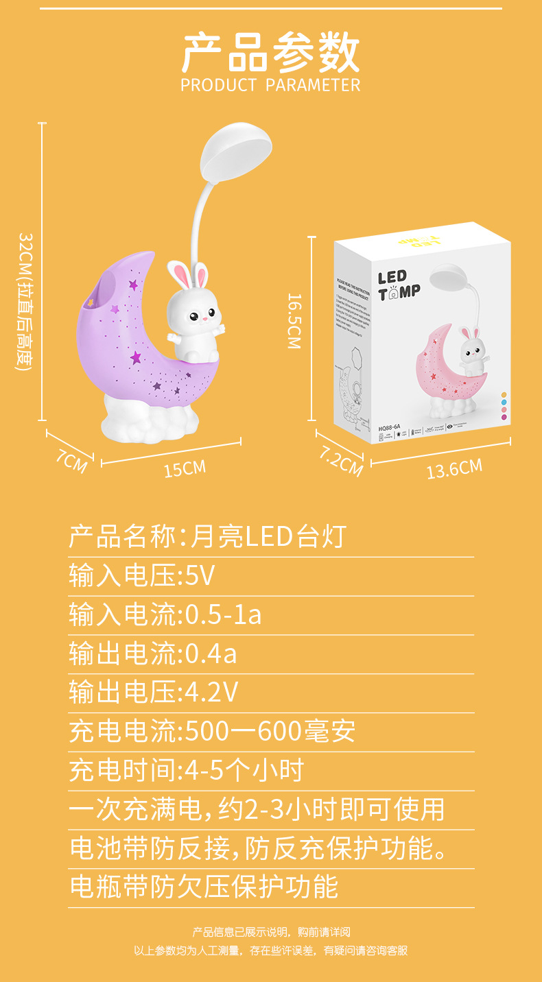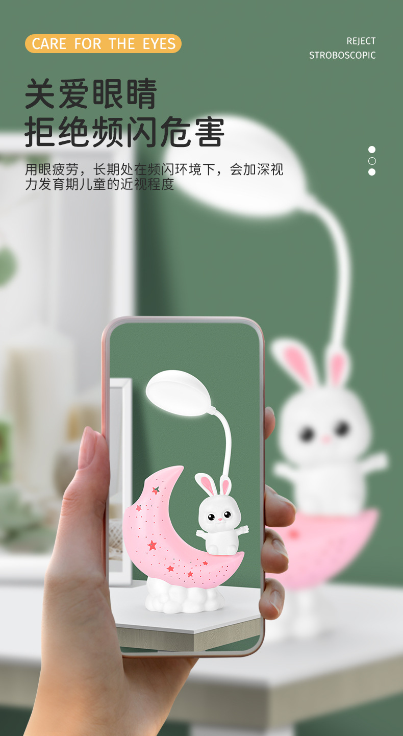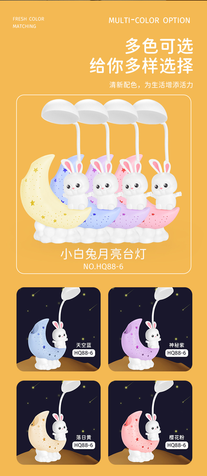 卡通兔子月亮氛围灯 太空人宇航员星星投影床头灯 LED充电小夜灯
