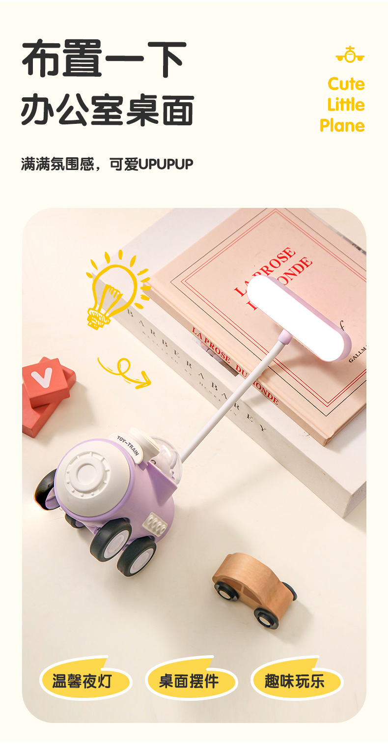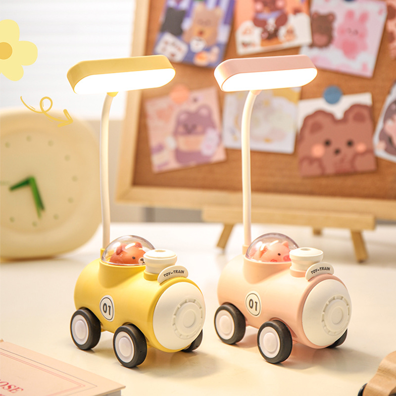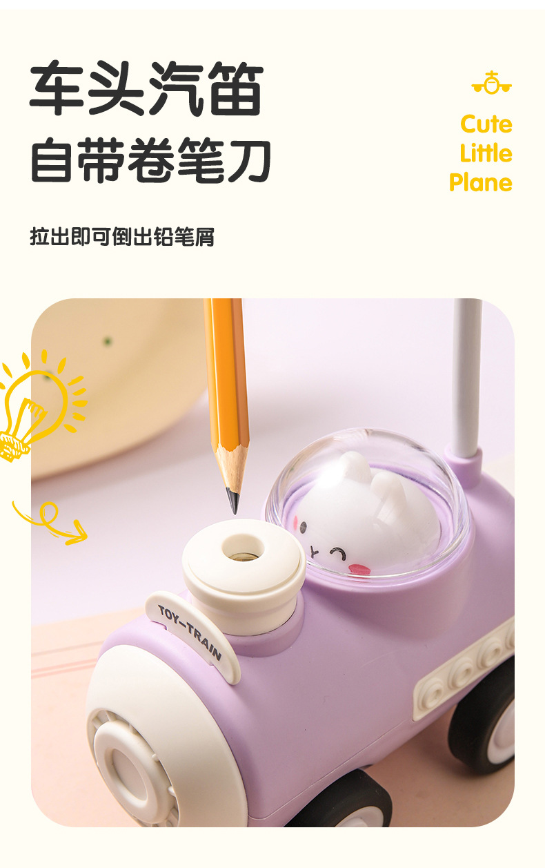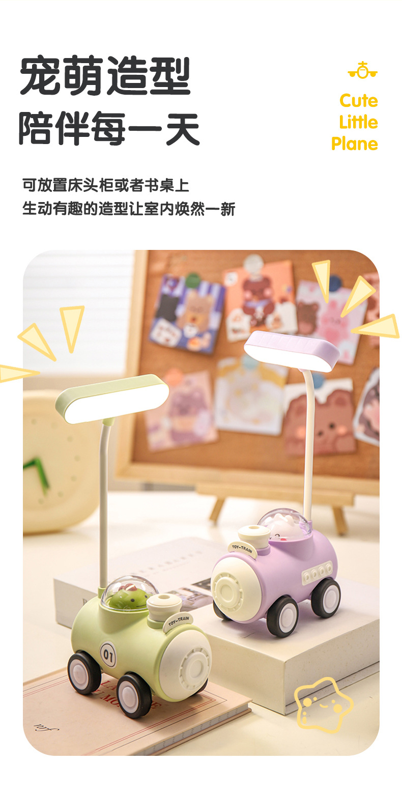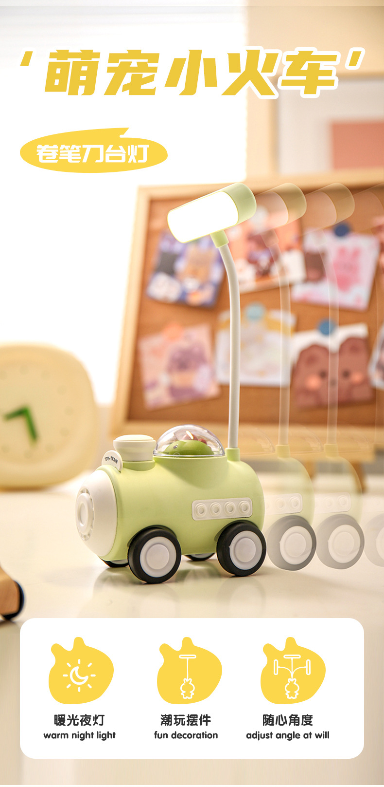 可爱书桌摆件小夜灯 迷你LED小火车台灯 带卷笔刀卡通文具小夜灯