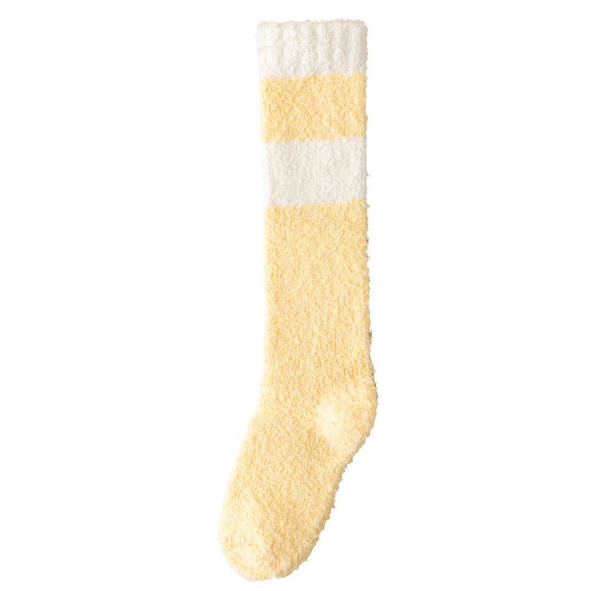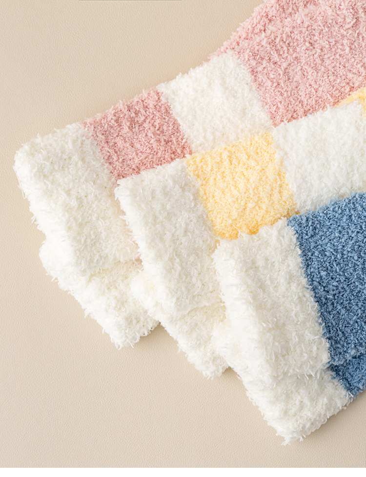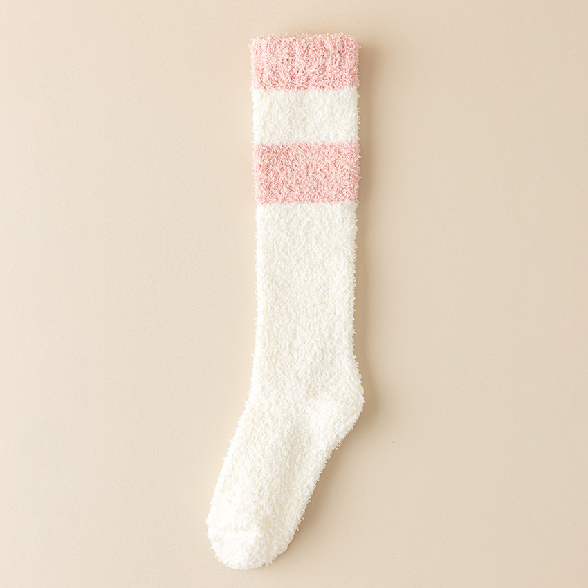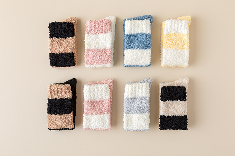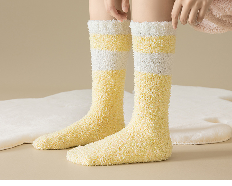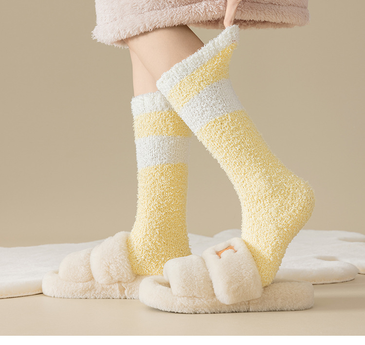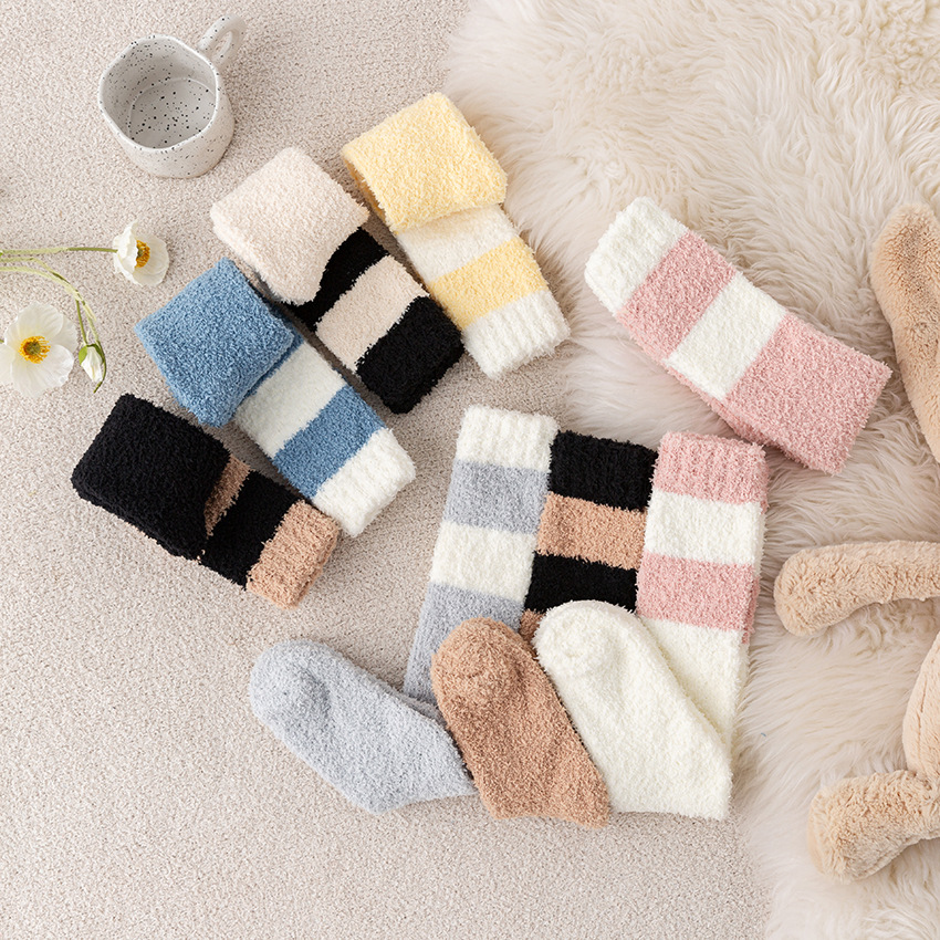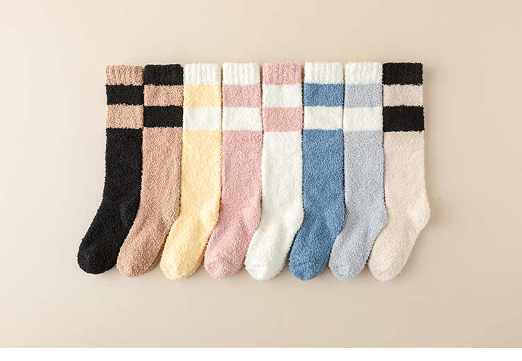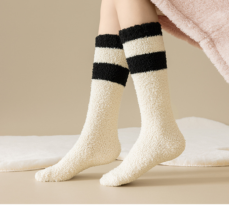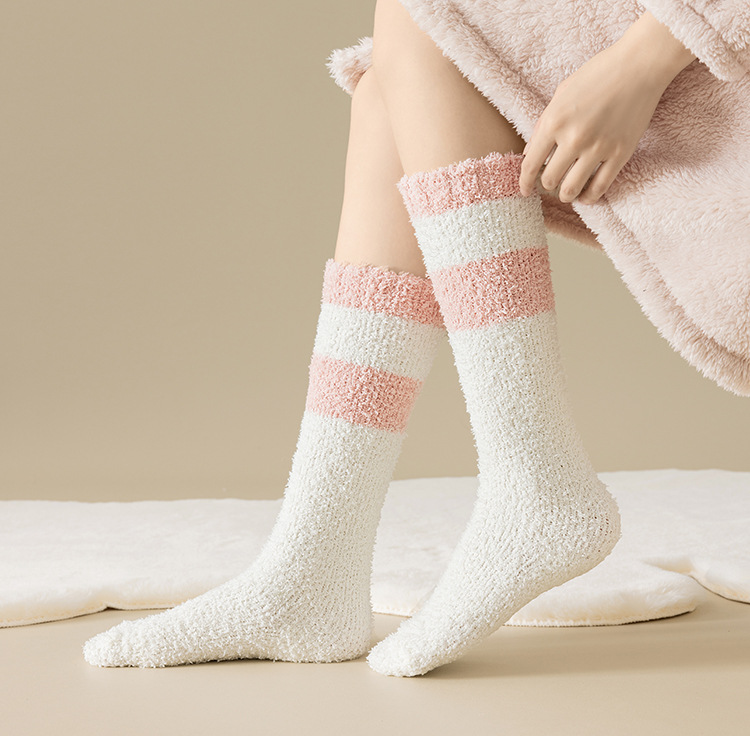 秋冬季珊瑚绒小腿袜拼接颜色女袜加厚月子袜居家雪地袜子跨境货源