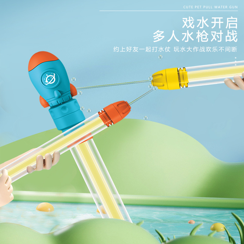 儿童夏季清凉玩水战萌宠抽拉式出水枪萌宝多人对战趣味过家家玩具