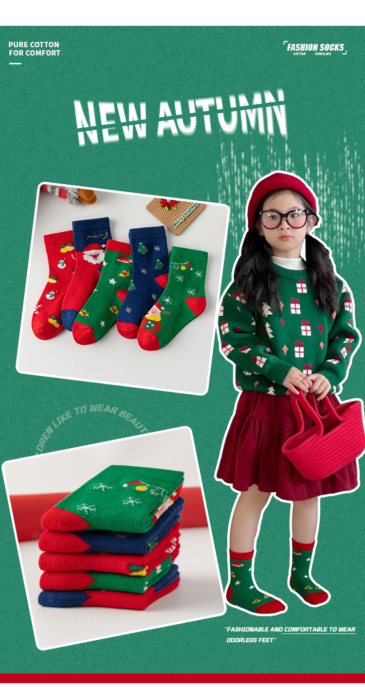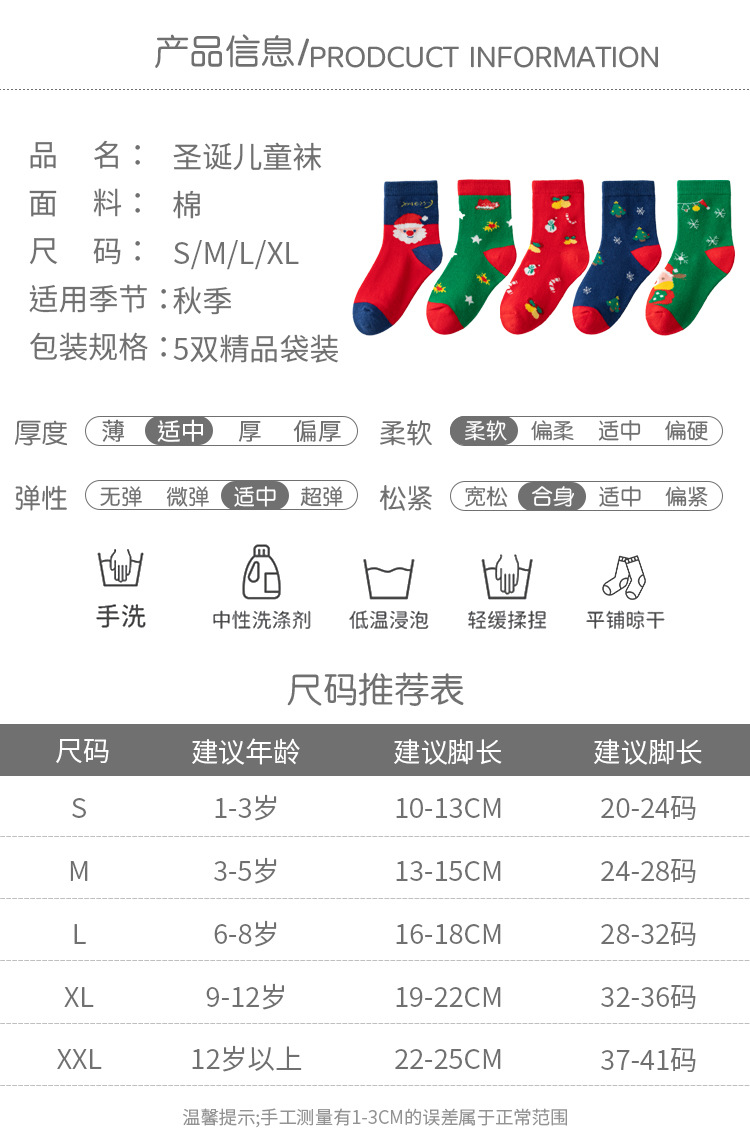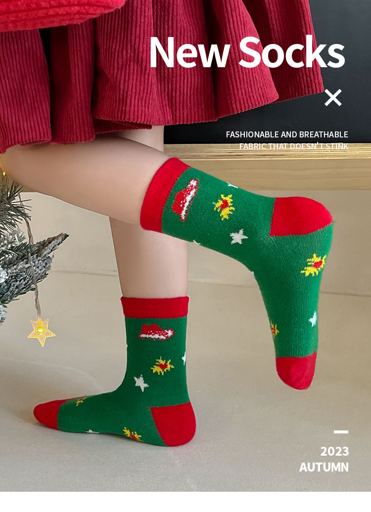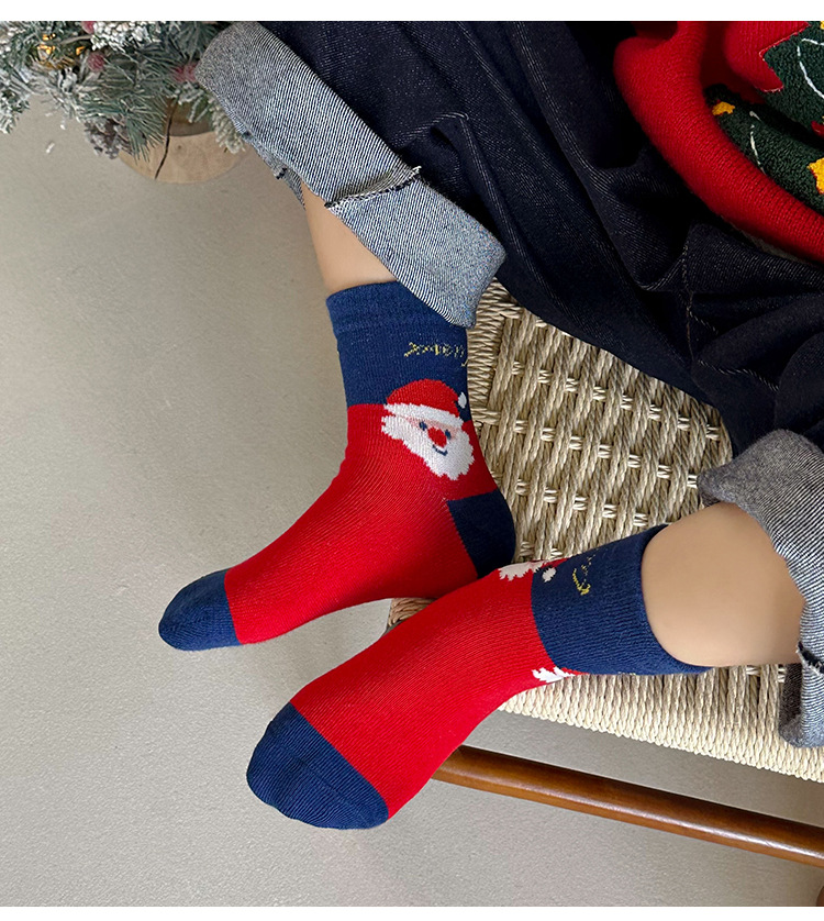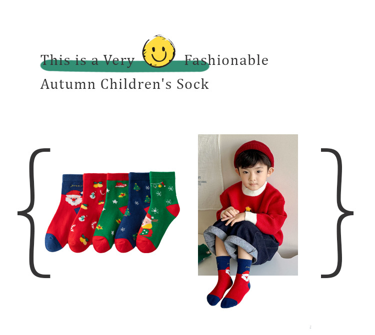 圣诞节儿童袜子秋季新款卡通棉袜百搭男女童可爱日系秋冬中筒袜子