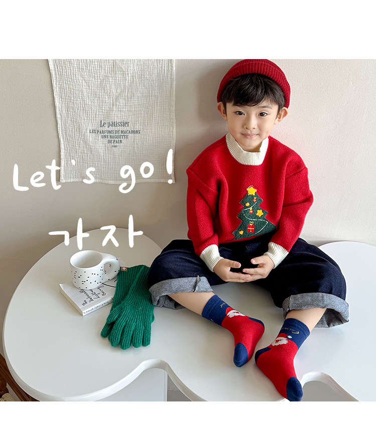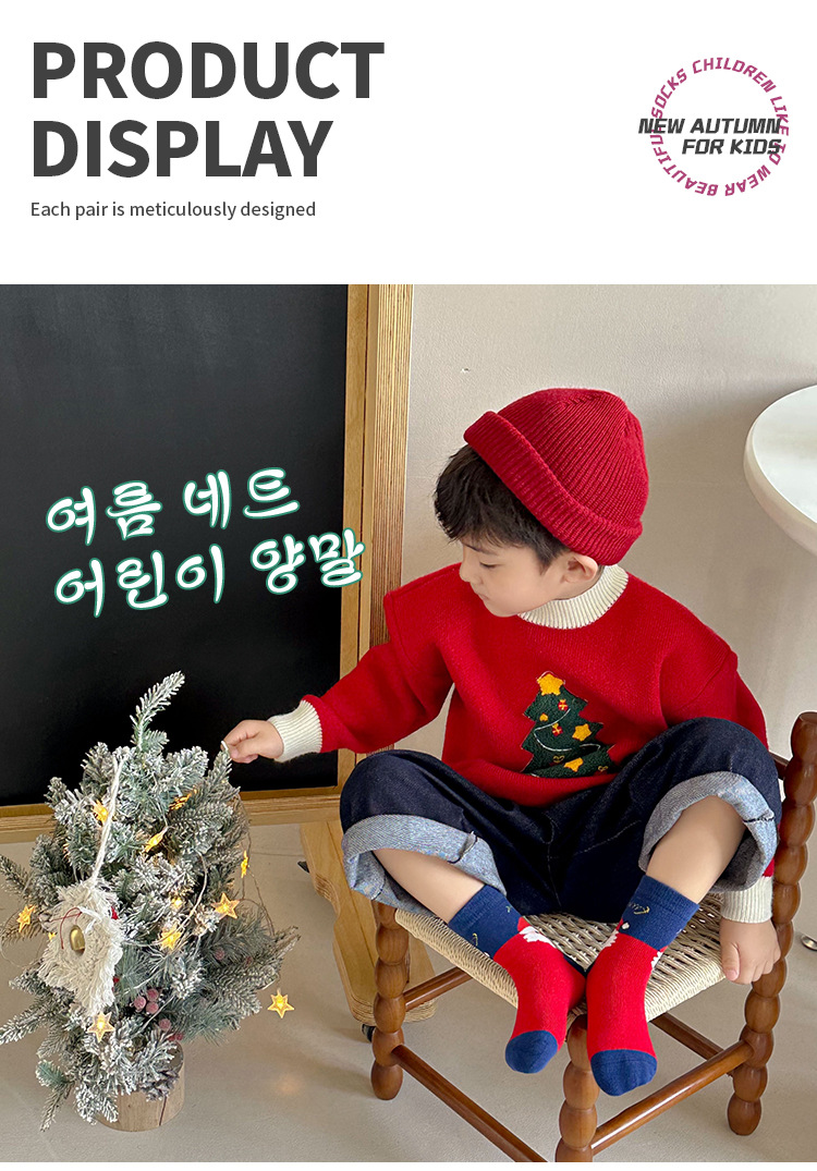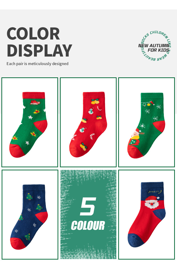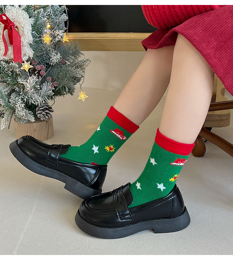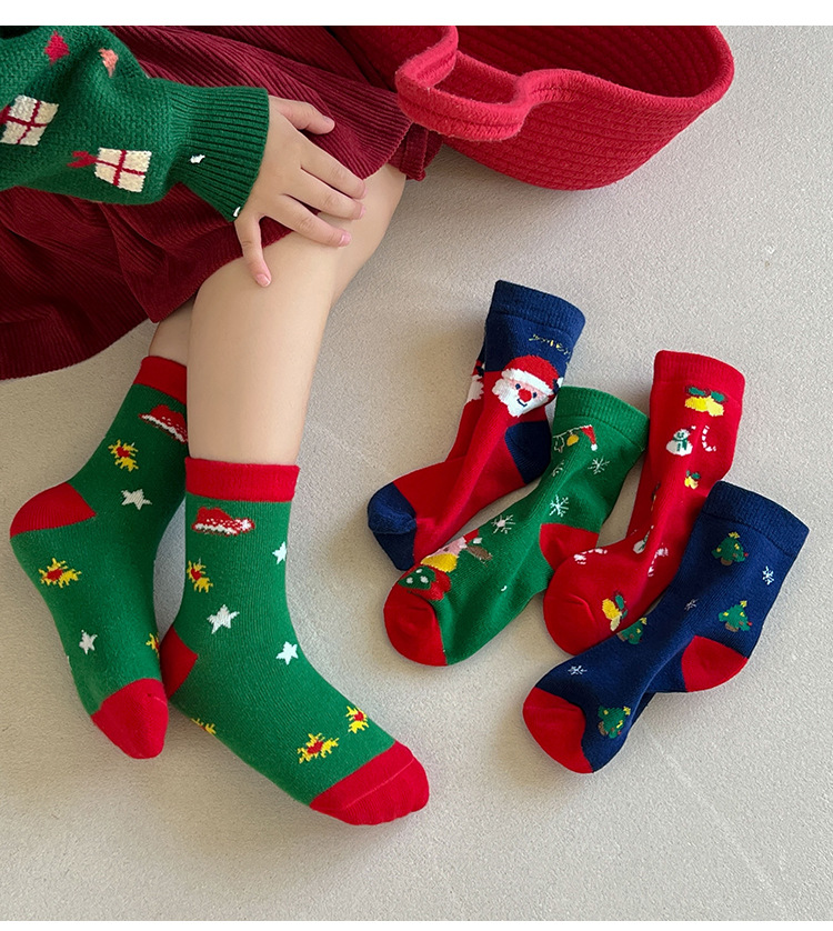 圣诞节儿童袜子秋季新款卡通棉袜百搭男女童可爱日系秋冬中筒袜子