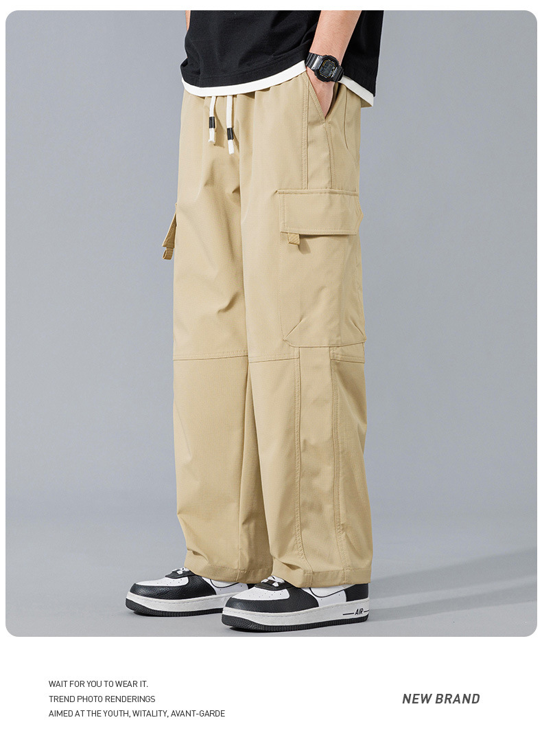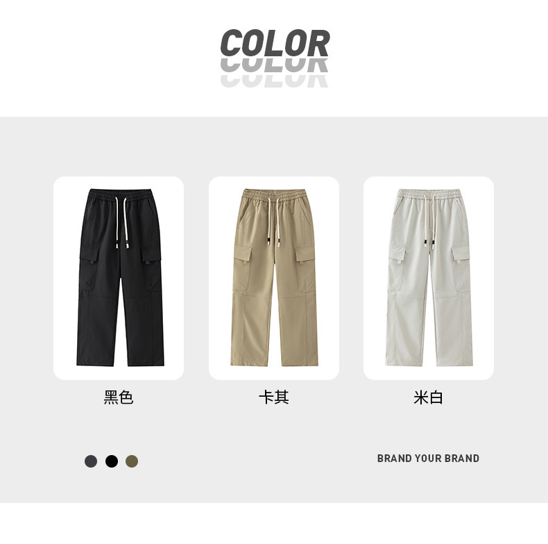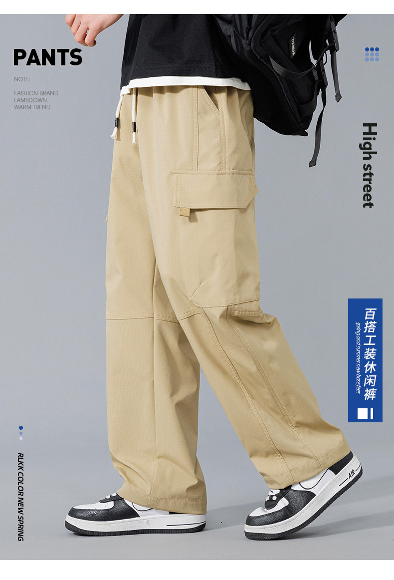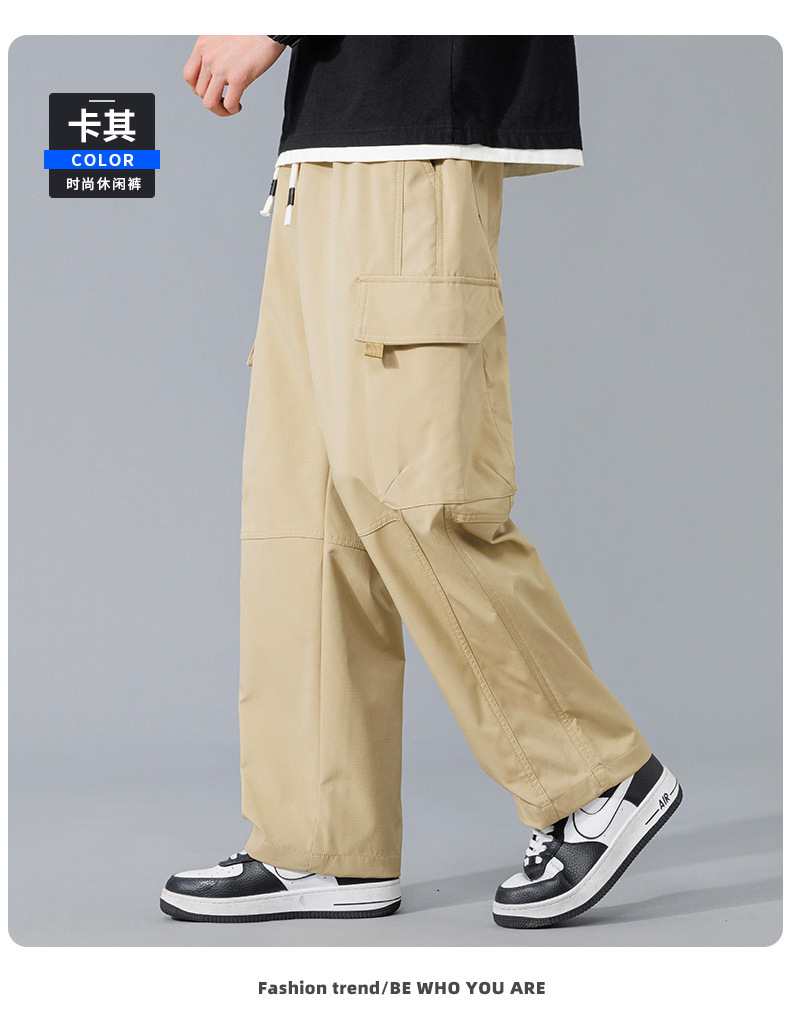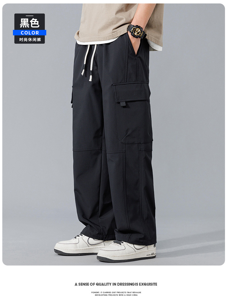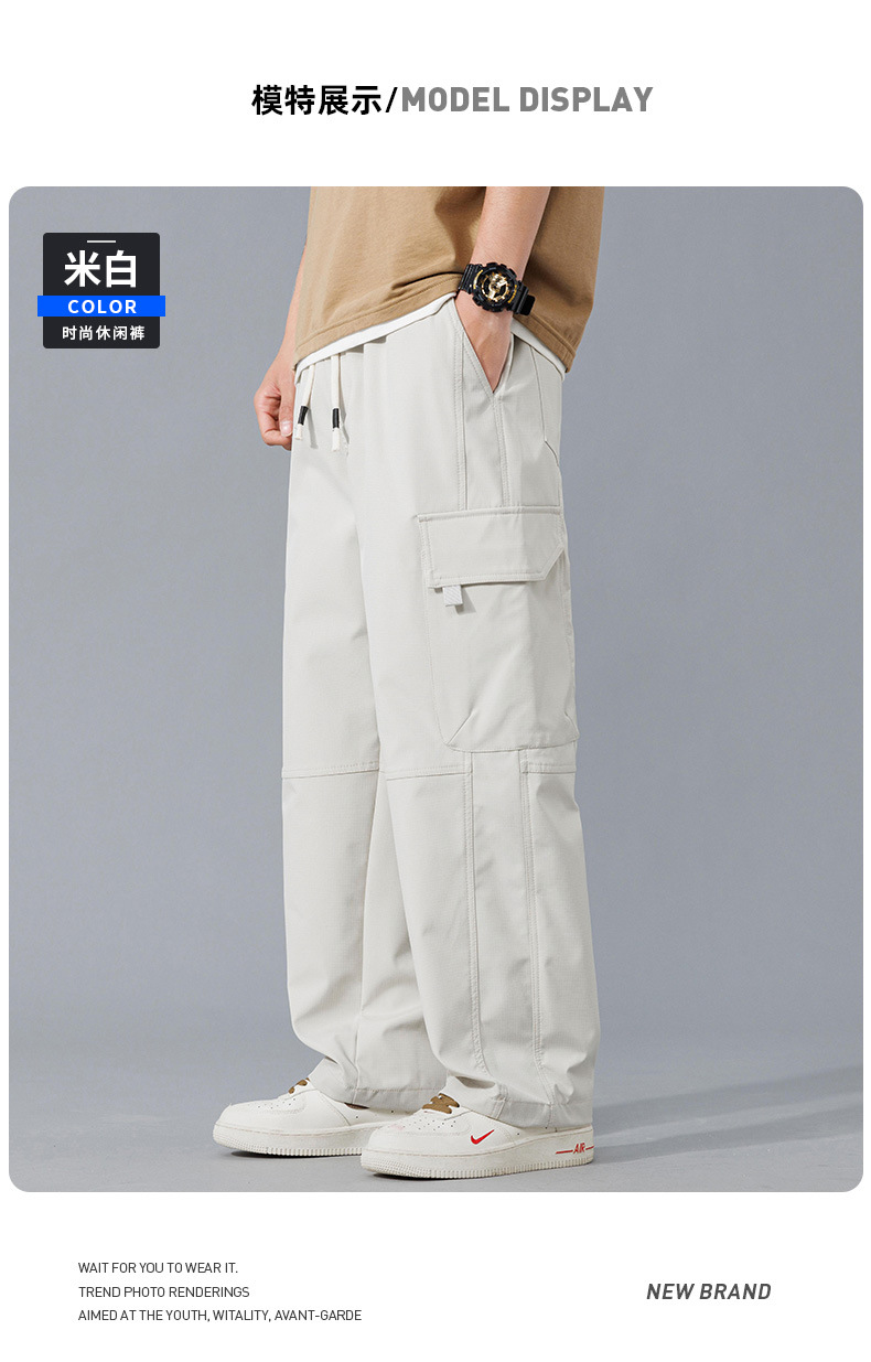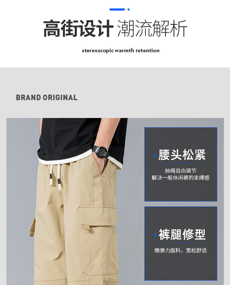 春秋季新款男韩版纯色松紧工装休闲裤潮情侣宽松大码百搭有型裤子