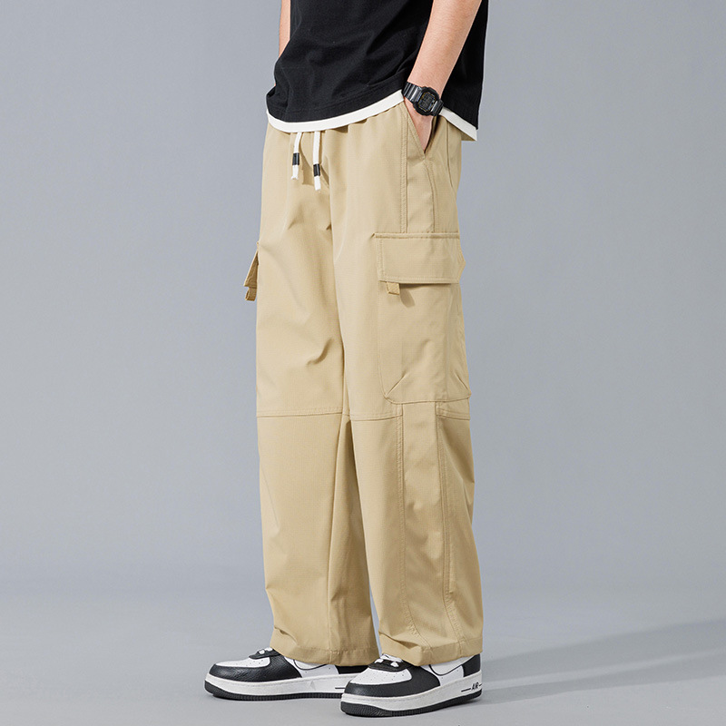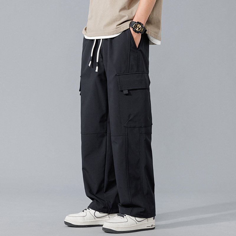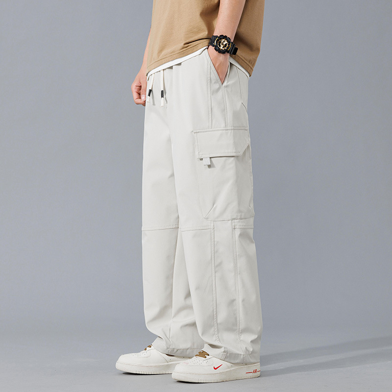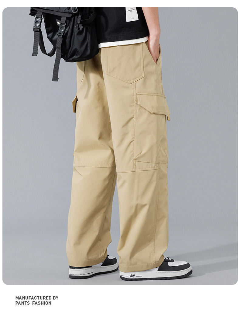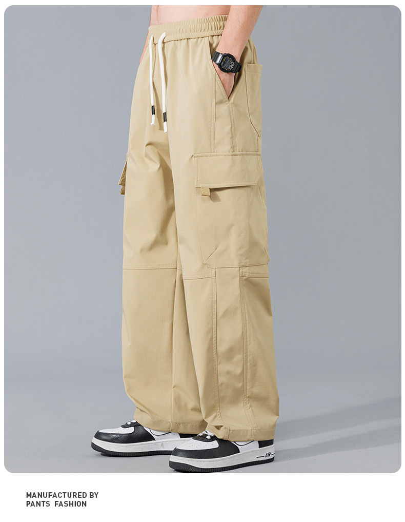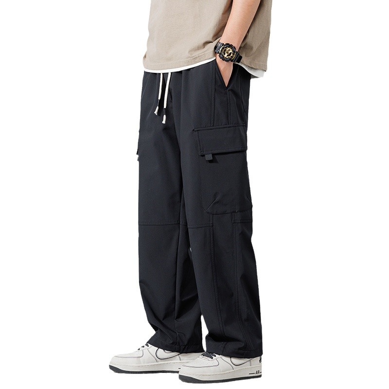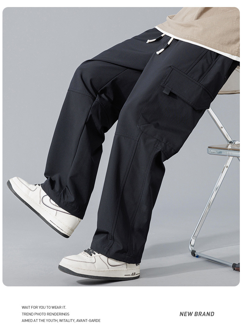 春秋季新款男韩版纯色松紧工装休闲裤潮情侣宽松大码百搭有型裤子