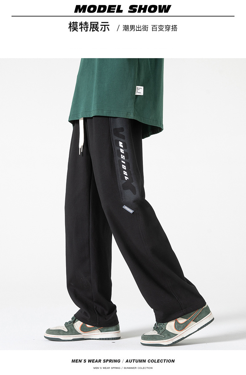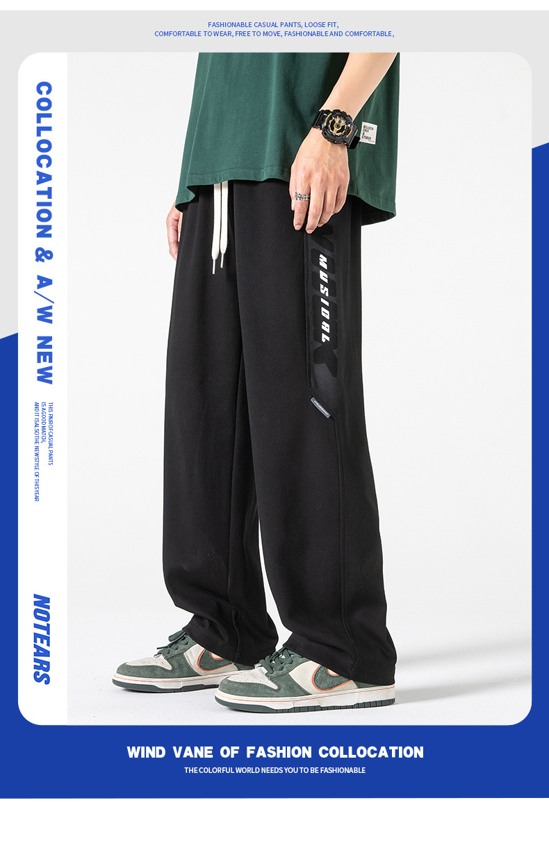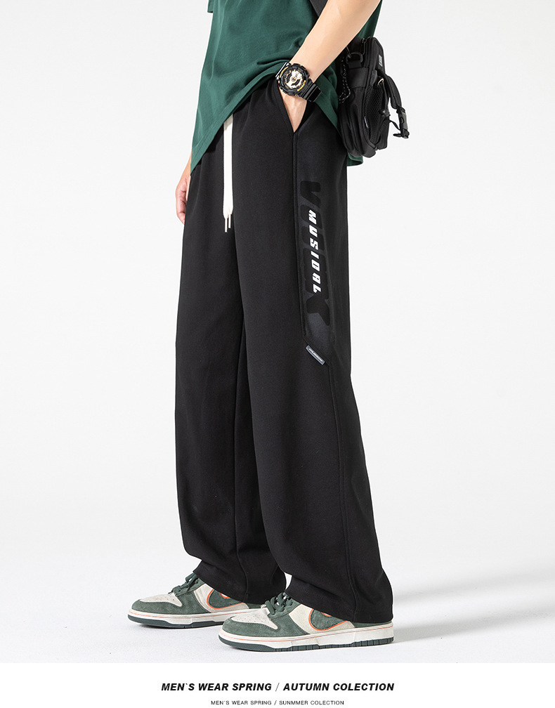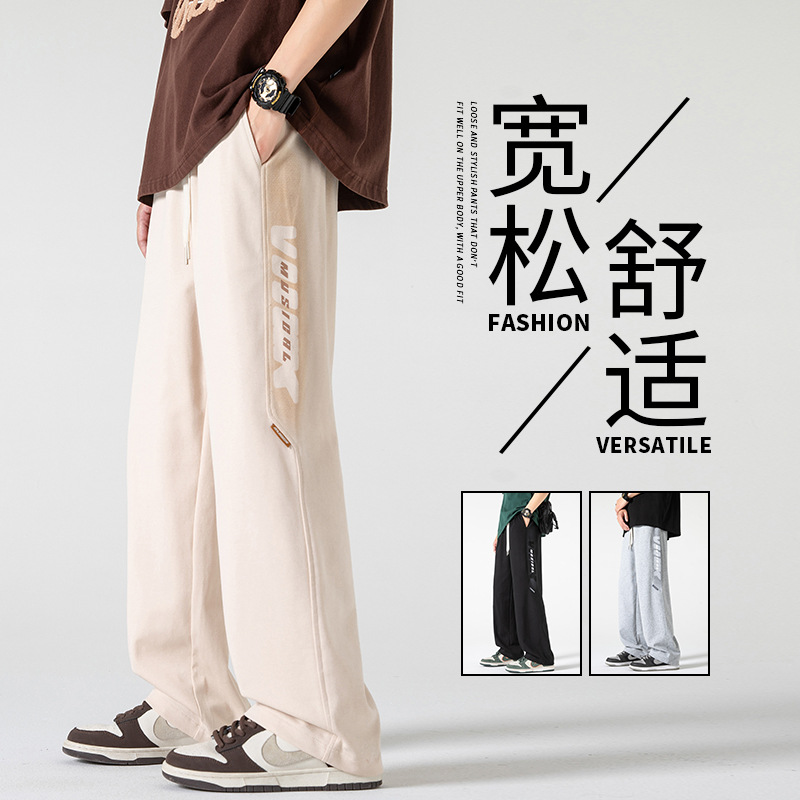 春秋季新款港风卫裤男士时尚宽松百搭纯色运动阔腿裤休闲舒适长裤