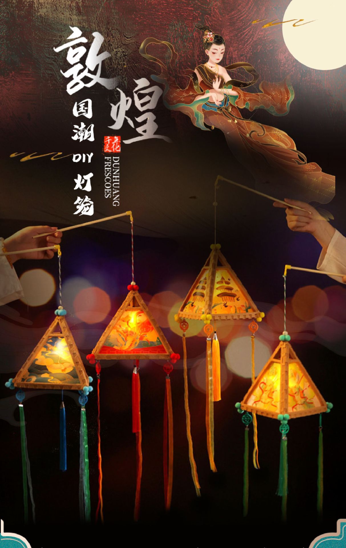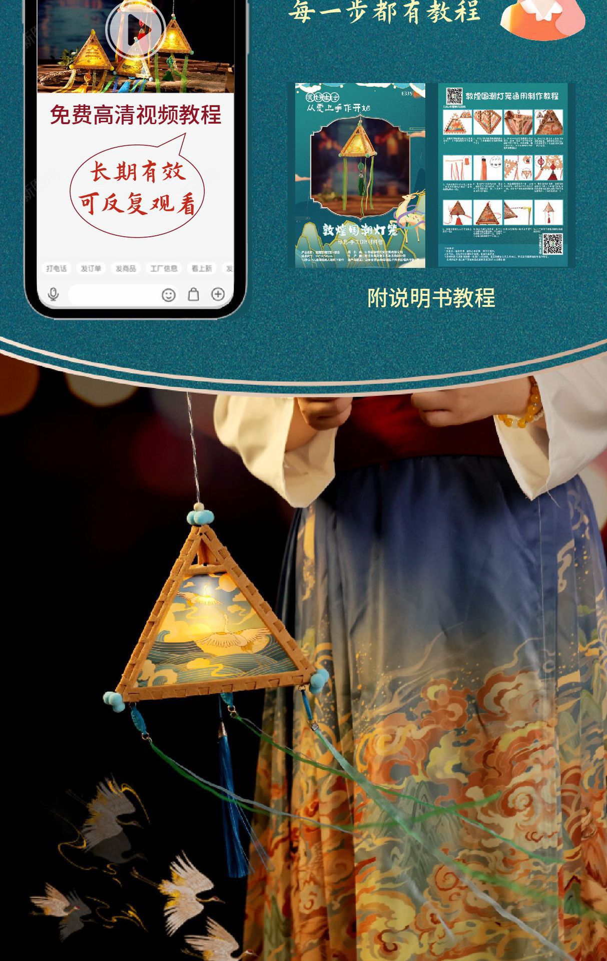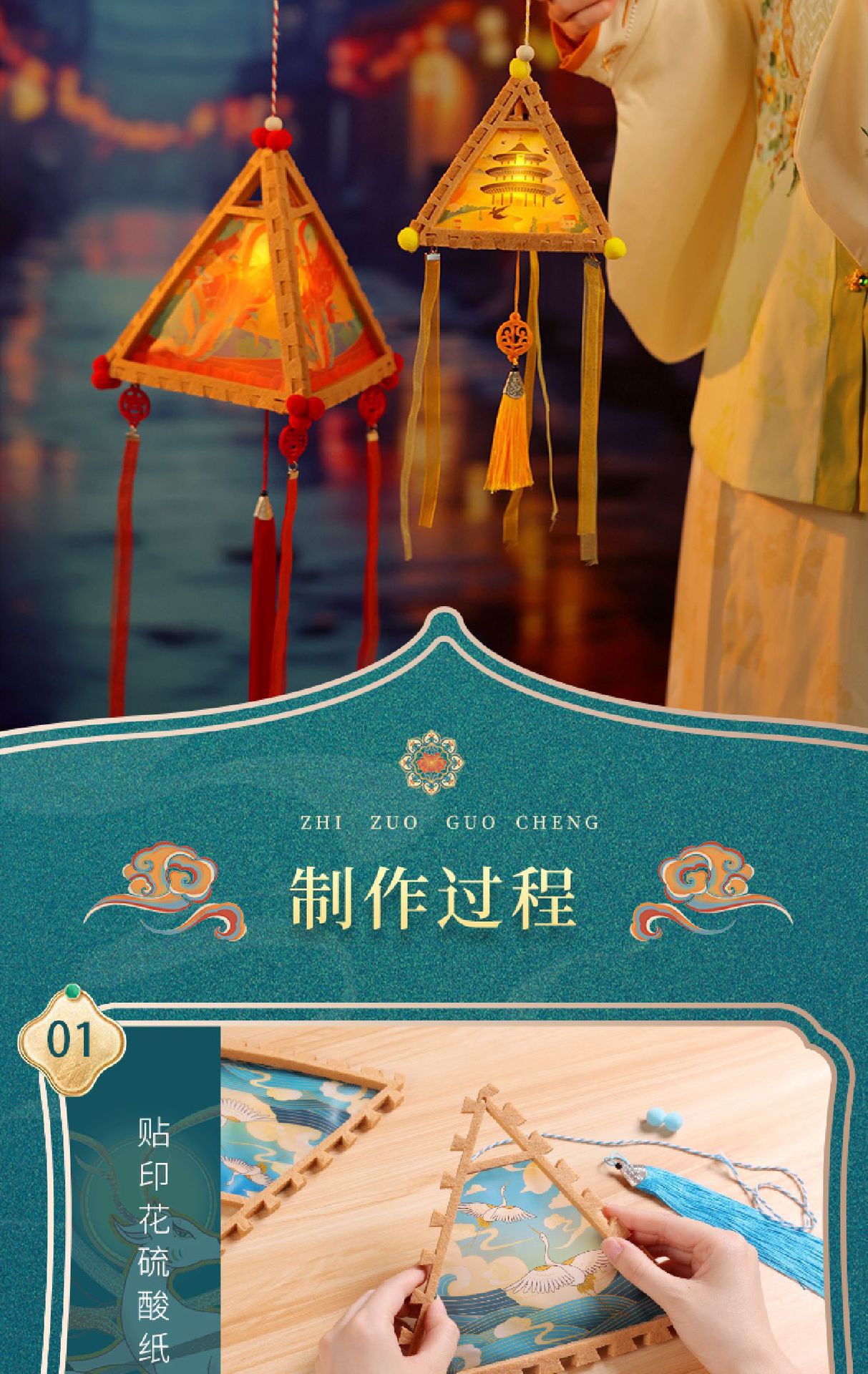 中秋节古风手提diy发光灯笼材料包儿童玩具手工制作花灯活动批发