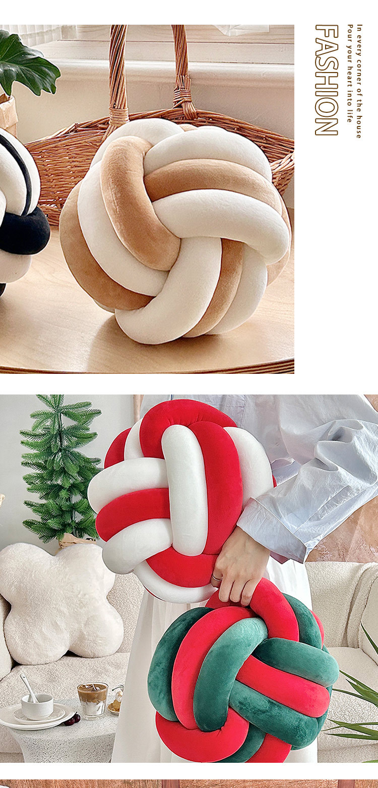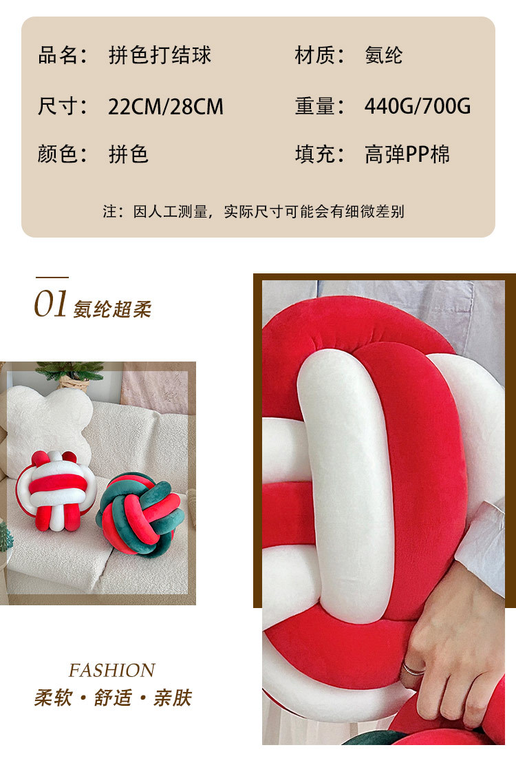 氨纶三股绳圆球靠枕坐垫手工编织家居装饰双色打结球抱枕飘窗垫