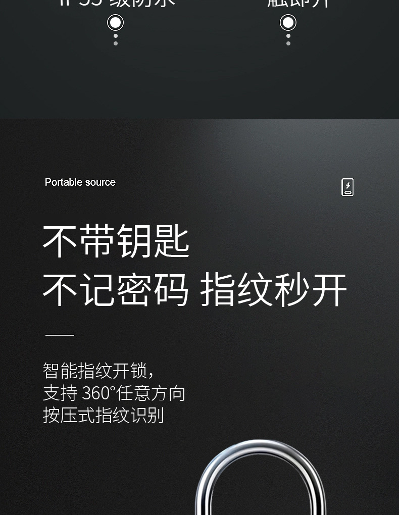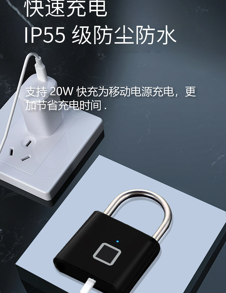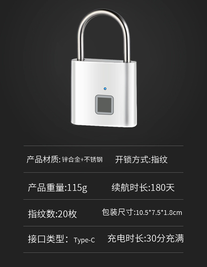 智能指纹挂锁智能电子挂锁头大门防盗密码户外防水防锈挂锁